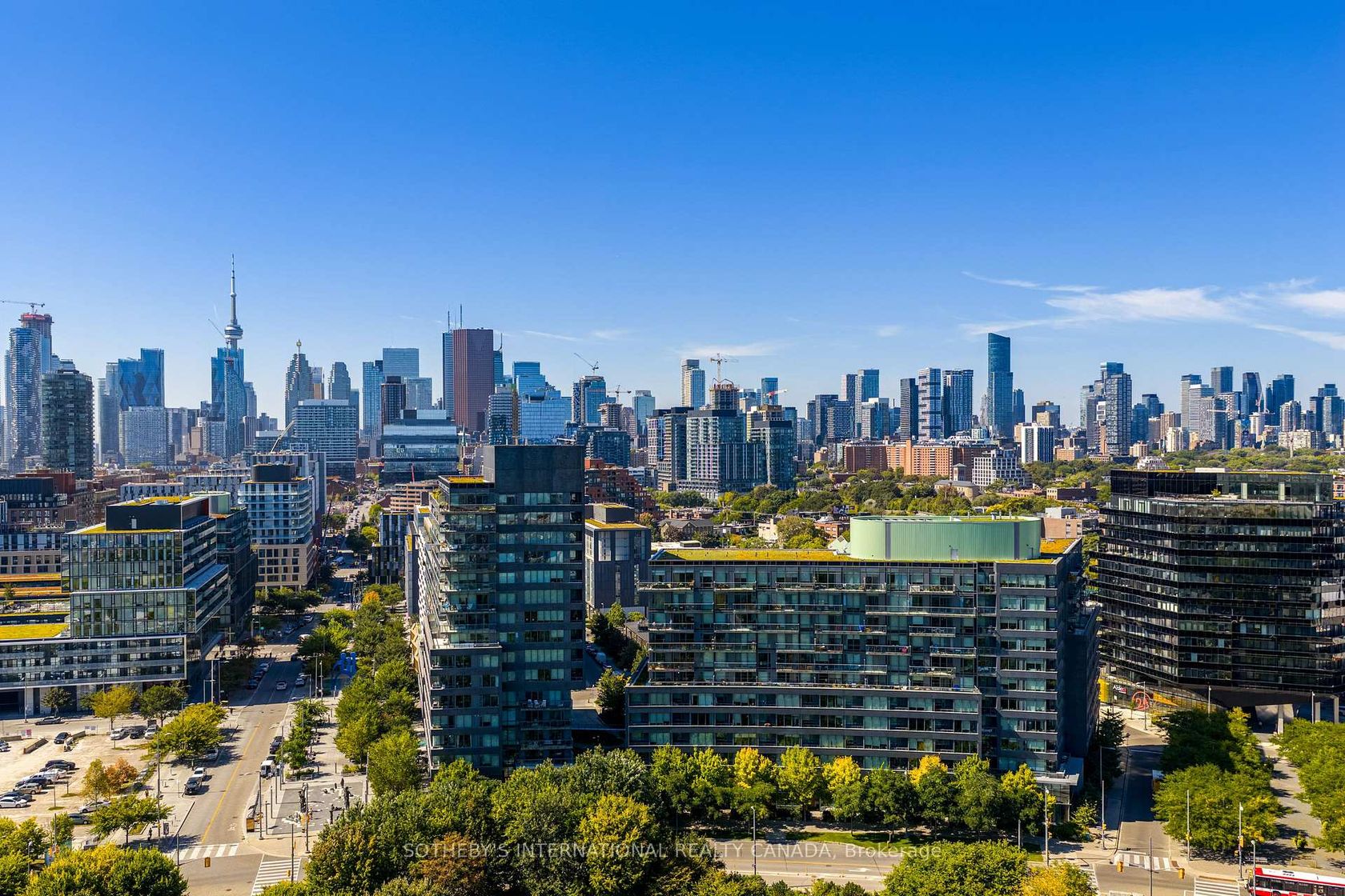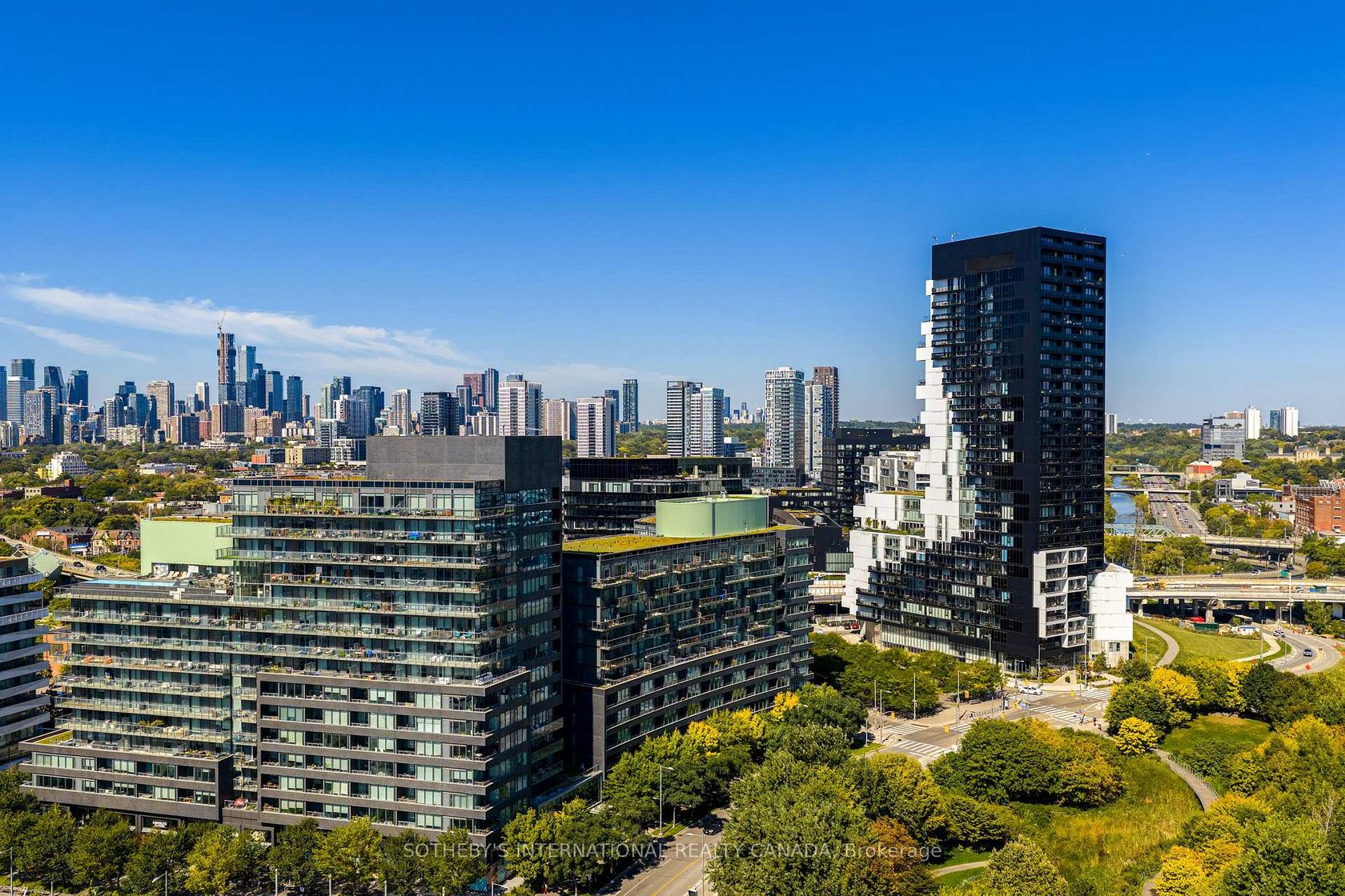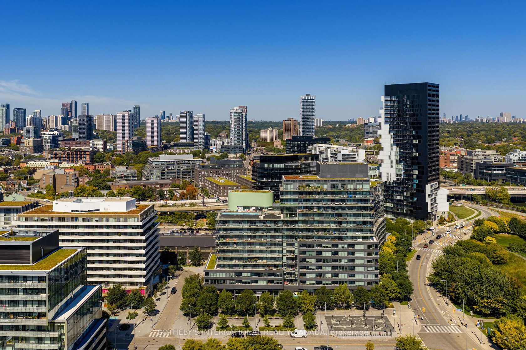 A condo that's both functional and comfortable--made for real life! A floor plan that effortlessly flows. Offering two full bathrooms and a spacious and flexible den that easily converts to a home office, guest space, or second bedroom. With bright west-facing exposure overlooking lush treetops and the iconic Dominion Wheel & Foundries Company, a historic architectural landmark. This residence is a stylish retreat in a community that radiates character and charm. Just steps from Corktown Common Park, great restaurants, cafes & public transit. At home, indulge in resort-style amenities including a panoramic rooftop pool, fully equipped gym, party room, and sauna. A welcoming neighbourhood feel meets urban convenience.
