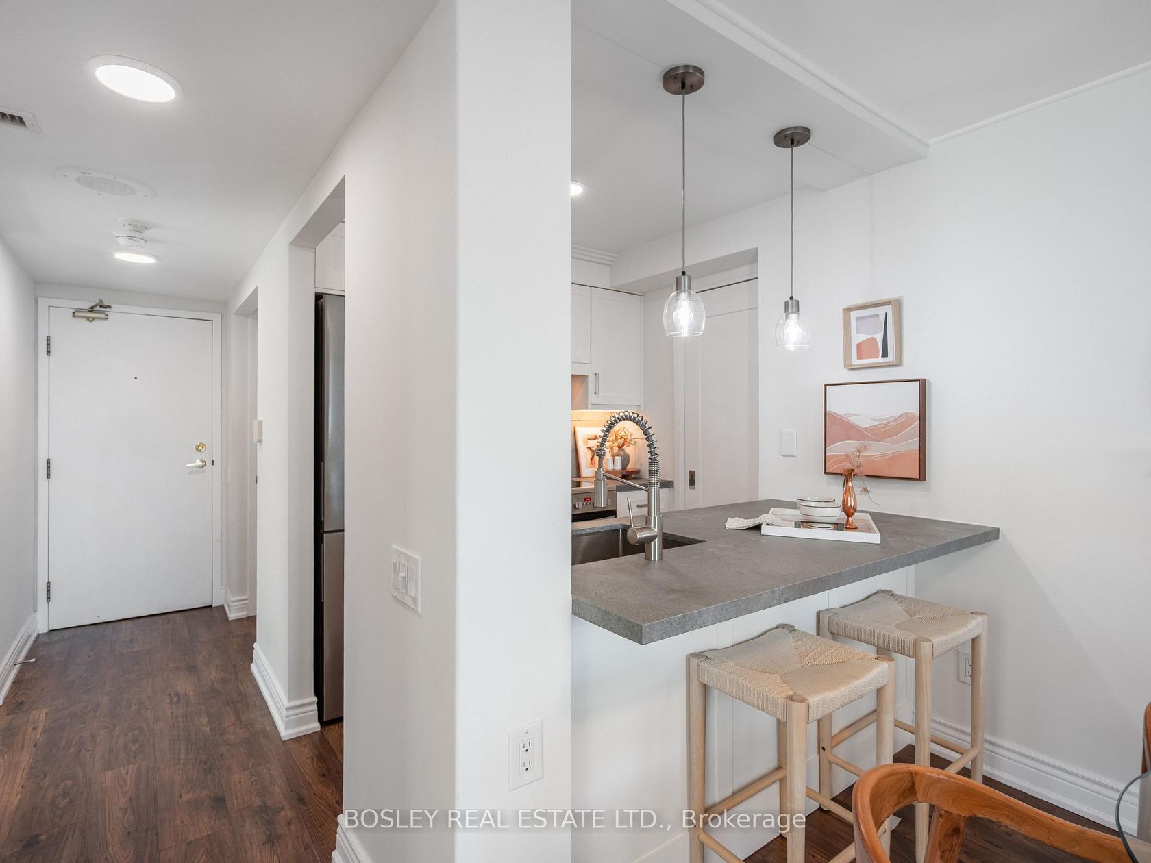 Welcome to The Rosedale! Nestled in a boutique condo of just 23 suites, this bright corner unit offers a 1 bedroom + large den layout, with the den easily working as a second bedroom or home office. The suite has been beautifully maintained and thoughtfully upgraded, featuring a renovated kitchen with wood detail backsplash and concrete-style countertops, wide plank laminate flooring, custom window coverings, and an oversized bedroom with double closets and custom inserts. East-facing windows flood the space with natural light throughout the day. And the location can't be beat! Just steps to TTC, Yonge and Bloor, Yorkville, shops, restaurants, and easy access to the DVP.
