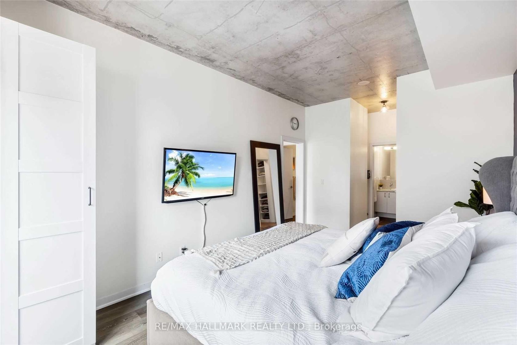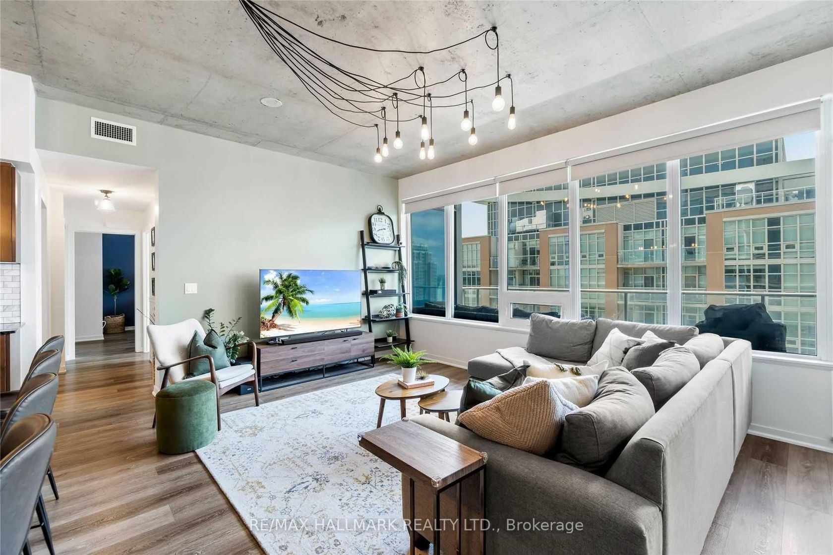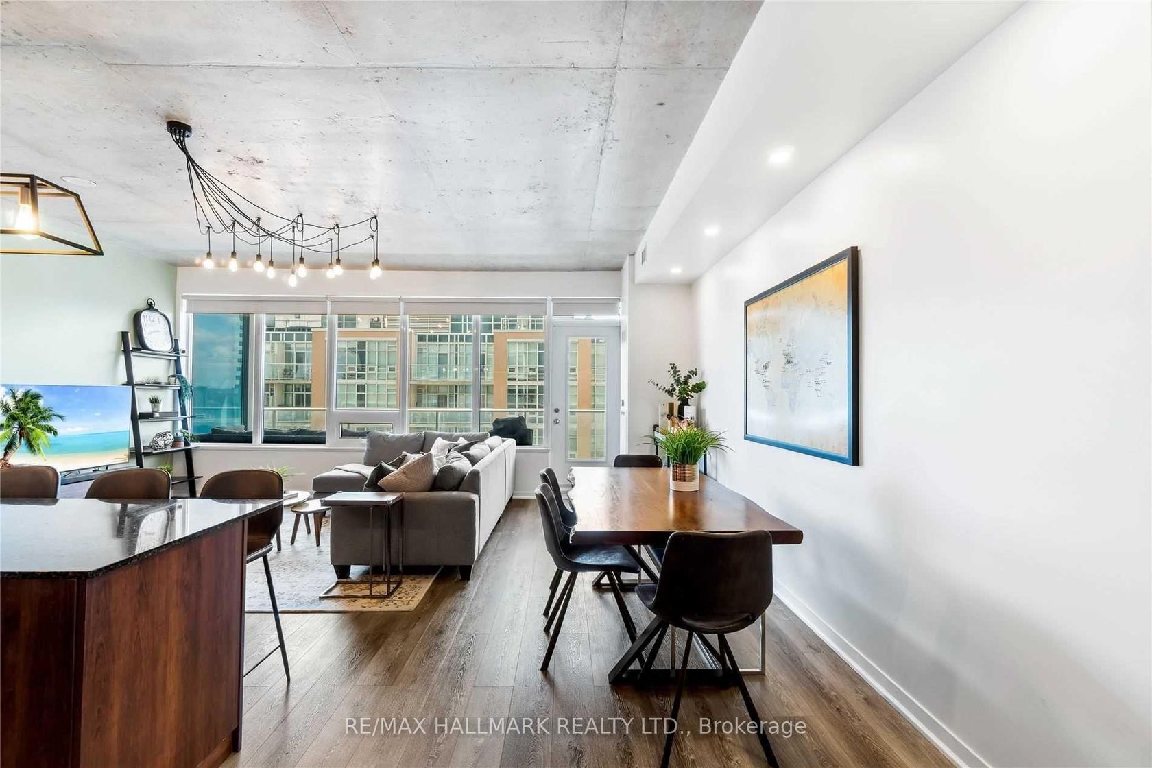 Priced BELOW market value... welcome to your bungalow in the sky!!! This rare high-floor suite offers 1206 sq ft of functional living space plus a large balcony, with one of the best layouts in the community. Featuring 10 ft ceilings, an oversized kitchen with a massive centre island, and a bright open-concept living and dining area, this home is perfect for entertaining and everyday living. The primary bedroom boasts a walk-in closet, additional built-in storage, and a private ensuite. The second bedroom is spacious and versatile, while the enclosed den with French pocket doors and a closet functions seamlessly as a third bedroom or home office. Thoughtful upgrades include: wide-plank waterproof laminate floors, custom roller blinds (blackout in primary), pot lights, modern light fixtures, custom drapery, closet organizers, and additional Pax wardrobes. Located in a well-managed, highly coveted building with fantastic amenities, this is your chance to enjoy the best of Liberty Village living steps to shops, restaurants, parks, and transit. Move right in and enjoy!