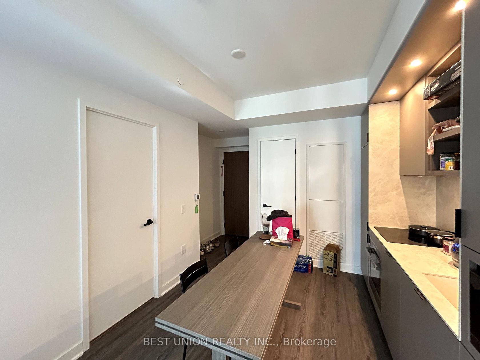 55C Bloor Yorkville ResidencesDeveloped by award-winning MOD Developments and designed by architectsAlliance, this rare one-bedroom suite is located at one of Charles Streets most coveted addresses. Just steps from Yonge & Yorkville, enjoy world-class shopping, dining, transit, and entertainment right at your doorstep. This thoughtfully designed unit features 9' smooth ceilings, wide plank laminate flooring, and individually controlled heating & cooling for year-round comfort. The modern Trevisana kitchen is equipped with built-in appliances, soft-close cabinetry, porcelain slab counters and backsplash, plus custom millwork with a built-in seating bench, movable table, pantry, and storage closet.The spacious primary bedroom offers large windows, his-and-hers closets, and access to a semi-ensuite bath. The signature bathroom doubles as a guest powder room, featuring an integrated Corian sink and vanity with wall-mounted faucet, backlit mirror, soft-close drawers, and functional shelving. A spa-inspired shower with rain head, handheld extension, frameless glass enclosure, and tiled niche completes this modern residence.