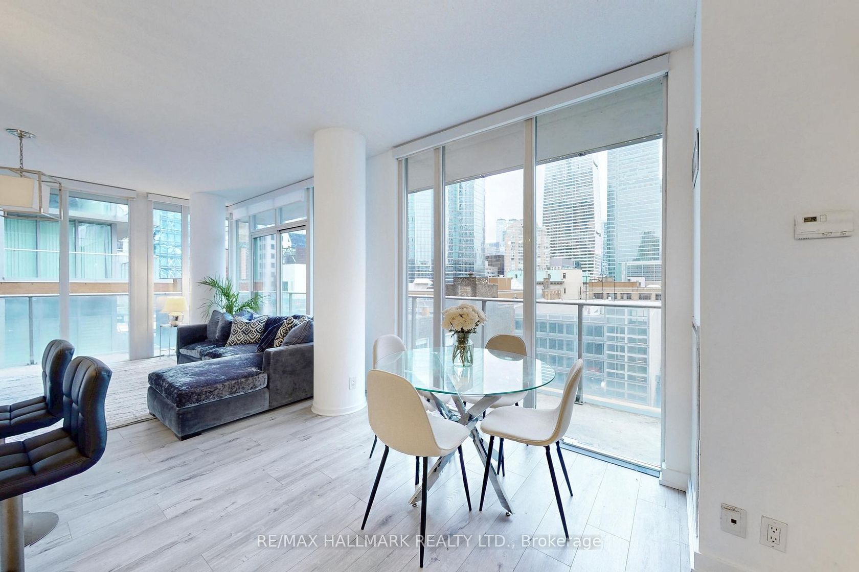 Spacious Corner Unit With Wall To Wall AND Floor To Ceiling Windows! Den is extra large and being used As 3rd Bedroom. 1171 Sq Ft PLUS L-Shaped Balcony, Featuring 2 walk-outs & City Skylines! Open Concept Floor Plan-Great for entertaining, Fresh Paint, Laminate Floors. Updated Kitchen in 2019 and features Quartz Counter, Quartz backsplash, Centre Island with Breakfast Bar! Spacious Primary Bedroom with large walk-in Closet and 4pc Ensuite Bathroom, Large 2nd Bedroom, spacious Den-used as 3rd bedroom along side 2nd full bathroom Washroom. New blinds ordered (see inclusions below for details), Pot Lights, New toilets, Upgraded light fixtures. 24-Hr Concierge, Rooftop Pool/BBQ area, Party room, Gym, Guest suites. Walking Distance and minutes To Shangri-La Hotel, Financial & Entertainment District, Hospitals, AGO, Four Season Centre for the Performing Arts, Queen West, Eaton Centre, City Hall, Nathan Phillips Square & Steps Away From TTC, Restaurants & so much more. Desirable unit number #818