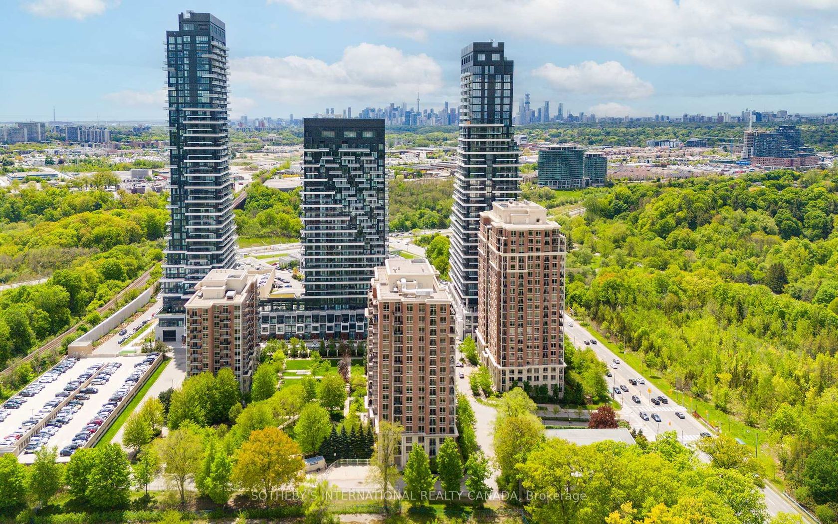 Fall in love with this outstanding light-filled Southwest corner suite w/serene views of Sunnybrook Park. Upon entering, you notice the soaring 9 ceilings, premium laminate flooring that looks & feels like hardwood & stunning park views. The highly desirable splitlayout is open concept & provides an airy feel. The beautiful & open kitchen is rarely offered in the complex & features an eat-in island, an abundance of stylish cabinetry & breakfast area. Walkout to a private oversized 162 sq.ft. balcony providing beautiful vistas that change with the seasons. The living & dining room seamlessly flow together creating an inviting place to relax or entertain guests. The suite features 2 spacious bedrooms providing privacy from one another. The primary presents picturesque views to the west, a w/i closet & 5-pc ensuite w/soaker tub & w/i shower. The 2nd bedroom which can also be a home office includes a large closet and views to the south. The 2nd 3-pc bath has a pedestal sink & glass enclosed walk-in shower. A dedicated laundry closet provides additional room to store supplies w/stacked washer & dryer. Located in the coveted community of Carrington on the Park, this suite resides in the most sought after building in the complex, the Haven, with hotel-like amenities. The building amenities include a 24-hr concierge, party room, exercise room, guest suites, visitors parking & easy underground access to indoor pool. 2 side-by-side underground parking spaces, & locker are included. An abundance of underground visitors parking conveniently located near the entry. The condo is magnificently located across from Sunnybrook Park. Over 900 acres of wooded parks, ravines, dog parks & miles of fabulous walking trails. Enjoy the welcomed convenience the variety of boutiques, bistros & amenities just moments away along Bayview Avenue, Leaside & the Shops at Don Mills. A commuters dream with easy access to the new Eglinton LRT right at your doorstep, as well as the DVP.