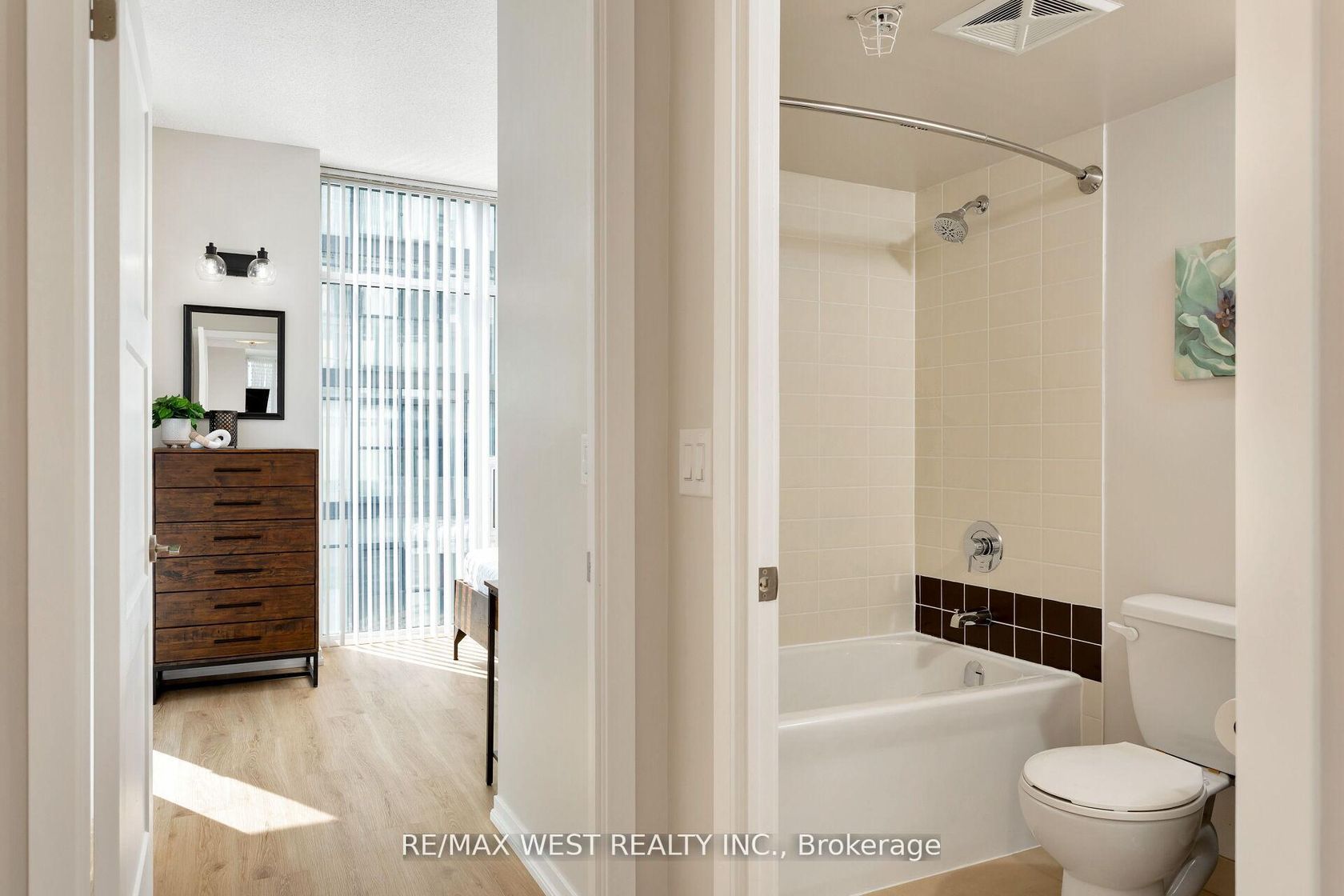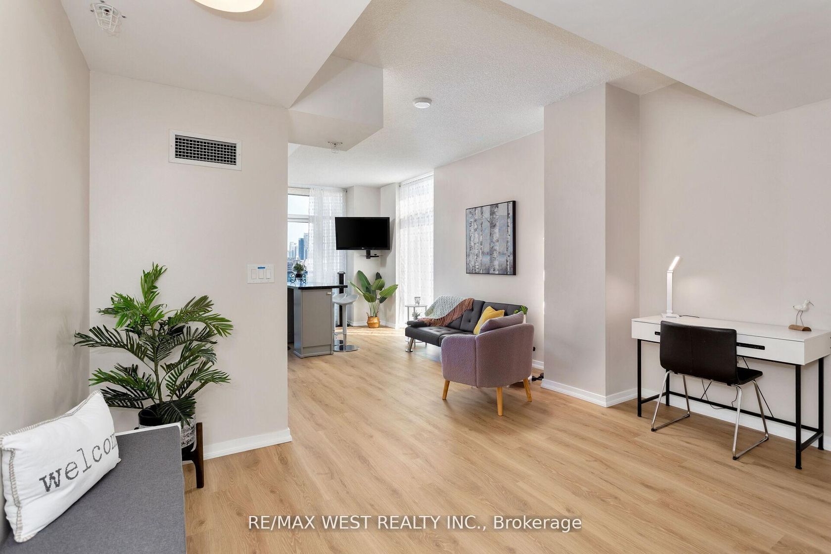 Experience the Best of Queen West Living Welcome to this rarely offered luxurious corner suite at Edge on Triangle Park, where modern finishes meet breathtaking views in one of Toronto's most vibrant neighborhood's. This recently updated home offers spectacular 180 panoramas of the Toronto skyline and Lake Ontario, with two private balconies that let you enjoy both sunrise and sunset. Floor-to-ceiling windows flood the open-concept living and dining space with natural light, complemented by 9-ft smooth ceilings and wide plank laminate flooring throughout. The stylish kitchen features stainless steel appliances, granite countertops, and a custom-built movable island, making it both functional and flexible. A spa-like 4-piece bathroom with a deep soaker tub provides a touch of luxury, while the freshly painted interior creates a clean, move-in ready space. This suite also includes one parking space and one locker, delivering both convenience and value. Building amenities include a 24-hour concierge, fully equipped gym, party room, and more everything you need for contemporary condo living. Nestled in the heart of West Queen West, you'll be surrounded by trendy shops, cafes, art galleries, and nightlife, with Lisgar Park next door and 24-hour transit at your doorstep. A rare opportunity to own a stunning corner unit in one of Toronto's most desirable communities offering the perfect balance of lifestyle, convenience, and value.