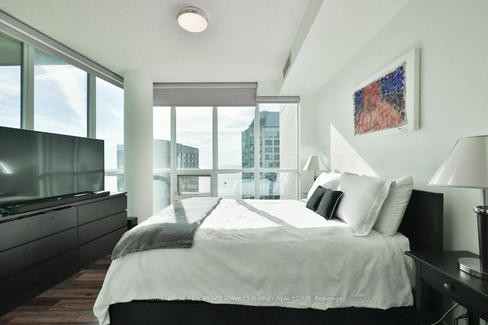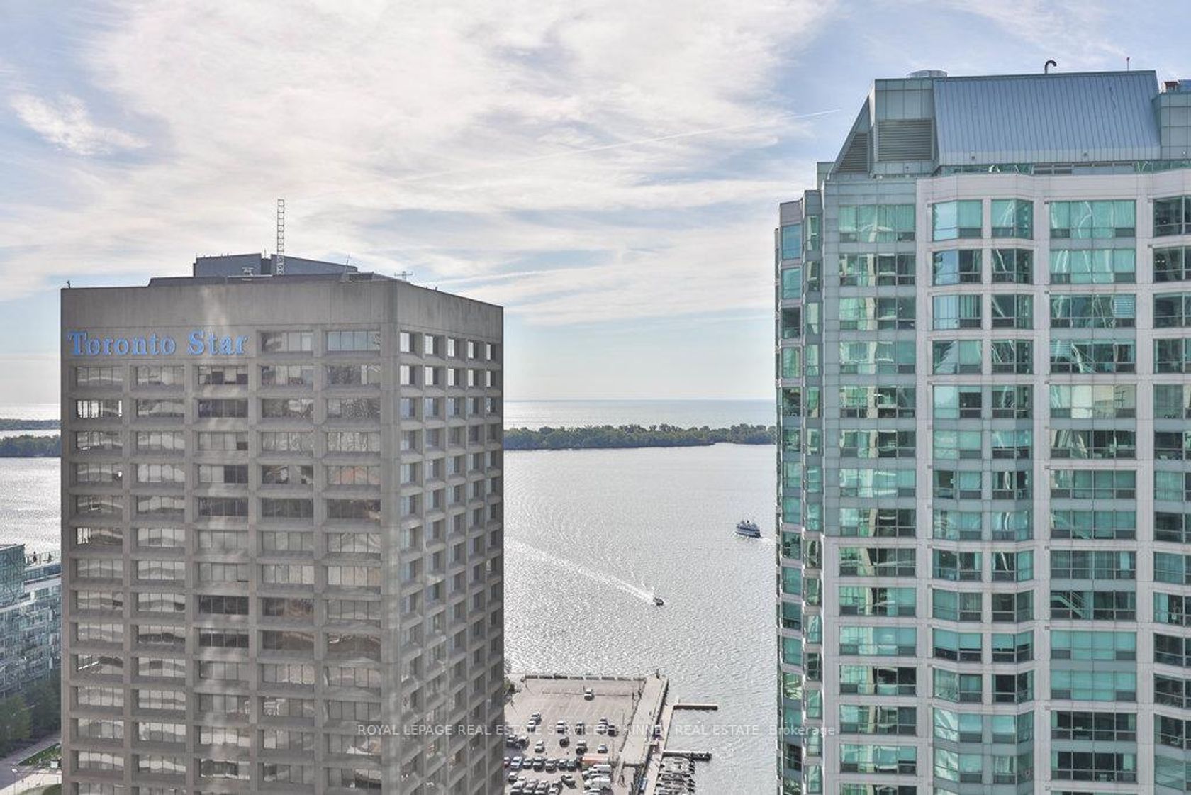 Welcome to 1059 sq. ft. of bright, spacious living with panoramic lake and city skyline views. With soaring 9-foot ceilings and floor-to-ceiling windows, natural light fills every corner, creating an open and airy atmosphere.The well-appointed split-bedroom floor plan ensures both comfort and privacy, while the open-concept kitchen, living, and dining areas are perfect for everyday living or hosting guests. The kitchen features full-sized stainless steel appliances, granite countertops, and a convenient breakfast bar. A versatile den provides the ideal space for a home office.Wake up to stunning lake views from the primary suite, spacious enough for a king-sized bed, complete with his-and-hers closets and a private ensuite bath. Rarely available above grade (4th floor) parking and locker add incredible convenience.Residents of this exceptional building enjoy an array of world-class amenities including two fitness centres, an indoor pool, hot tub, sauna, steam room, squash and tennis courts, theatre, guest suites, and an outdoor BBQ areathis building truly has it all. The maintenance fee also includes heat, hydro and water so you only pay for internet/cable.Just steps to Scotiabank Arena, Union Station, the Financial and Entertainment Districts, Harbourfront, and Sugar Beach, with quick access to the Gardiner Expressway or Billy Bishop Airport, this location is unmatched.