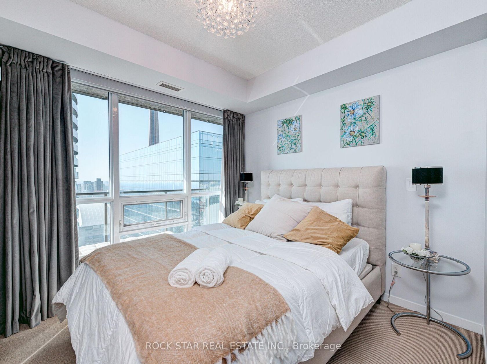 Million Dollar Views at the Residences Of Maple Leaf Square. This High Floor Upgraded 2 Bedroom + Den Corner Suite Features Designer Kitchen Cabinetry With Newer Stainless Steel Appliances, Granite Counter Tops & A Breakfast Island. Upgraded Custom Closet, Murphy Bed, Bright Floor-To-Ceiling Wrap Around Windows With Hardwood Flooring Facing Stunning C.N. Tower & Lake Views. Connected Directly To M.L.S. Mall, Longo's, Starbucks, Restaurants, P.A.T.H. & Union Station. Steps To Harbourfront, Financial & Entertainment Districts.Designer Italian Furniture and Fully Equipped Kitchen Included in Asking Price. Live There or Rent it Out on Airbnb - STRs permitted. Be In The Heart of It All!