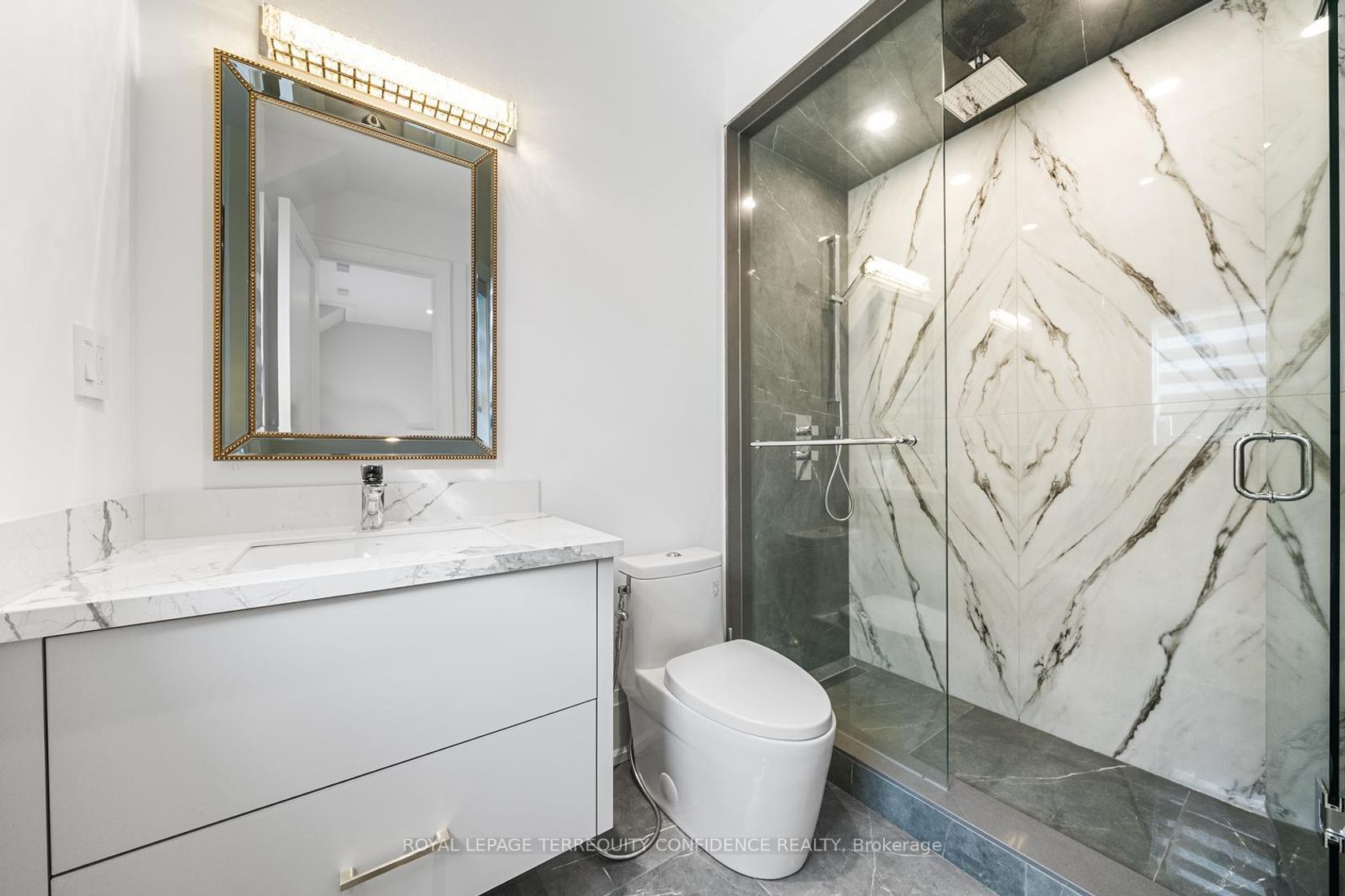 Welcome to 190 Hounslow Ave, an exquisite, owner-built gem in Willowdale with walking distance to Yonge St! Enter this luxuriously-finished home, and be instantly greeted by a Foyer with soaring 14' high ceilings, leading to the Office with equally towering 14' ceilings, B/I shelves, & dazzling large porcelain slab. Continue on to the splendid Living & Dining Rooms with built-in speakers, cove lighting, & beautiful coffered ceiling. The sublime eat-in Kitchen includes high-end Subzero Wolf appliances, large center island, servery, breakfast area, and walk-out to the deck. The Family Room has B/I shelves, a marvelous gas fireplace, built-in speakers, & overlooks the professionally landscaped backyard oasis! Travel between floors with ease with the spectacular 4-stop Elevator. Upstairs, you'll find the peaceful Primary Room, with a 6 pc Ensuite w/ heated floor, vast walk-in closet, private mini-bar area, & gas fireplace. 3 additional bedrooms each include their own ensuites. Continuing to the stunning Basement, which includes a Rec Room w/ wet bar, built-in plush bench with velvet finish, & wine display; making the ideal space for entertaining! Additional bedroom in the basement, complete w/ 4 pc Ensuite & double closet. Opulent & elegant finishes fill the home throughout, as do the large, well-appointed principal rooms. The serene backyard also includes an enchanting gazebo, the perfect place for gatherings or private relaxation. With only minutes to Top Schools, Multiple Parks, Shops, & Yonge, this timeless home provides utmost convenience, luxury, and comfort. **EXTRAS** **Heated Driveway** Elevator w/ 4 Stops ** Epoxy Garage Floor, High Ceilings (14' Office/Foyer, 10' Main, 9' 2nd Flr & 12' Bsmt), Wide Plank Engineered Hardwood Floors. 2 Furnaces & 2 AC (Lennox). 2 HRV. Heated Floors in Basement & Prim Ensuite.