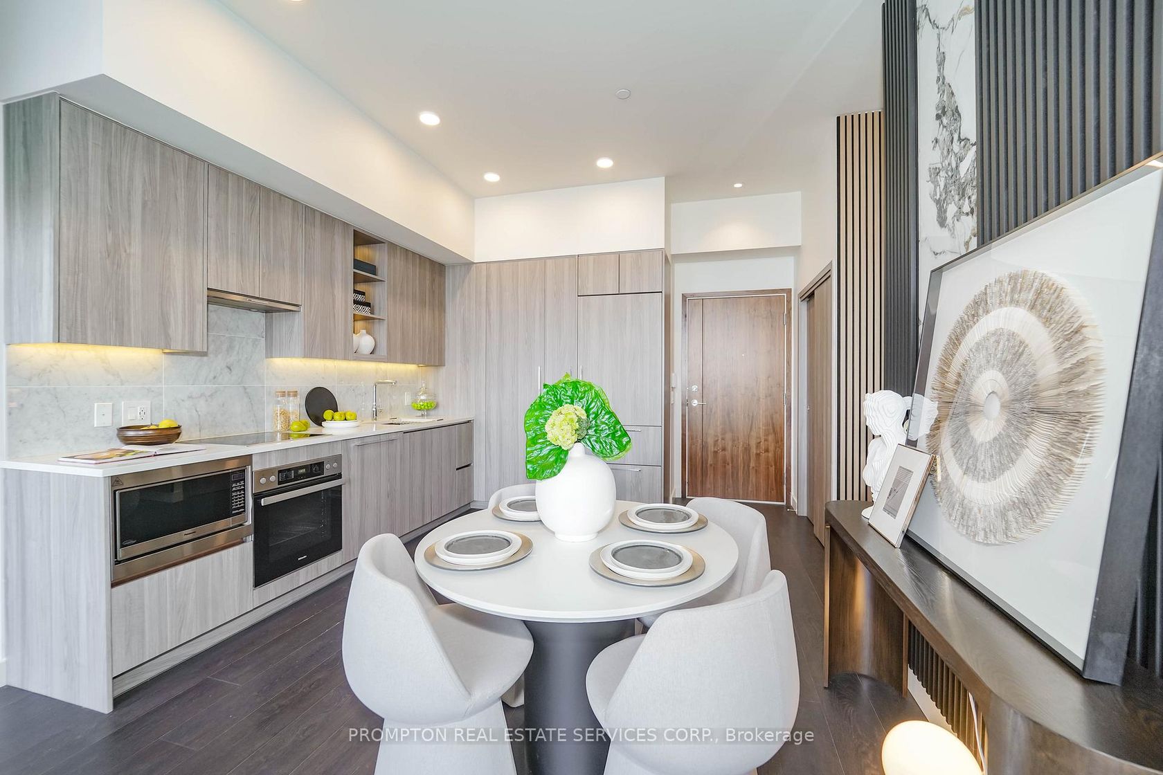 Experience refined luxury living at Seasons Condos by Concord in North York. This exquisite penthouse west-facing suite offers 850 sq ft of thoughtfully designed interior space, paired with an expansive 138 sq ft balcony. Flooded with natural light, it features soaring 9 ft ceilings and impressive floor-to-ceiling windows. The contemporary open-concept kitchen showcases quartz countertops and premium Miele appliances, perfect for both everyday living and entertaining. The spa-inspired bathroom is appointed with custom cabinetry, quartz finishes, and an elegant undermount sink. The sophisticated bedroom includes built-in custom closets and chic roller blinds for added privacy and style. Situated just steps from Bessarion TTC subway station, this exceptional location offers unbeatable convenience with immediate access to an 8-acre park, shopping destinations, and a variety of dining experiences. Enjoy the ultimate in style and comfort in one of North Yorks most prestigious penthouse addresses.
