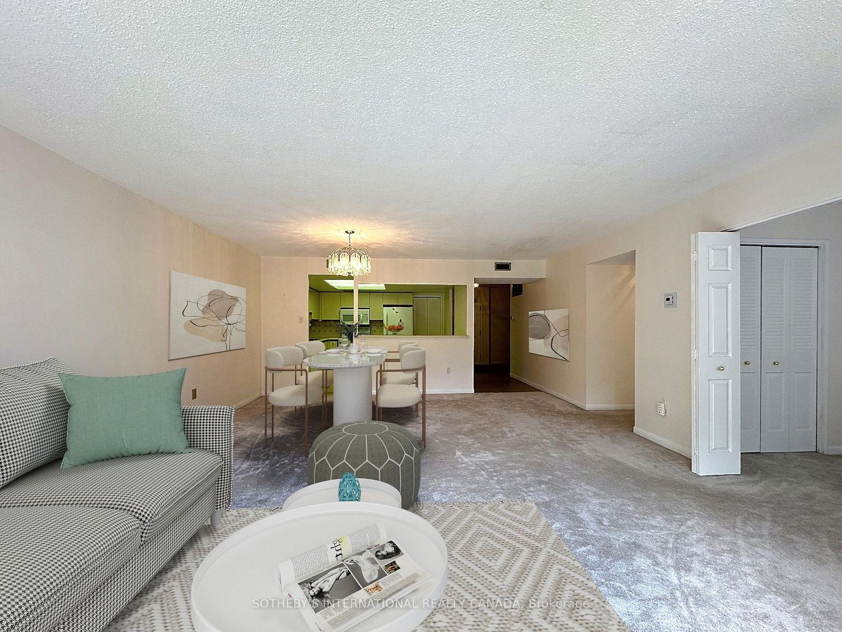 Opportunity Knocks! This exceptional suite hasn't been on MLS since 2012. Whether upsizing or downsizing, this spacious (approximately 1,400 square feet) 2-bedroom, 2-bathroom residence is just right! Enjoy the bright east exposure overlooking beautifully landscaped gardens, a pavilion with patio, and a tranquil courtyard fountain. Located in coveted Village Mews, this rare layout - only one per floor - features a light filled, flowing, open concept design. Its pristine condition creates the perfect canvas for your personal touch. The lush grounds, a babbling brook, and cascading fountains create your own personal retreat within the city. Walk to shops at Don Mills. library, churches, banks, drugstores and schools. Direct bus routes connect to four subway stations, and just minutes to DVP and Highway 401.