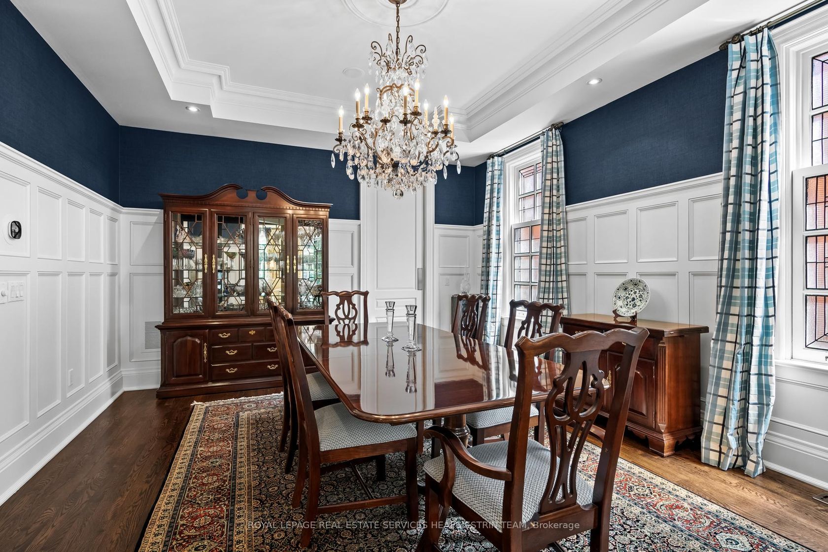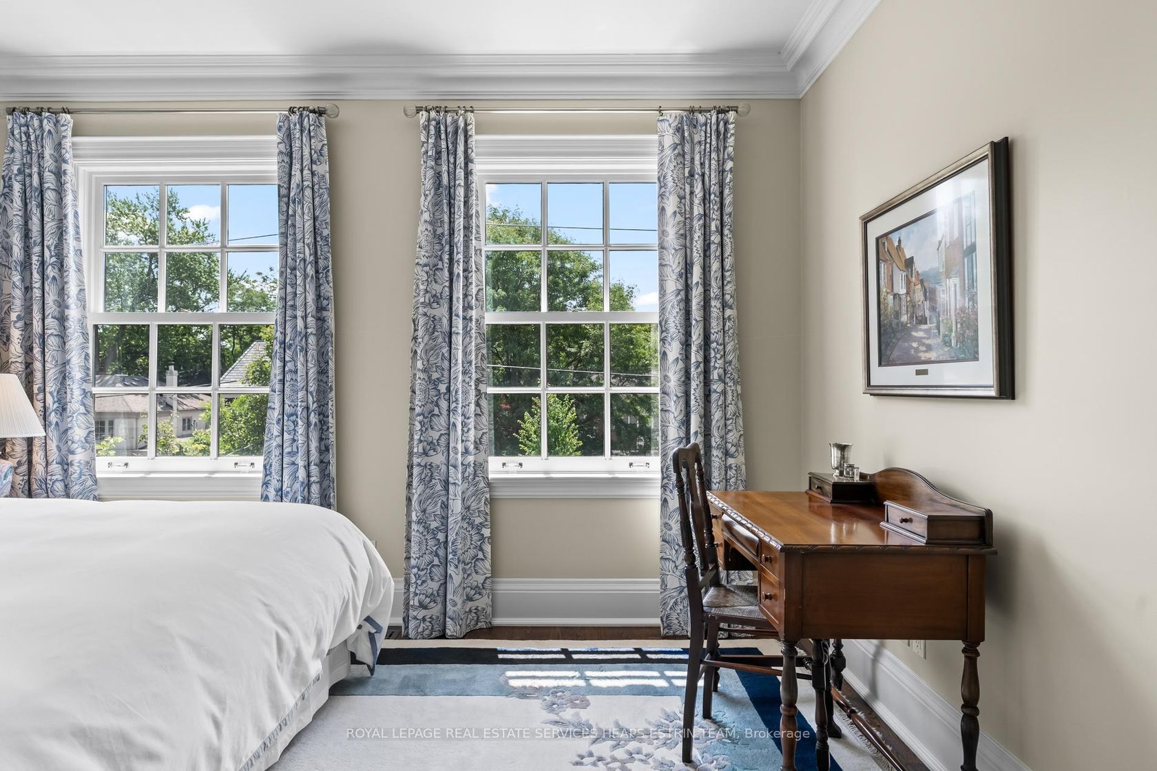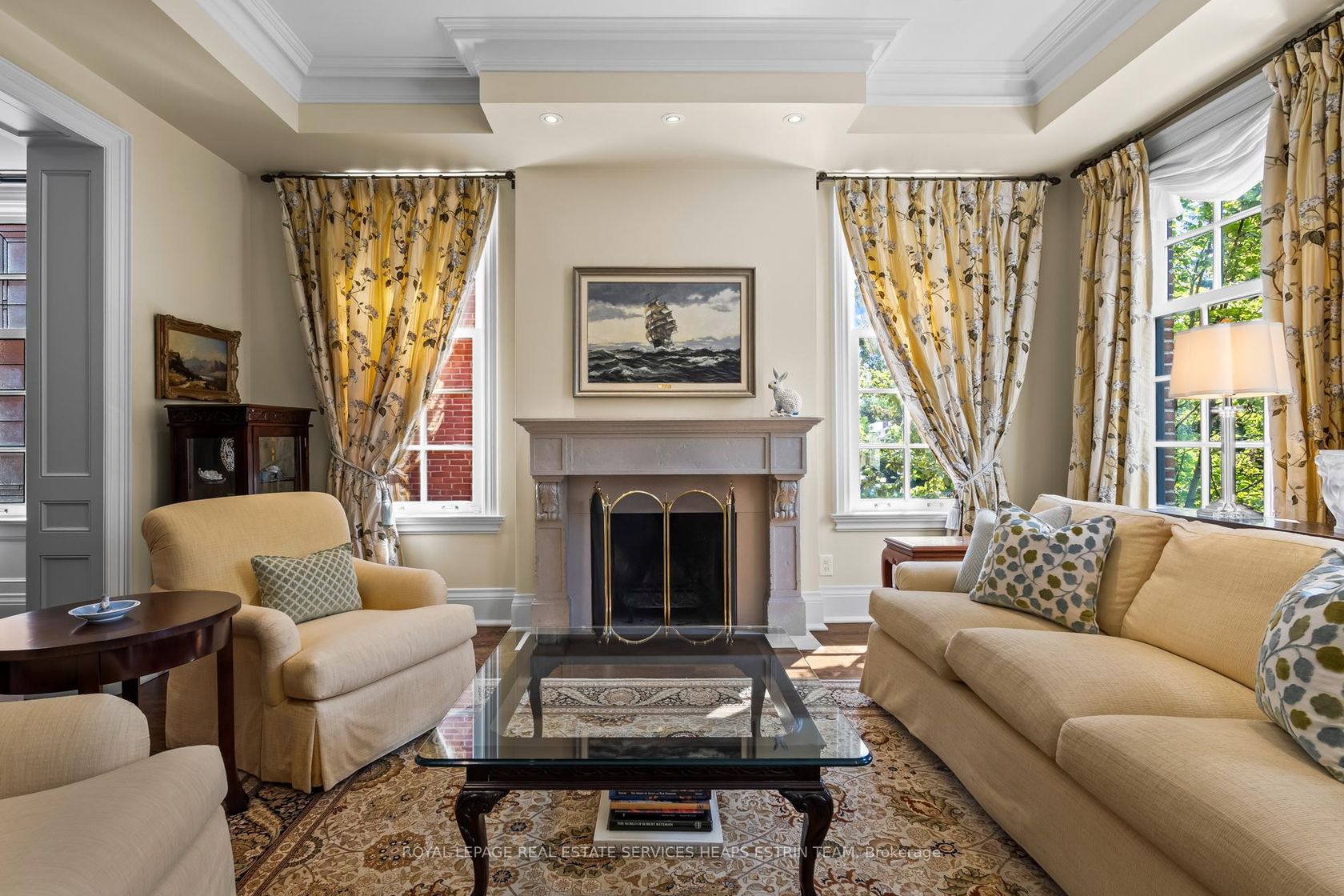 Tucked away in Lawrence Park, 260 St Leonard's Avenue is a Georgian-inspired home blending classic architecture with a touch of modern style across 6,000 square feet and three levels. Inside, the atmosphere is welcoming and bright, with sunlight pouring through the foyer and highlighting custom millwork. There's a private office for focused work, and the living room, anchored by a wood-burning fireplace, is made for cozy evenings. The dining room features stained glass windows and custom wainscotting and overlooks the living room. At the heart of the home is the kitchen: a marble-topped island, custom cabinetry, and high-end appliances. Sunlight fills the breakfast nook, while the family room, complete with a gas fireplace and a wall of windows blends seamlessly with the outdoors. French doors lead to a deck perfect for barbecues, with a stone patio and gas fireplace surrounded by gardens for total privacy. This backyard is made for gatherings, alfresco dinners, and unforgettable summer nights. Practical spaces get equal attention: a designer powder room, main-floor laundry with built-in storage, and a bar area for entertaining complete the main floor. Upstairs, the primary suite is a true retreat with vaulted ceilings, a custom dressing room, and a spa-like ensuite featuring a waterfall shower and dual marble vanities. Three additional bedrooms are sunlit and spacious, each with custom double closets. The lower level is designed for fun; think recreation room with fireplace, gym, guest/nanny suite with ensuite bath, flex space, access to the garage, and a climate-controlled wine cellar. The location is unbeatable: tree-lined St. Leonards Avenue offers easy access to trails, top private schools, and the Granite Club. This is a home that balances sophistication with everyday comfort and room to grow.