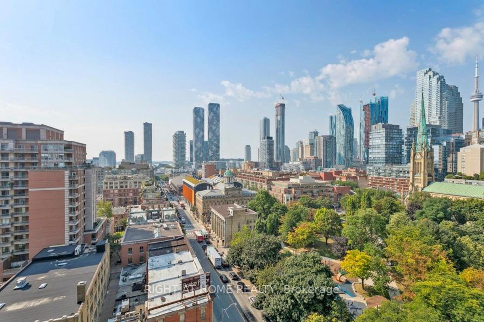 "Whoa, check out the VU!" Unparalleled, jaw-dropping 180-degree views to the South (St. Lawrence Market & Lake Ontario), West (St. James Cathedral & Park, CN Tower & Financial District) and North (Eaton Centre). By day or night and throughout the seasons the cityscape becomes your canvas of never-ending fascination! Your view is protected by provincial and municipal heritage laws restricting development. Live and entertain in stylish elegance while enjoying numerous upgrades and unique design elements in your urban oasis. A very rare chance to purchase a 1,196sf corner suite with 9' ceilings overlooking St. James Park; it features 2 Bedrooms plus a Den, 2 renovated Bathrooms, plus 2 Private Balconies perfect for your morning coffee and sunset cocktails. Two side-by-side Parking Spaces on P1, and a large Locker on the 3rd floor. Tastefully customized with artistic flair which are detailed in the Feature Sheet available using the Virtual Tour/Multimedia link. The VU is near to everything that makes the city pulse: St. Lawrence Market, top restaurants, wine bars, theatres, Bay Street and the upcoming Ontario Line. The VU has a Walk Score of 100/100, Transit Score of 100/100 and Bike Score of 98/100. The building is quiet and well-managed with amenities that include: a huge roof top patio with lounge area and BBQs, 24-hour concierge, gym, guest suite, billiard room, visitor parking & more. Easy access to the DVP and Gardiner. A harmonious blend of modern comfort & historic charm, make this the quintessential urban home!