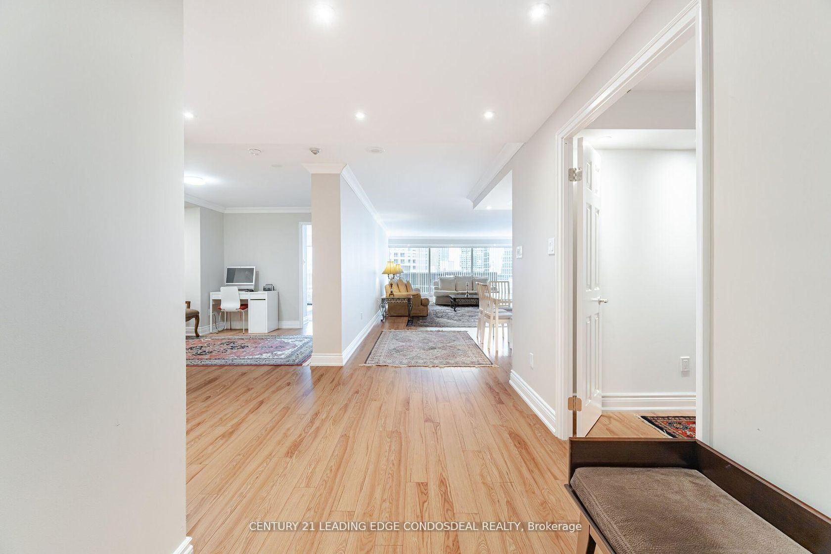 Welcome to Empire Plaza, an architectural landmark by award-winning Architects Young & Wright. Ideally located at the southeast corner of University and Wellington, this iconic 28-storey building sits at the nexus of Toronto's Financial, Entertainment, and Sports Districts. The 21st-floor corner suite spans a generous 1,812 sq ft, boasting floor-to-ceiling windows that flood the space with natural light and reveal vibrant city views. Fully renovated and meticulously maintained, it features three bedrooms plus a den, two bathrooms, and year-round in-suite climate control via individually controlled heat pumps. Inside, you'll find a thoughtfully designed open-concept living and dining area, perfect for both daily living and elegant entertaining. The large primary bedroom offers two closets and a 4-piece ensuite, while the remaining bedrooms are equally well-appointed. Every detail has been carefully considered to blend modern finishes with timeless comfort, creating a warm and sophisticated atmosphere. Residents at Empire Plaza enjoy 24-hour security, on-site management, a well-equipped fitness centre, and a handsomely furnished rooftop terrace on the 28th floor with breathtaking 360 views. There is also a stylish party room with wet bar, media centre, and library. Maintenance fees include electricity, water, central air, common elements, parking, locker, and building insurance. With Union Station, the PATH, and a host of downtown attractions mere steps away, this is city living at its finest!