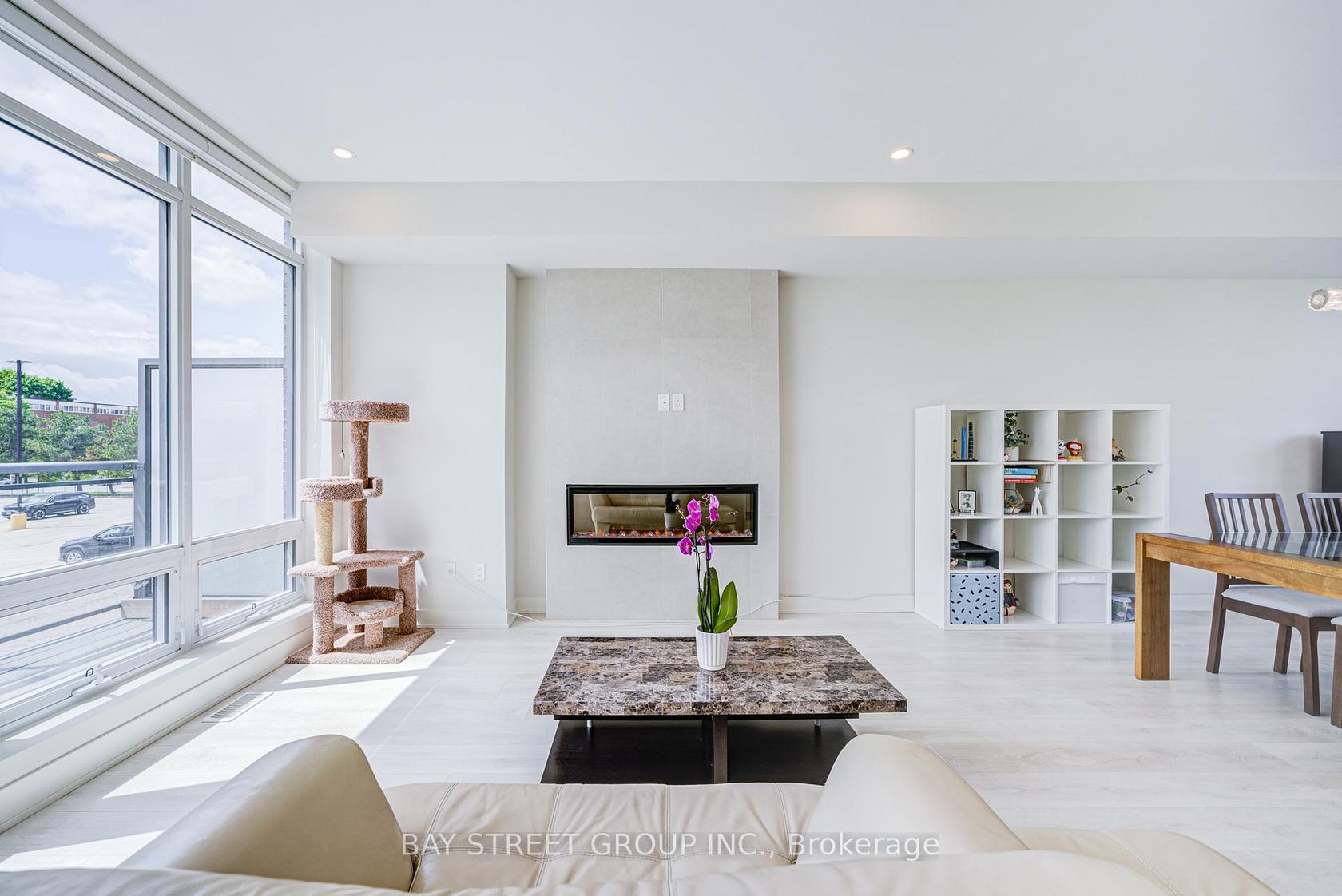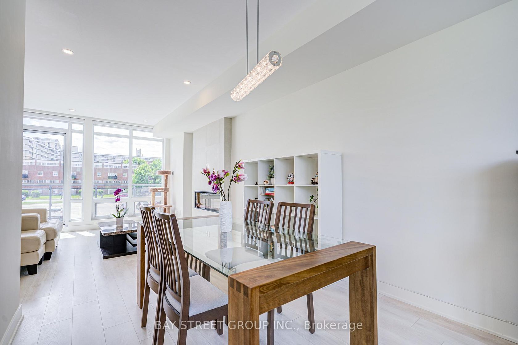 This luxury 3-bedroom townhouse features 9-foot smooth ceilings throughout. Sunlight pours in through floor-to-ceiling windows showcasing park views. The open-concept kitchen impresses with custom cabinetry, stone slab countertops, and an oversized island. The ground-level suite offers heated floors, a kitchenette, private washroom, and separate entrance - ideal for guests or rental income. Enjoy direct garage access from the foyer. Premium condo amenities include a gym, sauna, game rooms, and rooftop barbecue area. The location can't be beat - walkable to the future Crosstown LRT and TTC hub. Surrounded by parks and shops, it's minutes from the DVP, 401, Science Centre, and Museum.
