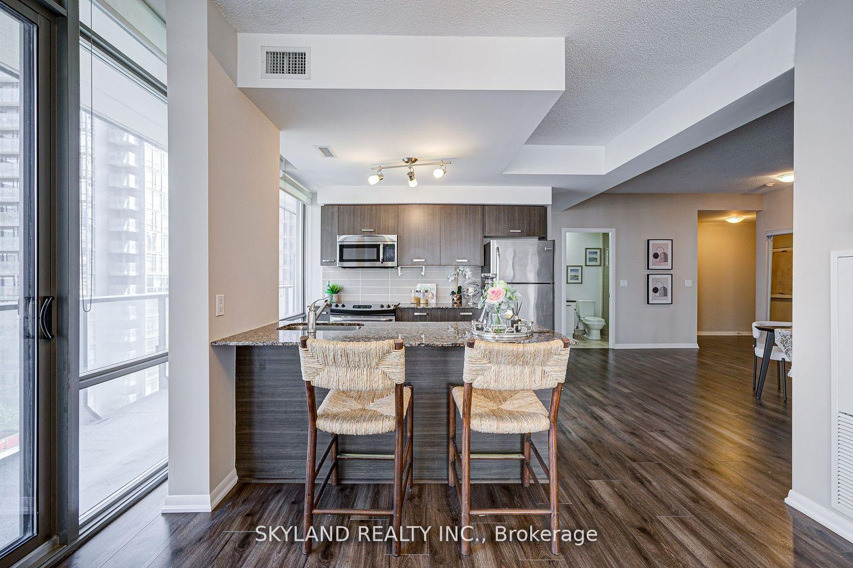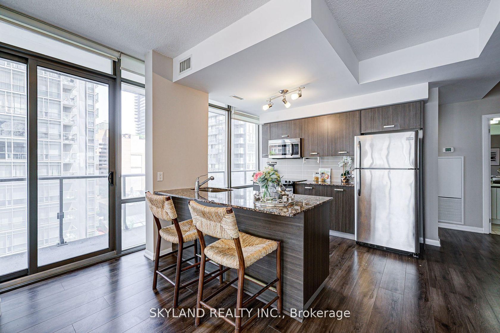 Client Remarks1 parking 1 locker included !!!!! Stunning 2Bed + Den Condo with Skyline Views in the Heart of Downtown Toronto! 1090sqft corner suite featuring 2 bedrooms, 2 full bathrooms, plus a bright Den - perfect for a home office, guest room, or flex space! Northeast exposure with uninterrupted city views! Floor-to-ceiling windows & 9 ceilings enhance the bright, open-concept living, dining, and kitchen spaces! Hardwood (or vinyl/laminate) flooring throughout no carpet! Large private balcony deal for enjoying morning coffee or evening drinks! Superlative full service amenities: 24/7 concierge, gym, outdoor pool & hot tub, steam room, theatre, party room, games room, guest suites and more! Incredible walk and transit scores steps to College Subway station, U of T, Ryerson, Financial District, major hospitals, shops and top restaurants! This is not only a home, this is a lifestyle!