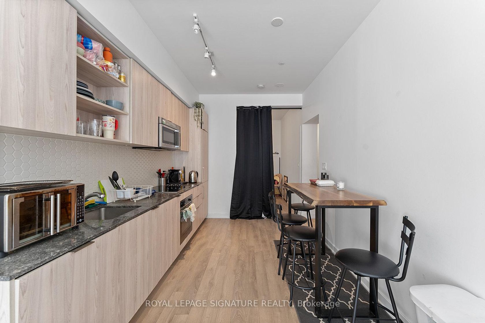 Loft-Style 2+1 Bed 2 Bath Suite with Parking at Playground Condos! One of only a handful of units in the building with this exclusive floor plan! Featuring soaring 9.5 ft ceilings, engineered hardwood floors & floor-to-ceiling windows. Spanning over 835+ sq ft, this super efficient floor plan with a lengthy concept living & dining space is perfect for entertaining, hosting & lounging! Enjoy indoor-outdoor living at its finest with a walkout to the private sunset facing balcony. A chef-inspired kitchen with high-end, built-in, stainless steel Blomberg appliances, smooth granite counters & stylish geometric tiled backsplash. Delight in a plethora of white oak cabinetry, drawers & open-faced shelving. Retreat to the generously-sized primary suite with a walk-in closet, floor-to-ceiling windows, double-door closet & plenty of room to fit a work-from-home setup.The 5-star resort-style 3-piece ensuite features porcelain floors, a glass shower stall & granite vanity with under-sink storage. The super spacious second bedroom is rounded out by double-panel closet & glass sliding doors that double as a clever interior window. The 2nd bath ise qually as spa-inspired & complete with 4 pieces - modern porcelain floors, 2-in-1 shower/tub with glossy white subway tiled back splash & granite vanity with under-sink storage. The functional den is the perfect combination of open concept & separate, making the ideal home office, yoga studio or gym. Enjoy year-round fresh air on the covered private balcony with west views that span north, city-bound! Ensuite Blomberg Energy Star stackable washer & dryer. Highly-sought after parking spot included - there is a huge demand for parking in this building (+30 Ordnance St) with very little supply.