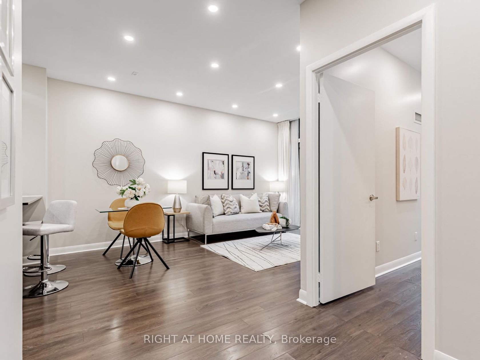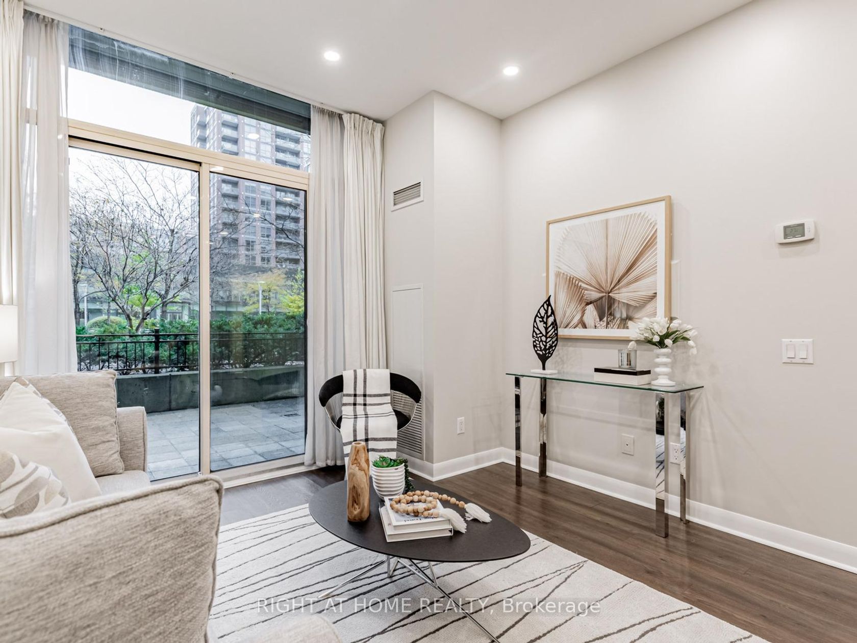 Welcome to the Gramercy Park Lifestyle, just steps away from Wilson Subway Station. This unique 1 Bedroom + Large Den + a coveted, expansive Terrace unit on the ground floor is a rare gem. The unit is spacious & bright with a very functional layout and no wasted space. (Unit ~659 sqft + Terrace / Patio ~220 sqft). The very usable terrace overlooks a private & serene courtyard/ gardens and is perfect for entertaining guests outdoors. This unit is located in the quieter part of the building, with easy access to Wilson Ave and transit without needing to use an elevator or to exit through the lobby. The soaring 9 feet ceilings, large glass doors / windows and the coveted south exposure floods the unit with natural light! The primary bedroom has ample storage, more floor to ceiling windows and enough space for a large bed + office desk. The den can be a dedicated office space or it can do double duty as a guest bedroom with a double bed. The kitchen has a lot of cabinet space for storage, full size Stainless Steel Appliances, a Granite Countertop and a space saving Breakfast Bar. This turnkey unit is freshly painted and comes with pot lights galore! Gramercy Park is served by multiple bus routes, the subway and is just minutes from Yorkdale, Costco and lots more shopping along with easy access to Hwy 401 and Allen Rd.
