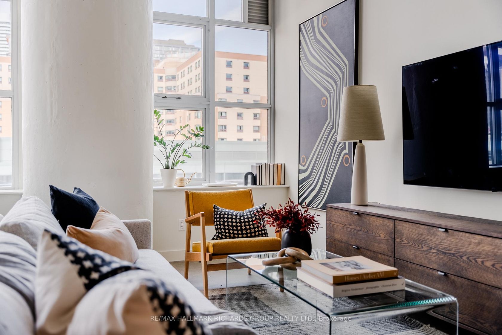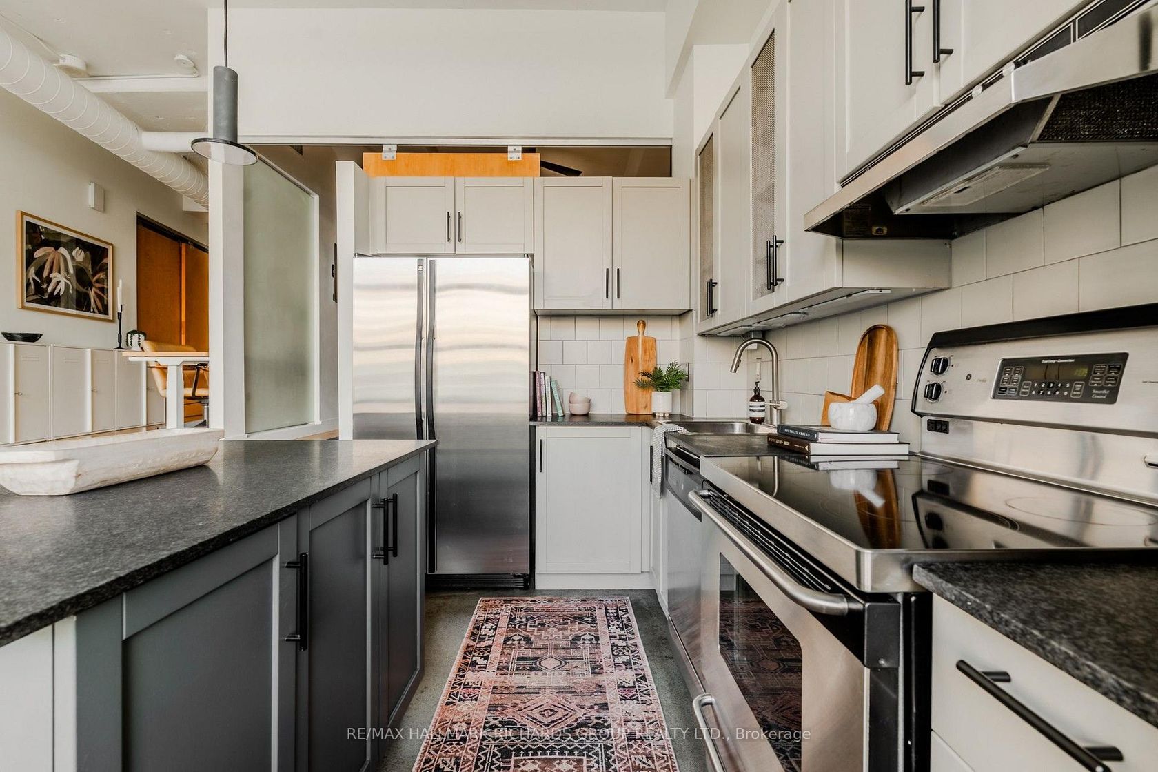A quiet escape in the heart of downtown. Welcome to Suite 515 at the Merchandise Building-a coveted 861-square-foot split-level loft, known for having one of the building's most generous 1+1 layouts. Natural light pours through north-facing windows, filling the space with a calm, even glow from morning to night. The split-level design creates a natural rhythm to daily life: a raised bedroom, full bath, and open den above; expansive living, dining, and kitchen zones below. Concrete construction keeps sound out and serenity in, making this home feel worlds away from the energy of Dundas Square just beyond your door. Storage is never a question here-with ample in-suite crawl-space storage, plus a prime Level 3 parking space for easy access. Life in this historic warehouse conversion comes with every modern comfort: 24-hour concierge, guest suites, indoor pool, gym, newly redesigned rooftop terrace with BBQs and skyline views, basketball court, and games room. Metro grocery and Anytime Fitness are right downstairs. TMU, Eaton Centre, and the subway are just steps away. At Suite 515, downtown living feels effortless calm, connected, and unmistakably cool.