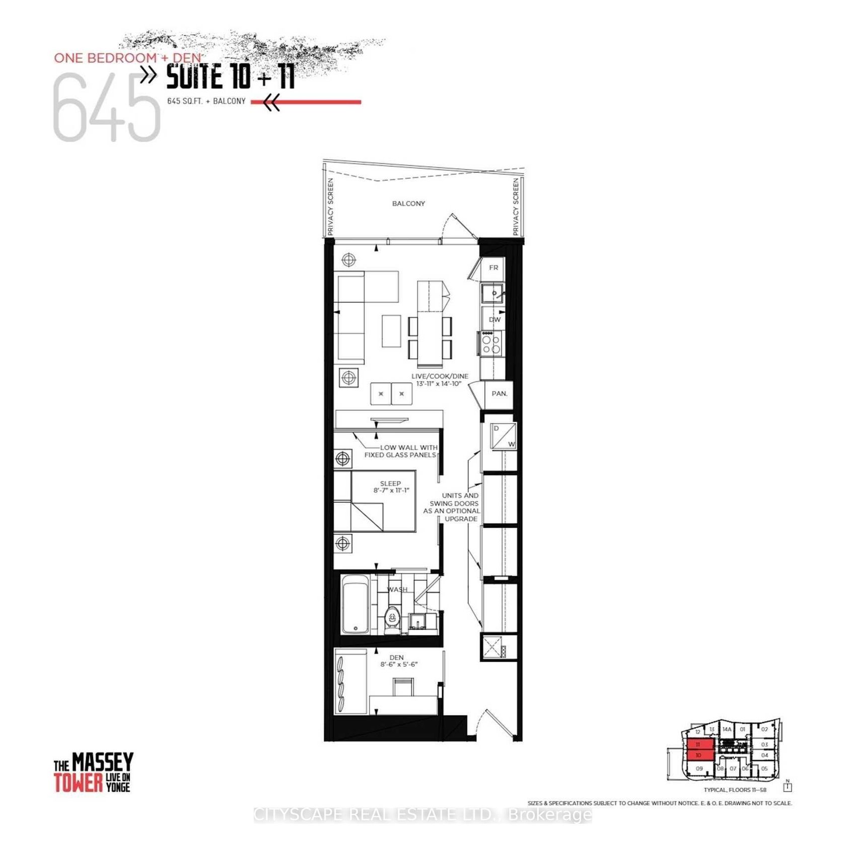 PRIME DOWNTOWN LIVING! Experience luxury in this spacious 1 Bedroom + Den suite at the iconic Massey Tower, offering 645 sq. ft. of thoughtfully designed space and a large balcony with breathtaking city views. Featuring engineered hardwood flooring, smooth ceilings, stylish tiles, and custom cabinetry, the suite also includes a versatile den perfect as a home office or second bedroom, plus 1 locker for added convenience. Residents enjoy world-class amenities such as a gym, steam room, sauna, 24/7 concierge, lounge, and outdoor terrace. Located steps from Eaton Centre, Dundas Square, TMU, Subway, and more - move in and make it yours today!