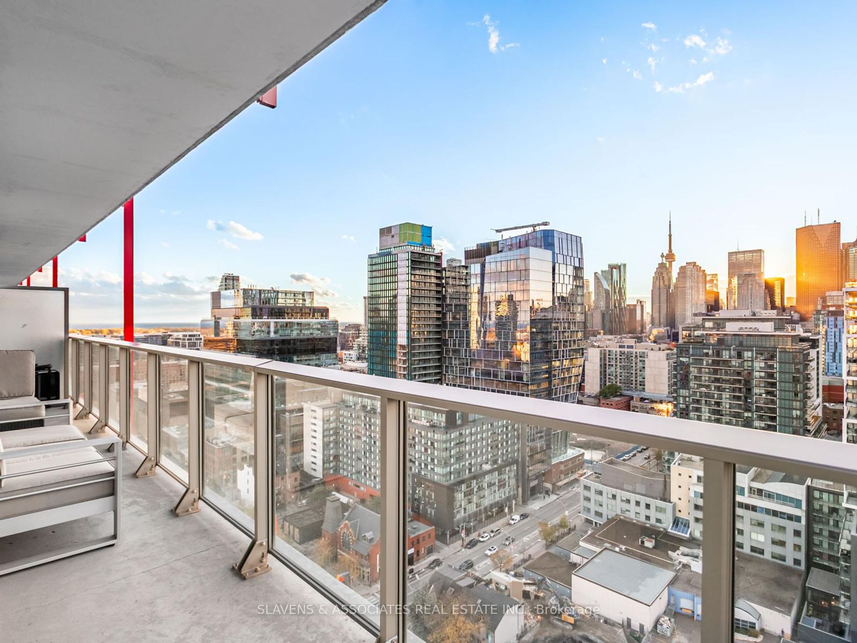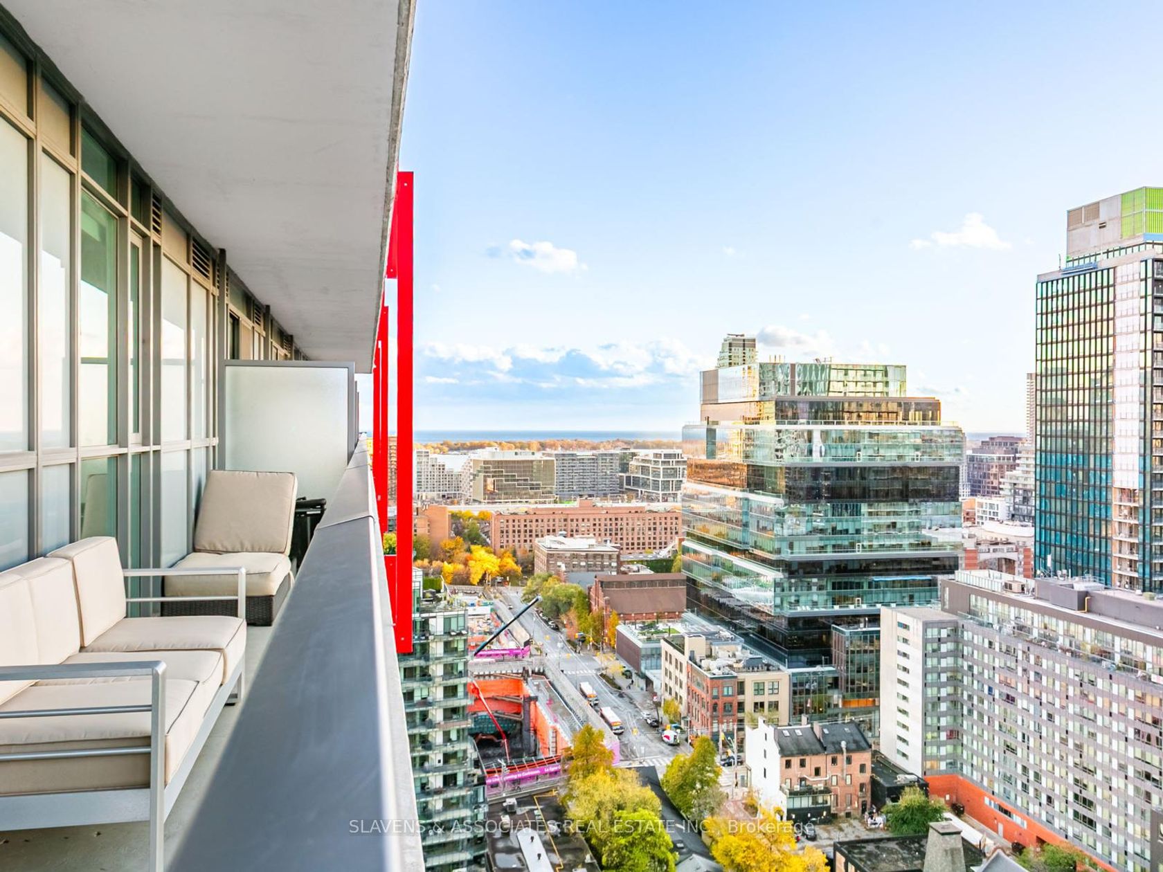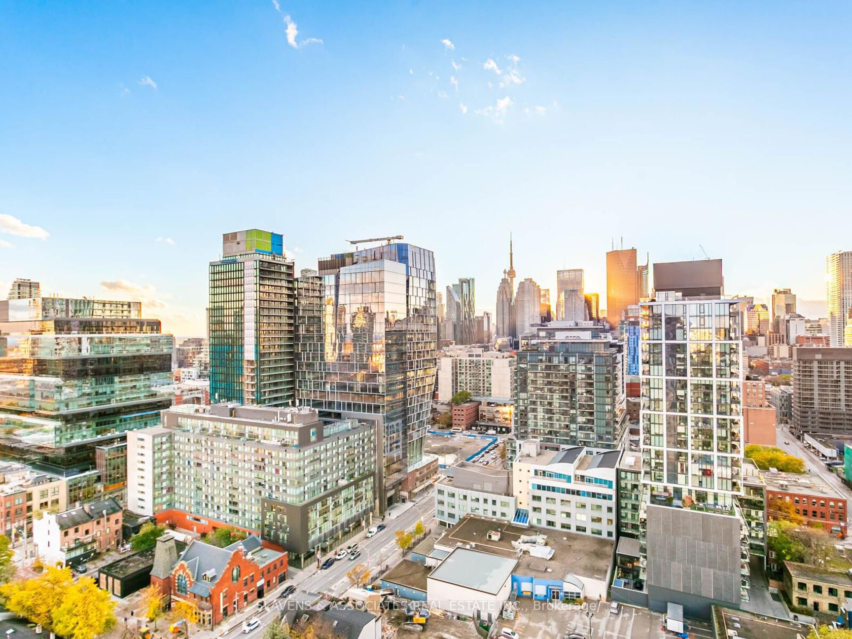 Welcome to East United, where smart design and skyline views define this modern city retreat. This well-planned 2-bedroom, 1-bathroom corner suite makes excellent use of space, featuring a wraparound balcony with sweeping sunset views and clear CN Tower sightlines from both bedrooms. Inside, enjoy an open-concept layout with built-in Bosch appliances, sleek finishes, custom closets throughout for optimized storage, and a bright living area framed by floor-to-ceiling windows. The bedrooms are cozy and inviting, while the spa-inspired bathroom adds a touch of calm and luxury. Owner-occupied since original occupancy and thoughtfully maintained. Some furnishings are available for a turnkey option. Residents have access to exceptional amenities, including a beautifully equipped fitness and yoga studio, rooftop terrace with BBQs, 24-hour concierge, and party room. Ideally located near the Distillery District, St. Lawrence Market, and downtown core.