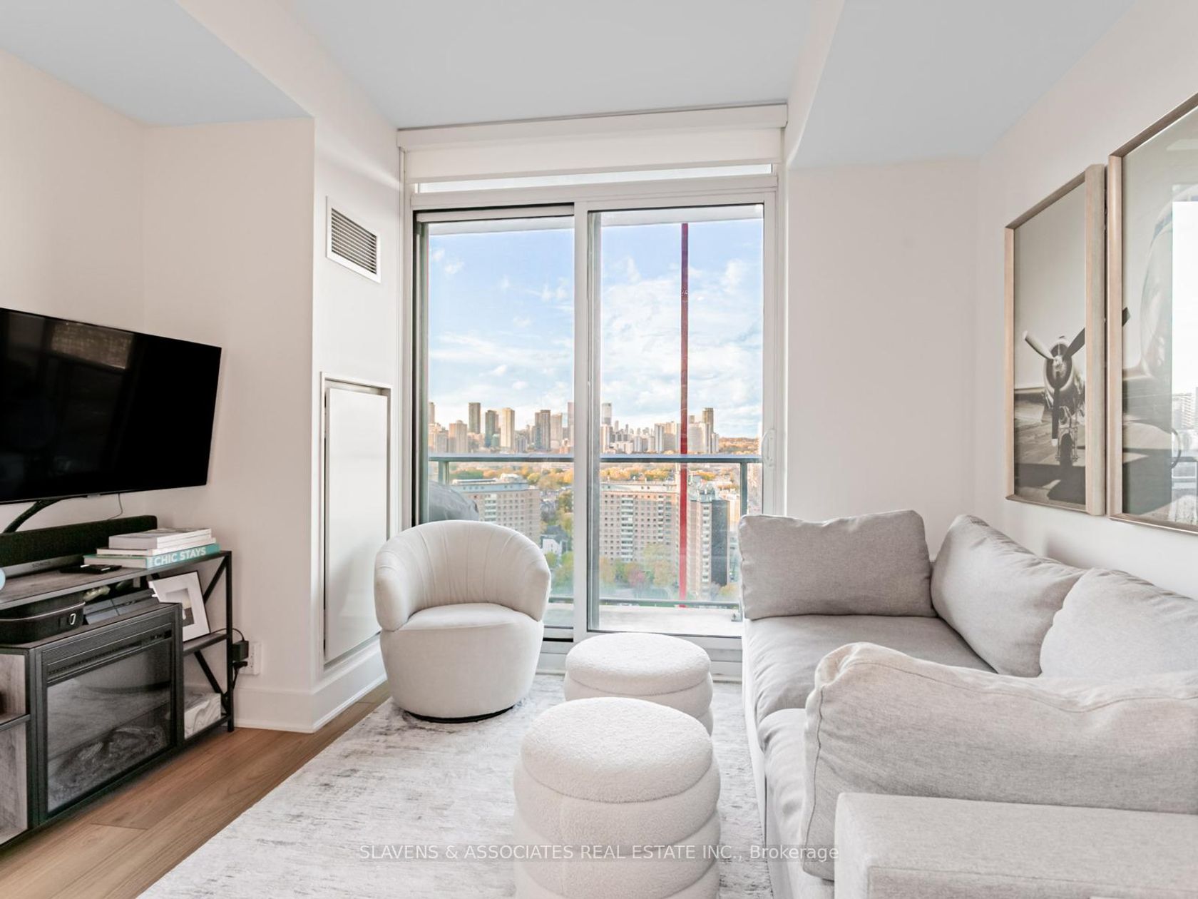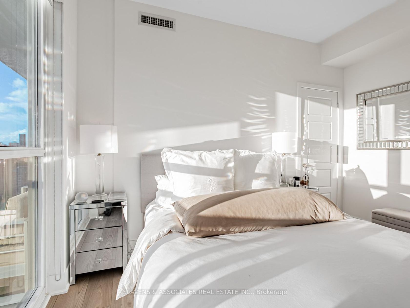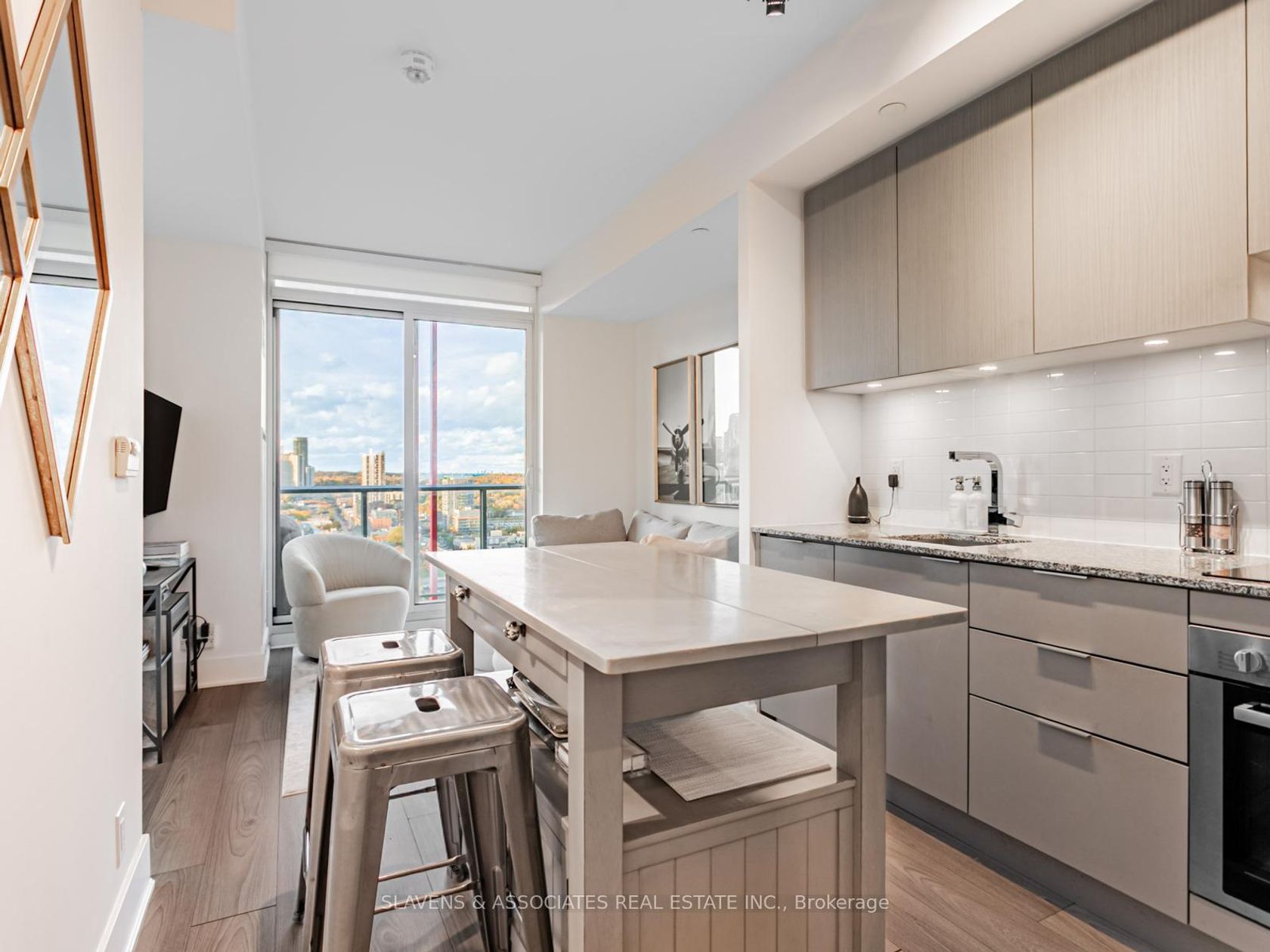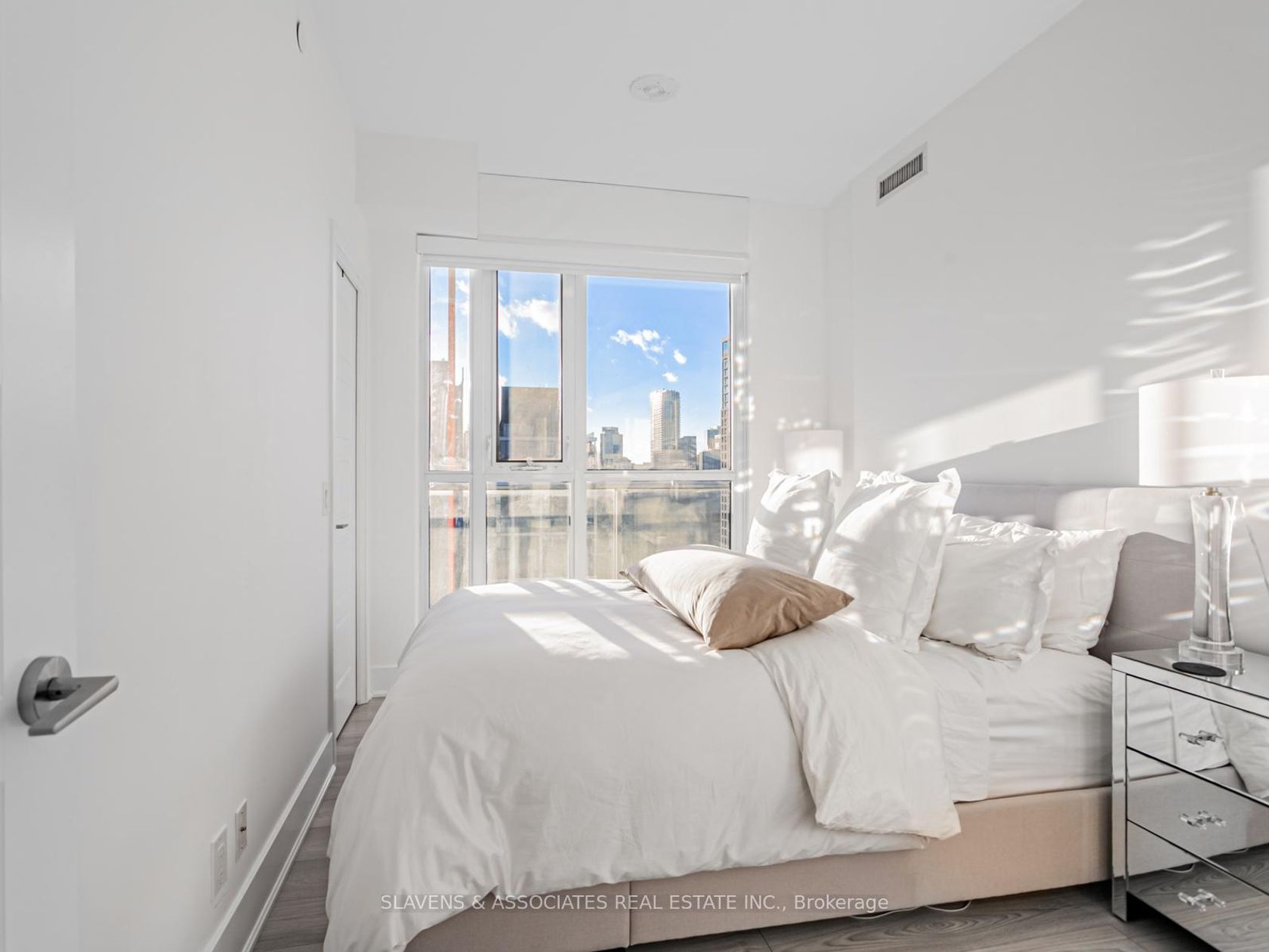 Welcome to East United, where smart design and skyline views define this modern city retreat. This well-planned 2-bedroom, 1-bathroom corner suite makes excellent use of space, featuring a wraparound balcony with sweeping sunset views and clear CN Tower sightlines from both bedrooms. Inside, enjoy an open-concept layout with built-in Bosch appliances, sleek finishes, custom closets throughout for optimized storage, and a bright living area framed by floor-to-ceiling windows. The bedrooms are cozy and inviting, while the spa-inspired bathroom adds a touch of calm and luxury. Owner-occupied since original occupancy and thoughtfully maintained. Some furnishings are available for a turnkey option. Residents have access to exceptional amenities, including a beautifully equipped fitness and yoga studio, rooftop terrace with BBQs, 24-hour concierge, and party room. Ideally located near the Distillery District, St. Lawrence Market, and downtown core.