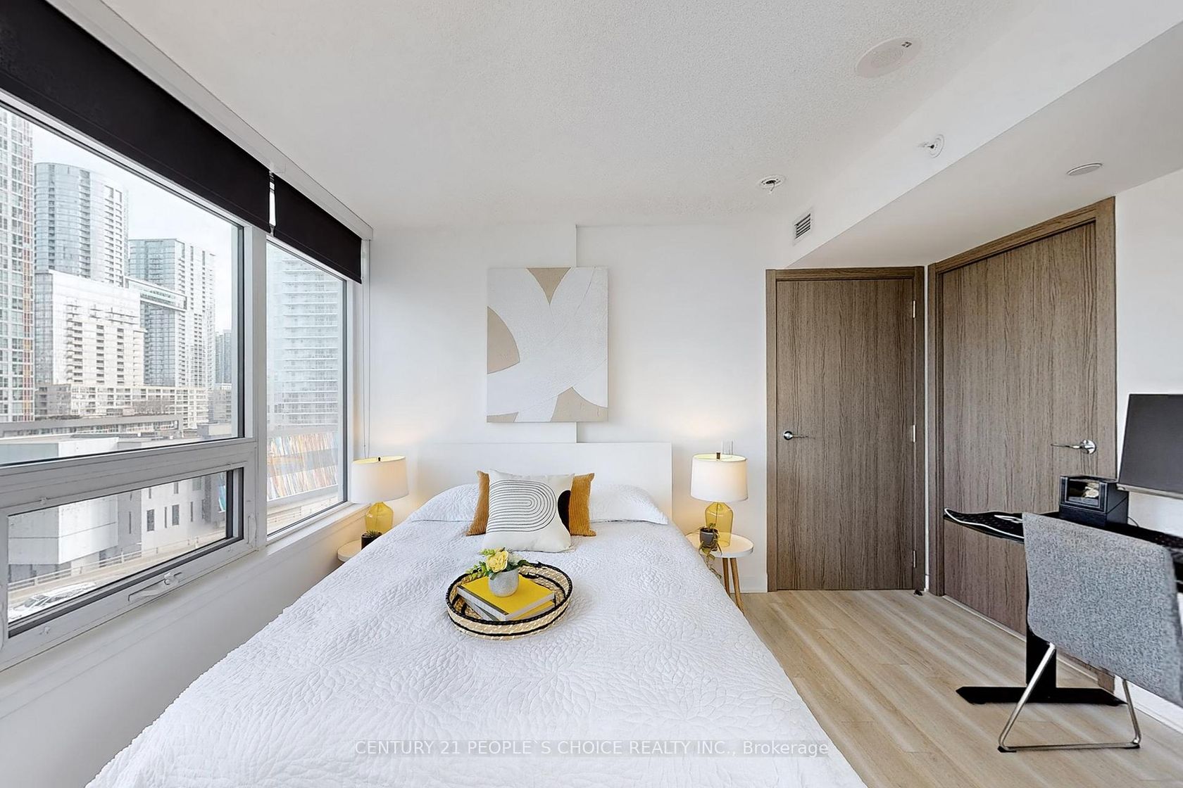 The Lakefront is one of the most luxurious buildings at Downtown Toronto. This bright & spacious modern corner unit, 1+1 den w/ door & window, ideal as a 2nd bedroom or home office, 688SF + 40SF balcony. Trendy kitchen w/ Bosh appliances, quartz countertop; Mstr Br access to bathroom, W/I closet. Enjoy unbeatable convenience with streetcar access at your doorstep, and be minutes from transit, restaurants, the new Loblaws flagship supermarket, the Harbourfront, Gardiner/DVP, Rogers Centre, CN Tower and Union/GO Train Station. Luxury amenities include a spa, pool, gym, rooftop, garden and more. Additional features include a putting golf area, fitness center, myoga room, Sky Garden, Pet Play/Spa, Aquatic Centre, Kids Rm/Playground, Entertain w/ Karaoke, Music/Theatre Rm. B/I Bosh Fridge, Dishwasher, Cooktop, Oven, Range Hood, Microwave, Washer & Dryer. Marble Backsplash, Quartz Counters in Kitchen & Bathroom, Marble flooring in Bathroom & Wood Flooring Throughout.