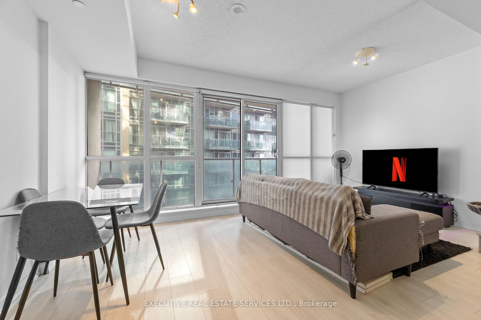 Welcome to Unit 605 at 150 East Liberty Street! This gem of a suite will bring your search to a screeching halt. Situated in the heart of Liberty Village, one of Torontos most vibrant and in-demand neighbourhoods, this 1-bedroom + den condo offers the perfect combination of style, comfort, and convenience. Featuring over 600 sq ft of functional living space, this open-concept layout boasts 9-foot ceilings, modern laminate flooring, and a sleek kitchen complete with full-size stainless-steel appliances, ample cabinetry, and stone countertops. The bright living area walks out to a spacious balcony, ideal for relaxing or entertaining while soaking in the urban views. The versatile den provides the perfect space for a home office or guest area, while the primary bedroom offers excellent storage and natural light. Additional highlights include an owned parking spot and a locker conveniently located on the same floor as the unit. Enjoy the unbeatable Liberty Village lifestyle! Steps to cafes, restaurants, grocery stores, parks, TTC, and everything downtown Toronto has to offer. This one truly checks all the boxes!