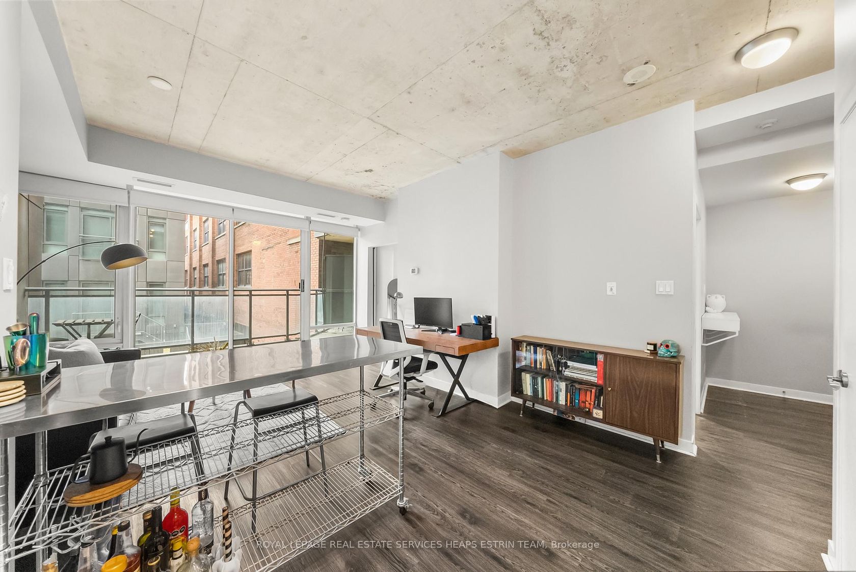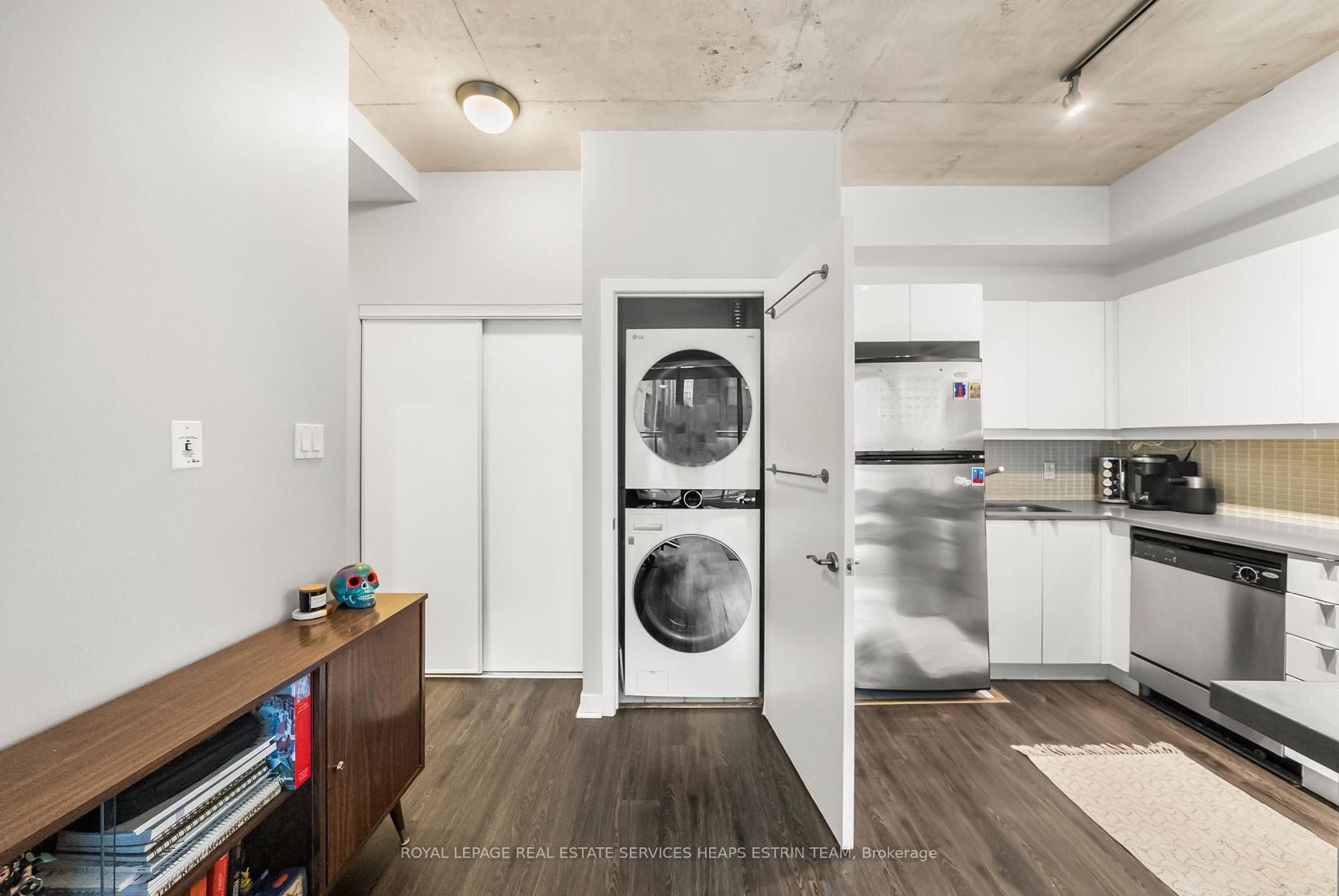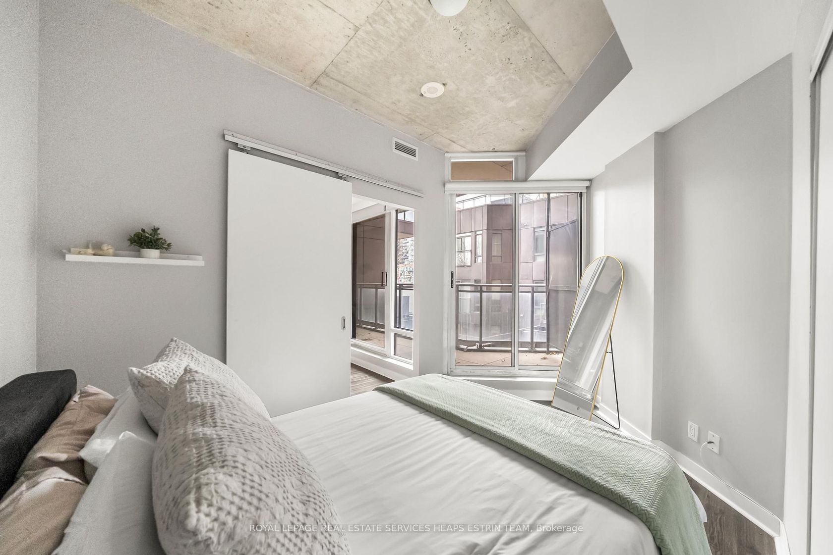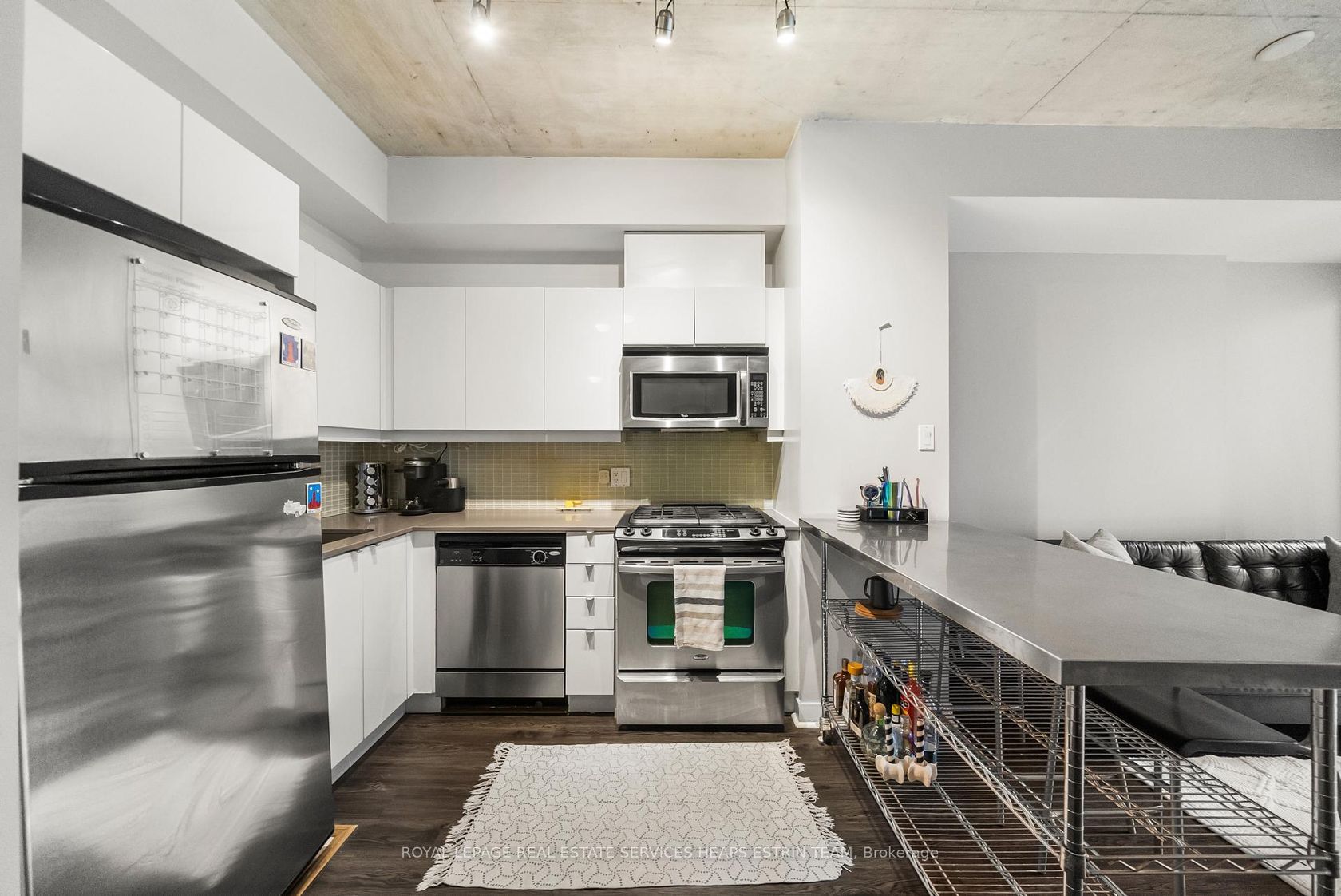 This corner one-bedroom at Glass House Lofts delivers natural light, smart flow, and a vibe that's equal parts refined and relaxed. Perched above Queen and Jarvis in a contemporary boutique building, the suite offers south-facing views framed by floor-to-ceiling windows and an expansive wraparound balcony, complete with a gas BBQ hookup for effortless entertaining. Inside, polished concrete ceilings and a monochrome palette create a sleek, modern backdrop. The open-concept kitchen features full-sized stainless steel appliances and crisp cabinetry. But it's the layout that sets this one apart: a floor plan that works. Intuitive, spacious, and surprisingly flexible. The bedroom includes a generous closet, while an oversized entryway closet adds a rare layer of storage. Tucked into the heart of downtown yet removed from the noise, you're steps to the St. Lawrence Market, St. James Park, the Financial District, and Queen East's cultural core. Clean design. Smart living. Zero compromise.