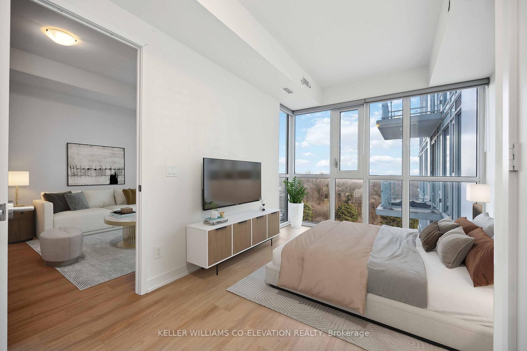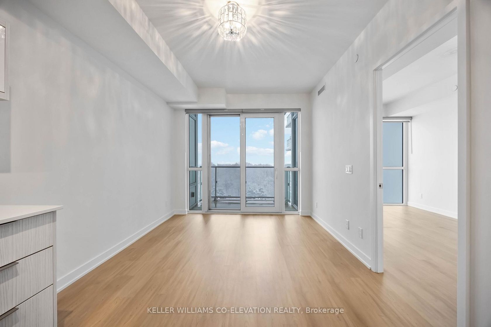 Welcome to Ravine Condos! A stylish modern community surrounded by greenery and exceptional convenience. This beautiful one-bedroom plus den suite offers a bright and functional layout with contemporary finishes throughout. The open concept living and dining area is filled with natural light from its beautiful South facing exposure, providing an inviting space to relax or entertain. The sleek kitchen features full sized stainless steel appliances, quartz countertops, and ample storage. The spacious bedroom incudes a large window and generous closet space, while the separate den is perfect for a home office or guest space. Two well appointed washrooms add comfort and practicality, making this suite ideal for modern living. Freshly painted and upgrades include backsplash, bathroom cabinetry, and lighting. Ravine condos offers a collection of premium amenities including a fitness centre, kids playroom, party room, outdoor terrace on the 13th floor, and 23 hour concierge service for added security. Conveniently located near transit, shopping, parks, and easy access to the DVP, 401 and a TTC stop right at your doorstep. This home combines style, comfort, and outstanding value. A beautiful opportunity to own in a growing and sought after community. Move in and enjoy! One parking spot included. Please note some of the photos are virtually staged.