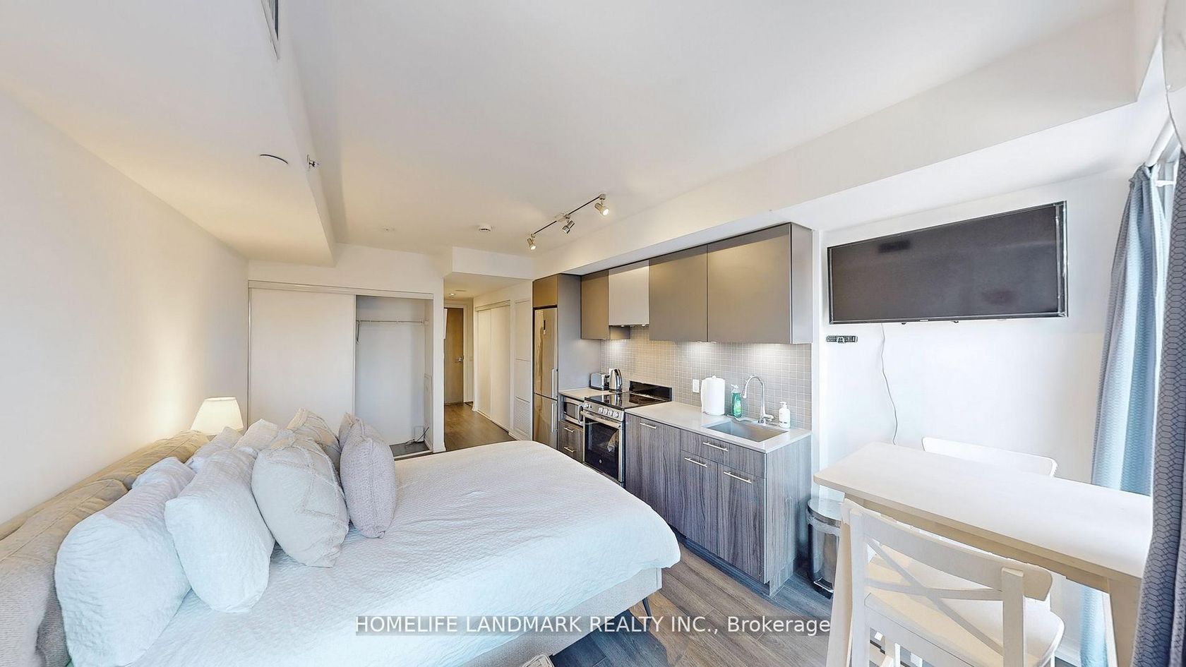 modern studio in downtown Toronto with awesome unobstructed view facing West. Perfect view and atmosphere for WFH or students. Steps to Toronto Metropolitan University, Eaton Centre, Yonge/Dundas Square, Nathan Philips Square, Lakeshore, Cinema, Cafes & Restaurants. Includes one locker on the same level as the unit.