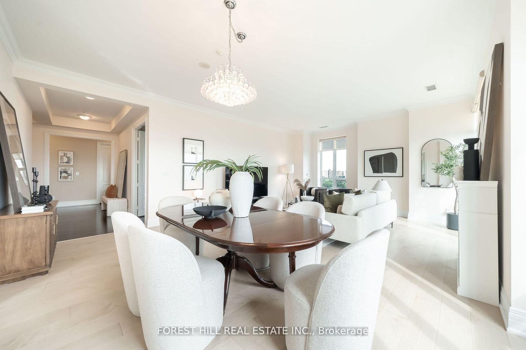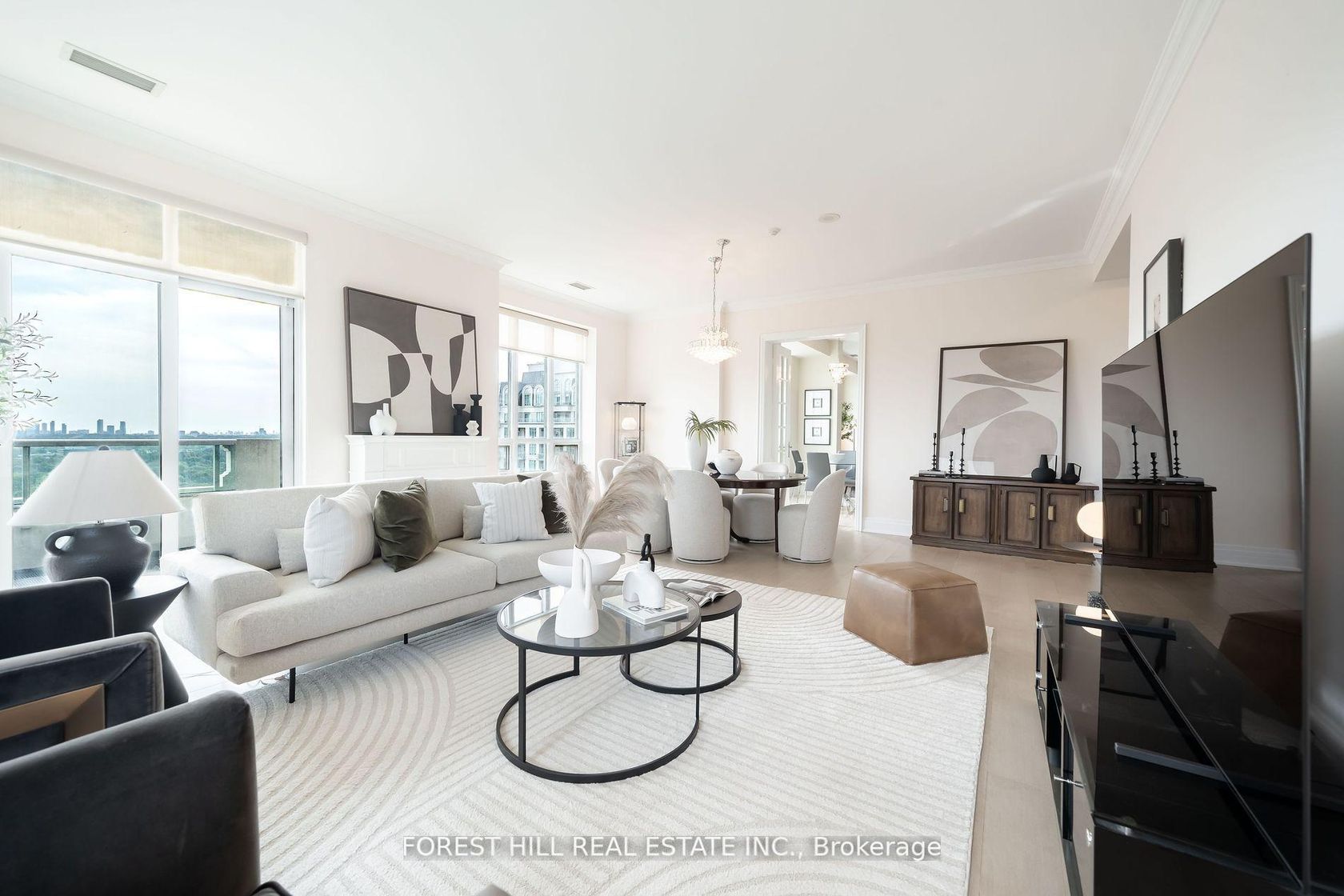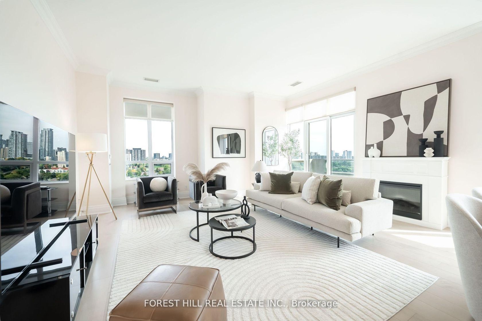Experience the pinnacle of luxury living in this unique, rarely-available corner unit penthouse at the prestigious Aria Building, with over 3000 Sq.ft of indoor space. Occupying the south east corner, this penthouse is one of only four units on the floor. This spacious 4-bedroom apartment comes with a versatile floor plan. Desirable split-bedroom design that offers privacy and ample storage. Step into the grandeur of this home with its 10-foot ceilings, 8' solid core doors, crown moldings, hardwood flooring, electric fireplace and unobstructed panoramic views from every room. The large kitchen is a chef's delight, featuring a breakfast area, quartz countertops, a built-in wine fridge, and stainless steel appliances. Over 300 Sq.ft of outdoor space with gas line for BBQ. Three parking spots and one locker. This exceptional residence boasts hotel-like amenities such as a large indoor pool, well-equipped gym, virtual golf simulator, party/meeting room, guest suites and more with an unbeatable location. Nestled in one of the most secluded locations in North York, yet close to all amenities: Minutes to Hwy 401 & 404, Bayview Village, North York General and state of the art community centre. A city oasis, not to be missed!