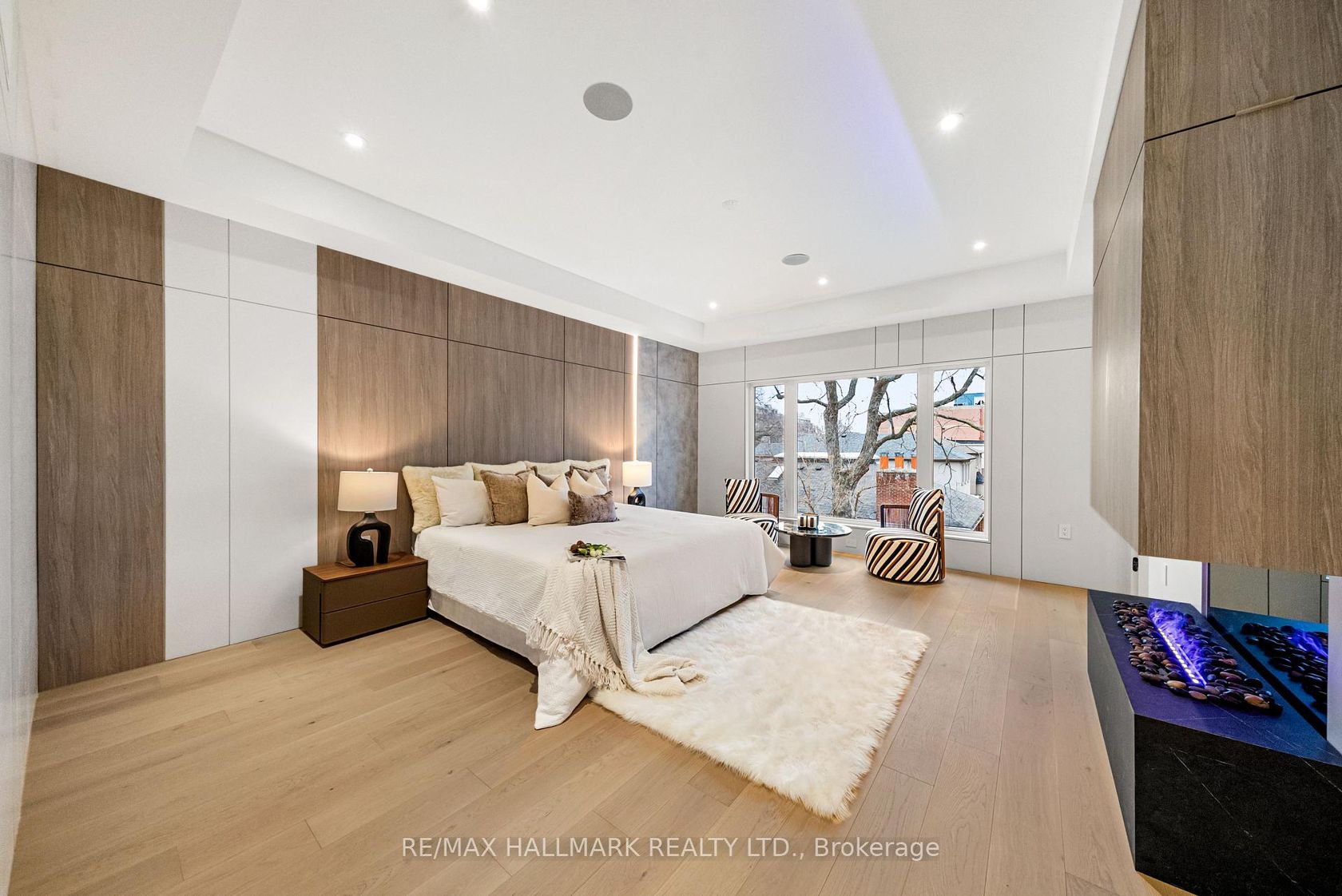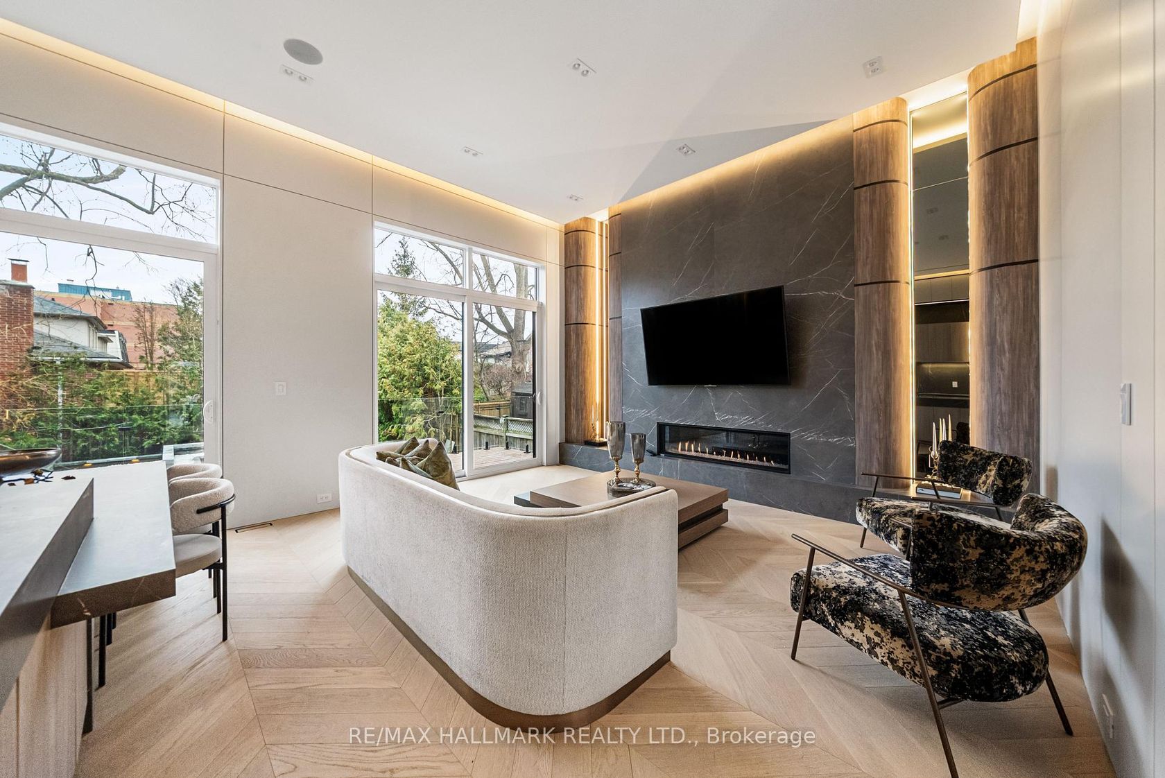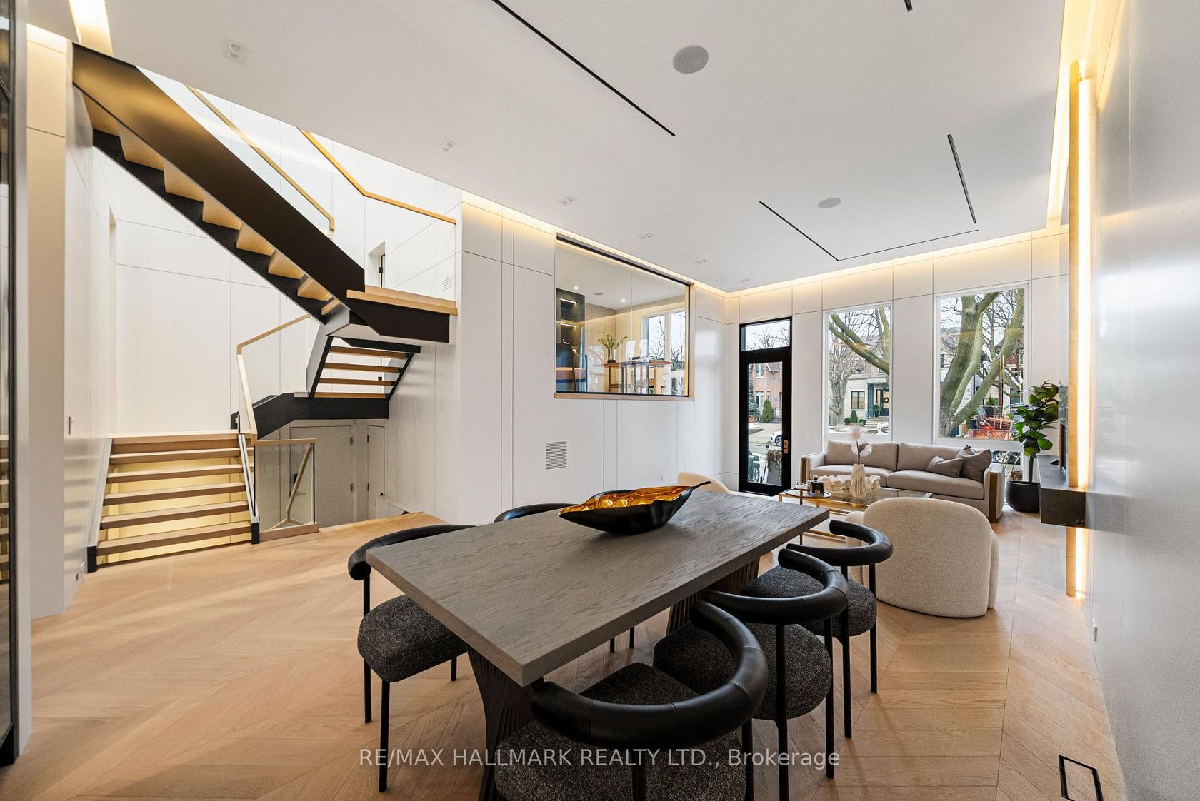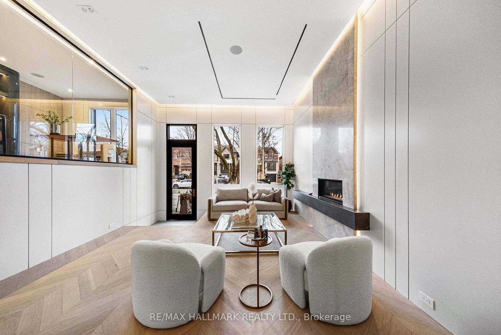 This exceptional custom-built residence offers of luxurious living space, thoughtfully designed to blend timeless elegance with modern convenience, and ideally located in sought-after South Leaside. Step inside to soaring 13-foot ceilings on the main floor and expansive floor-to-ceiling windows that flood the home with natural light. White oak flooring throughout and matching white oak stairs create a warm, contemporary aesthetic, complemented by designer wood paneling, custom millwork, and cabinetry with integrated lighting. The open-concept main level is ideal for everyday living and entertaining, featuring a walkout to the backyard and a chef-inspired kitchen with premium built-in appliances, sleek finishes, and ample storage. A custom stone sitting area with fireplace adds warmth and character, while over 50 custom exterior light fixtures enhance the home's striking presence. Enjoy year-round comfort with a full radiant heated driveway, front steps, and porch, built-in speakers throughout, limestone, and a Control4 smart home system for integrated lighting and audio. The second floor offers four spacious bedrooms, each with direct bathroom access. The primary suite is a private retreat with a luxurious 8-piece ensuite with steam sauna. Laundry on two levels adds everyday convenience. Also equipped with 2 furnace rooms with 2 steam humidifiers. The fully finished walk-out basement with a separate entrance features radiant heated floors throughout , a full kitchen, a media room with built-in speakers, and three additional bedrooms, including an ideal nanny or in-law suite. This home offers approximately 4,500 sq. ft. of living space! Located near Leaside High School and Northlea Elementary & Middle School, as well as parks, shops, and transit, this rare offering combines superior craftsmanship, thoughtful design, and an exceptional location-truly the perfect place to call home.