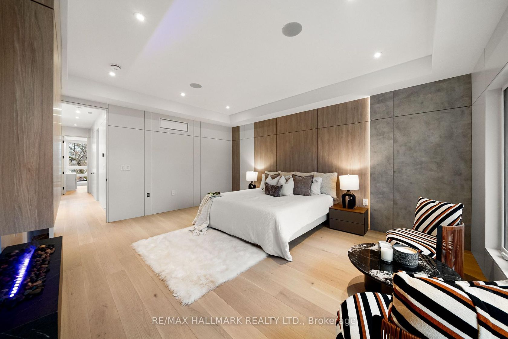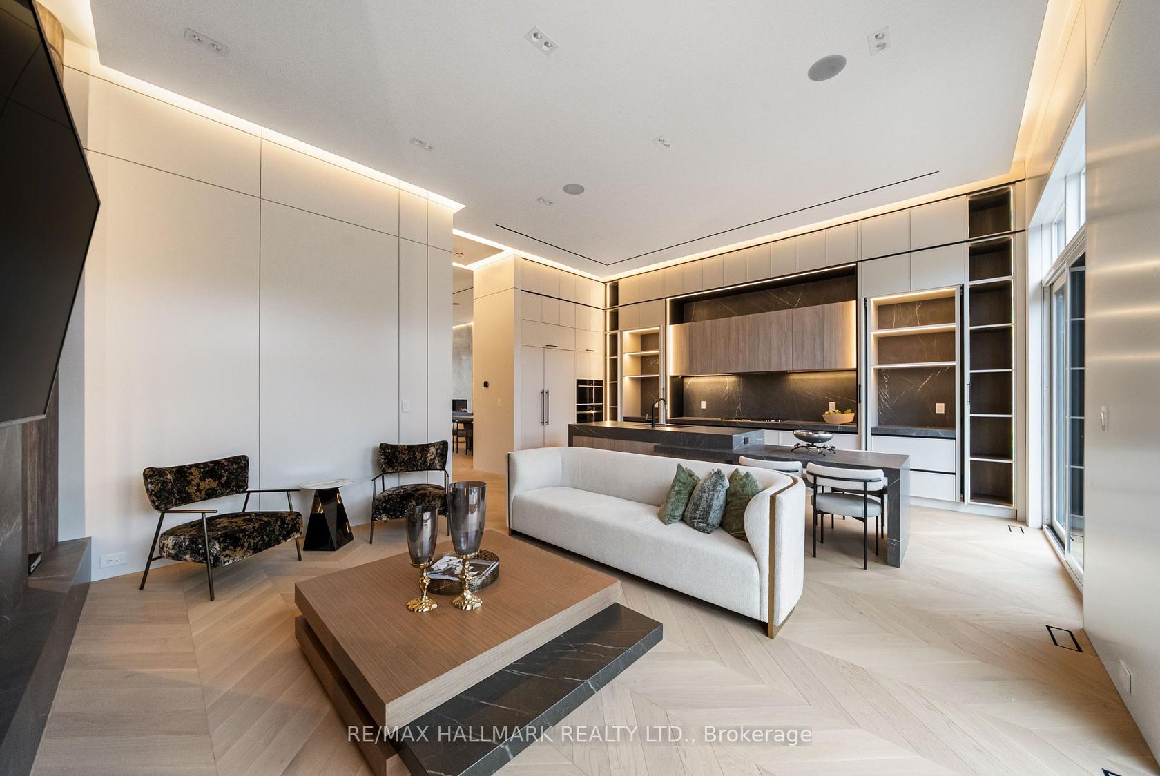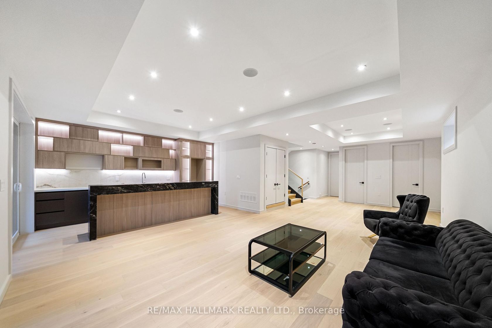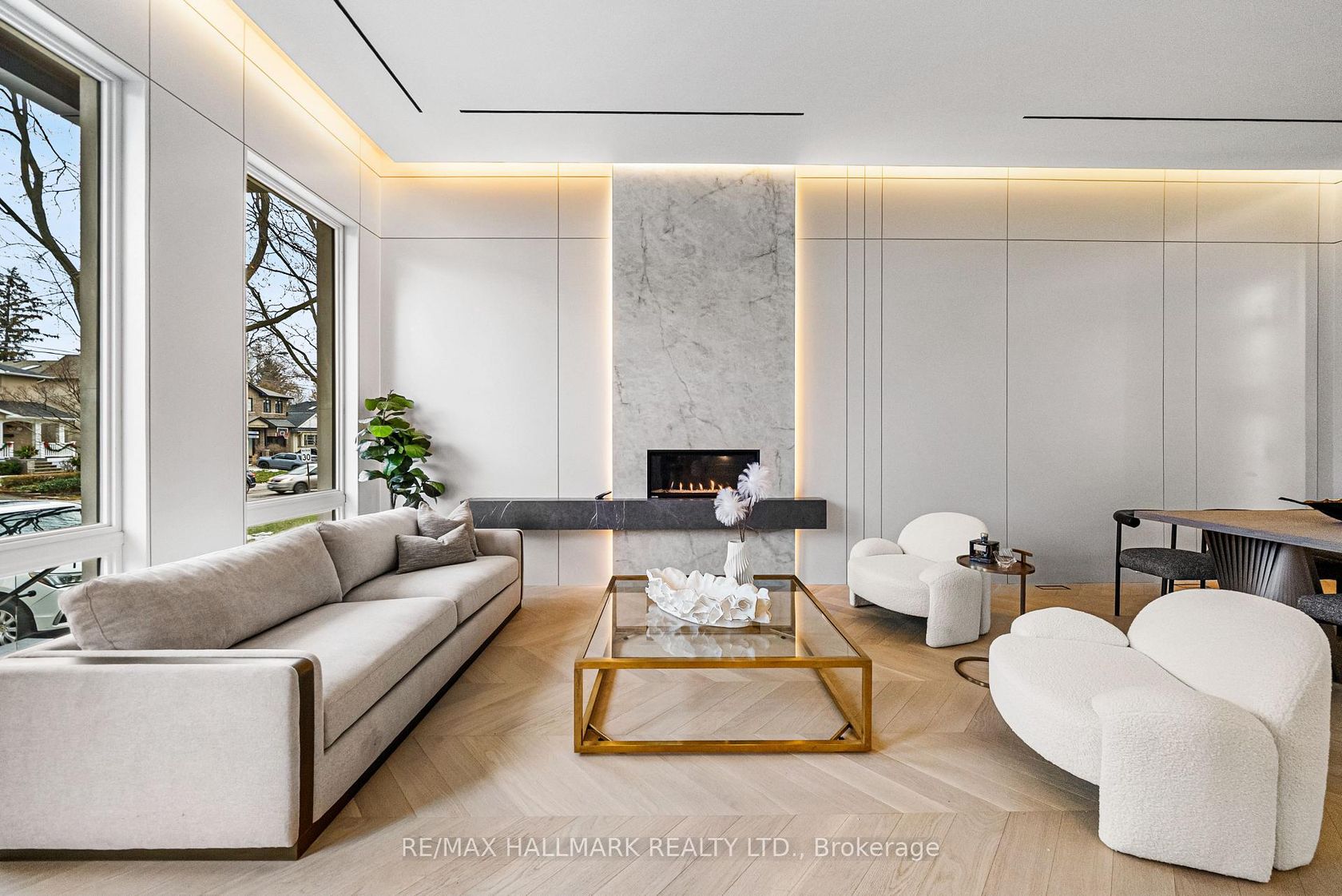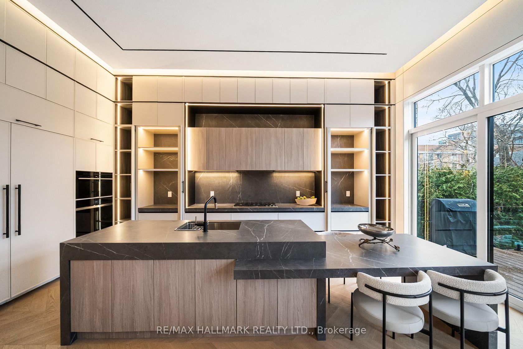 This exceptional custom-built residence offers of luxurious living space, thoughtfully designed to blend timeless elegance with modern convenience, and ideally located in sought-after South Leaside. Step inside to soaring 13-foot ceilings on the main floor and expansive floor-to-ceiling windows that flood the home with natural light. White oak flooring throughout and matching white oak stairs create a warm, contemporary aesthetic, complemented by designer wood paneling, custom millwork, and cabinetry with integrated lighting. The open-concept main level is ideal for everyday living and entertaining, featuring a walkout to the backyard and a chef-inspired kitchen with premium built-in appliances, sleek finishes, and ample storage. A custom stone sitting area with fireplace adds warmth and character, while over 50 custom exterior light fixtures enhance the home's striking presence. Enjoy year-round comfort with a full radiant heated driveway, front steps, and porch, built-in speakers throughout, limestone, and a Control4 smart home system for integrated lighting and audio. The second floor offers four spacious bedrooms, each with direct bathroom access. The primary suite is a private retreat with a luxurious 8-piece ensuite with steam sauna. Laundry on two levels adds everyday convenience. Also equipped with 2 furnace rooms with 2 steam humidifiers. The fully finished walk-out basement with a separate entrance features radiant heated floors throughout , a full kitchen, a media room with built-in speakers, and three additional bedrooms, including an ideal nanny or in-law suite. This home offers approximately 4,500 sq. ft. of living space! Located near Leaside High School and Northlea Elementary & Middle School, as well as parks, shops, and transit, this rare offering combines superior craftsmanship, thoughtful design, and an exceptional location-truly the perfect place to call home.