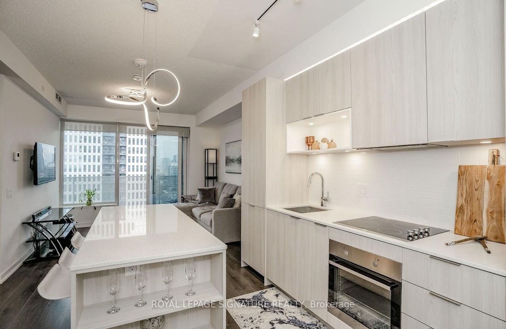 Welcome to "The Wyatt" by Daniel Corp. Modern, Bright and Sleek 1+ Den/Office Unit With 1 Parking Space and 1 Storage. Functional and Well Designed Layout With 9 foot Ceiling, Laminate Flooring Throughout, Huge Windows Flood The Space With Natural Light. Freshly Updated Unit Presents Like New, Featuring Professional Repainting And Detailed Touch-Ups. Modern Upgraded Kitchen With Centre Island, Quartz Countertops, Cabinet Lighting, and Built-In Stainless Appliances. The Unit Boasts a Massive Balcony Overlooking Clear South-West City And Park Views. Amazing Amenities Include Gym, Party Room, Roof Top Terrace, BBQ's, Rock Climbing Room and Lounge. Steps From TTC Streetcars, Easy Access To DVP, Community Centre, Soccer Field, Basketball Court, Aquatic Centre and Parks all in Walking Distance. Great Opportunity To Live Or Invest In Great Community In Regent Park.