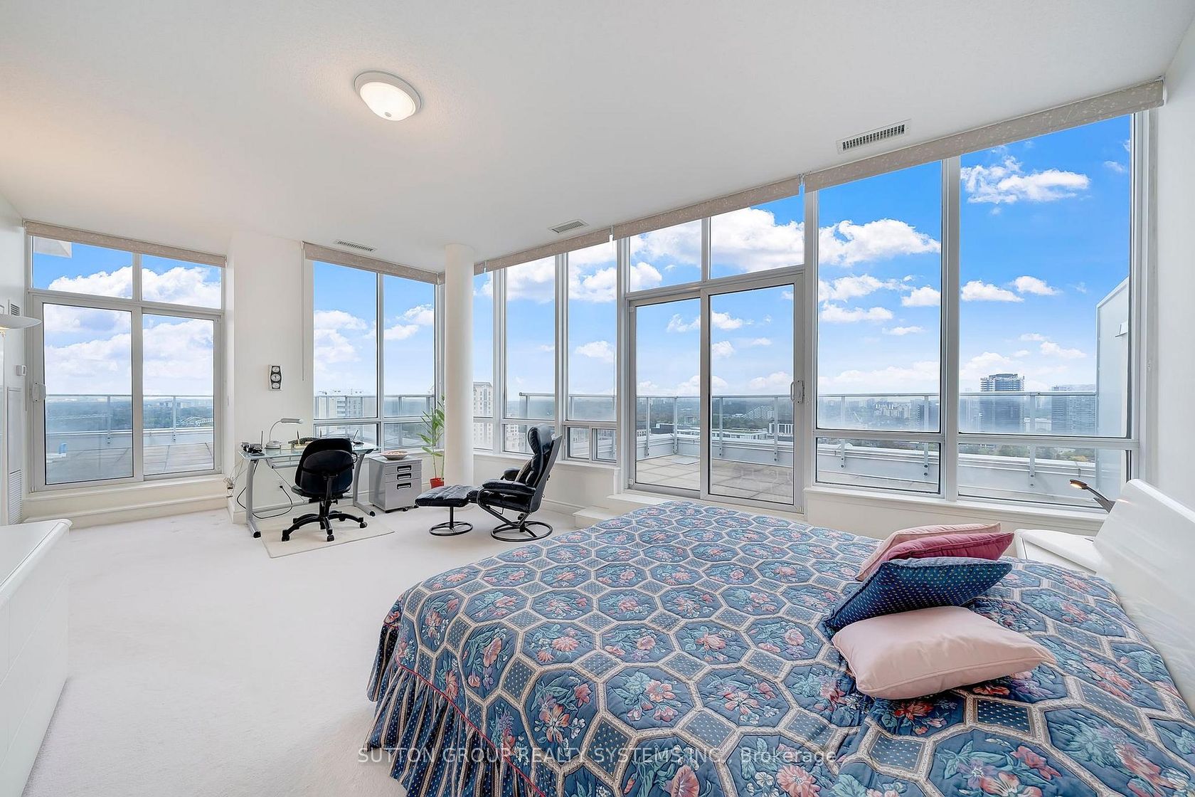 Discover an elevated standard of living in this breathtaking nearly 1,900-square-foot corner penthouse atop the esteemed New York Towers. Reminiscent of a "bungalow in the sky," this expansive residence is defined by soaring ceilings and a sophisticated layout that includes two gracious bedrooms with ensuites, a refined sunroom, and a versatile large den perfect for use as a third bedroom. Large windows frame unparalleled panoramic vistas and flood the unit with natural sunlight, while two magnificent terraces offer over approx. 600 square feet of private outdoor sanctuary. Perfectly positioned steps from the gourmet boutiques of Bayview Village and the subway, this residence caters to an elite "lock-and-leave" lifestyle with 24-hour concierge service and **all-inclusive utilities**. Residents enjoy exclusive membership to the Liberty Club, featuring a sun-drenched indoor pool, fitness center, and virtual golf. Complete with two premium parking spaces and a private locker, this rare penthouse represents a seamless blend of immense scale, privacy, and world-class convenience for the discerning buyer.