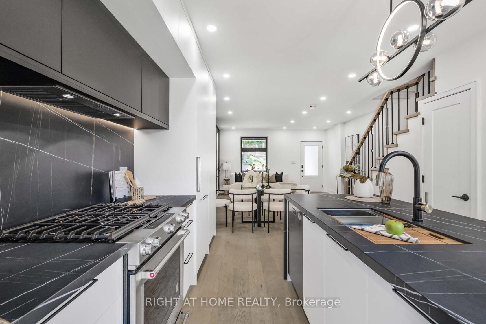 Welcome to this stunning reimagined luxury 2.5-storey residence in the heart of The Beaches. Offering approx. 1,880 sq. ft. of refined living space, this home features 3 spacious bedrooms plus a versatile loft that can serve as a 4th bedroom, 4 beautifully designed bathrooms, and a fully finished walkout basement with its own kitchen. Renovated from top to bottom, this home combines timeless design with modern convenience, showcasing engineered European wide-plank hardwood, refined millwork, sleek matte finishes, and a striking feature wall with an elongated fireplace. The custom chefs kitchen showcases Italian Sahara slab counters with an oversized waterfall island, Fulgor Milano & KitchenAid appliances, and designer lighting ideal for entertaining. Dramatic 10-ft sliding doors open to a landscaped backyard oasis with custom deck, interlocking, and stone patio. A private driveway with 2 parking spaces adds rare convenience. Upstairs, bright bedrooms include custom closets, spa-inspired bathrooms with Italian tile, and a primary suite with a glass shower and brushed-gold fixtures, while a second-floor laundry enhances daily living. With all-new mechanicals including a new furnace, 200-amp service, plumbing, waterproofing, and smart-home features, this turnkey home provides peace of mind. Steps to Queen St., Kew Gardens, and top schools including Williamson Rd. (French Immersion), and less than a 10-minute walk to sandy beaches and the boardwalks that define this lifestyle.