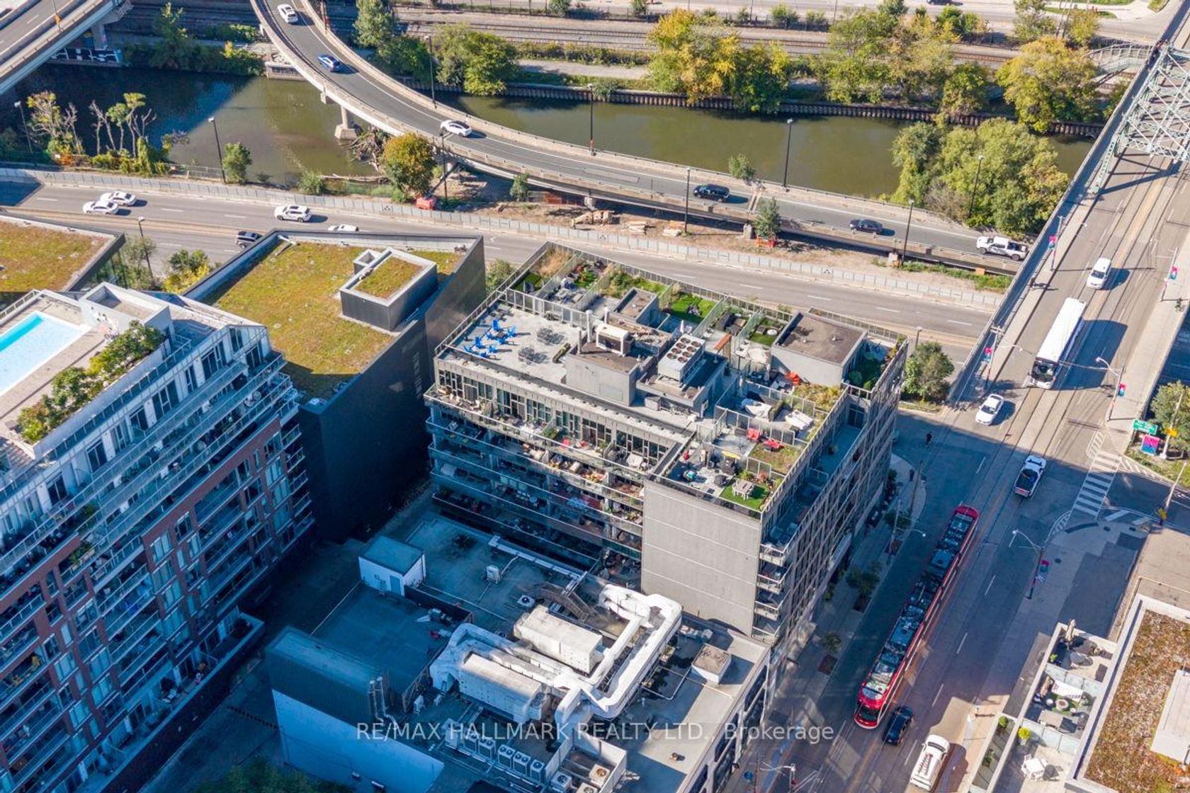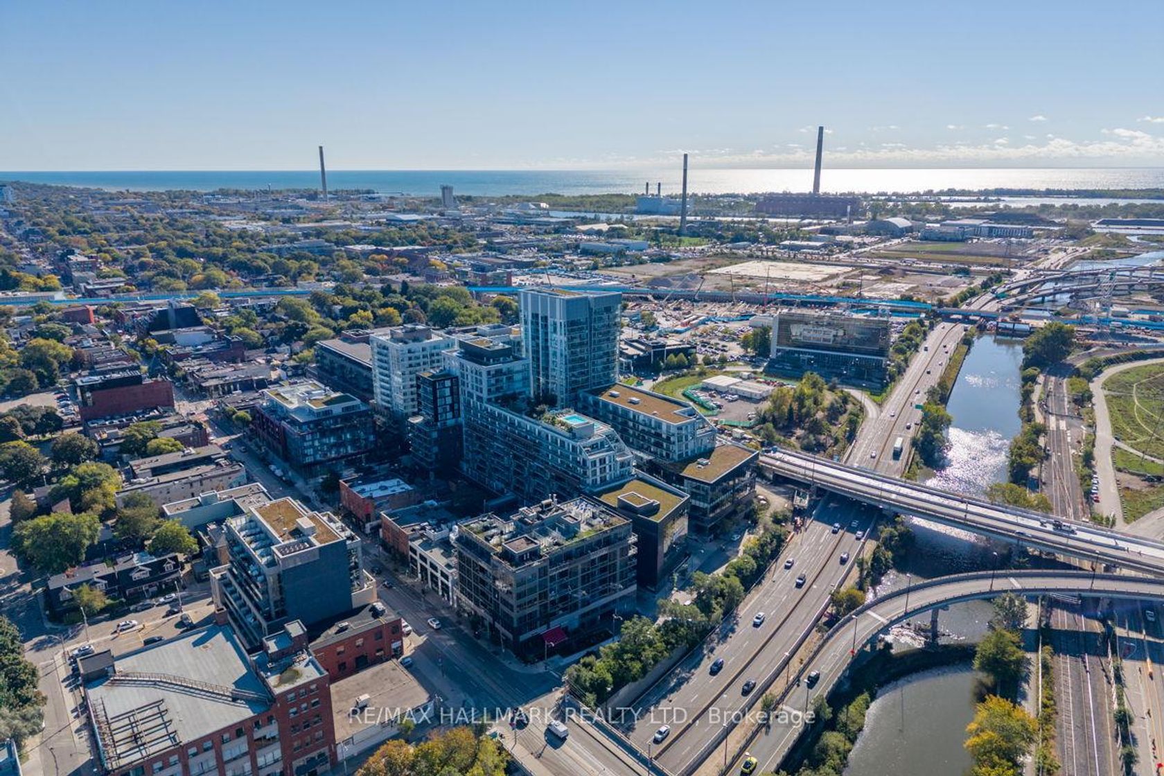 Stunning Edge Lofts 2 bedroom, 2 washroom, south-east corner suite, large balcony along with a rare and high demand underground parking & locker (directly in front of the parking space). Perfectly situated in Riverside at Queen St E & The Don Valley, just west of Leslieville. This bright and airy unit is on the quiet side of the building. Open concept layout includes 10-ft smooth ceilings with pot lights, polished concrete floors, and floor-to-ceiling windows. The modern kitchen features stone countertops, a glass tile backsplash, stainless steel appliances, an under-mounted sink, and a spacious island with a breakfast bar. Two spacious bedrooms share an ensuite with a deep soaker tub, and the primary includes his & hers closets for optimal storage. A separate powder room, front entry coat closet, and built-in storage solutions add practicality. Enjoy warm summer nights on your large private balcony, ideal for dining or relaxing. Convenient visitor parking. This unit offers unbeatable access to downtown and transit, with the DVP on-ramp right outside, the Queen streetcar along with the upcoming Metrolinx Ontario Line just steps away! Walking distance to The Broadview Hotel, and all the trendy shops & restaurants Queen St E has to offer. Meticulously maintained and freshly painted, just move in and enjoy loft living at its finest!