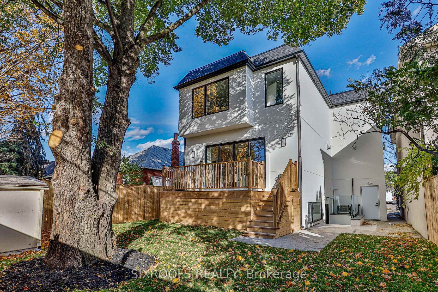 Welcome to 104 Roosevelt Rd, a spacious 2-storey legal duplex on a wide 37' lot in East York. Total legal living space of 3,200+ sq ft. Directly across from open green space and public tennis courts, this home offers rare tranquility in the city. Inside, you'll find 5 bedrooms and 3 full bathrooms upstairs-perfect for large families or multi-generational living. The main floor features soaring 10' ceilings, an open-concept layout, a dedicated office, built-in speakers, and a walkout to a generous backyard deck. The chef's kitchen is equipped with abundant cabinetry, a wine shelf, and modern finishes. Upstairs ceilings reach 9', adding to the airy feel.The basement impresses with 8.5' ceilings, super-sized windows that flood the space with natural light, a legal kitchen, two full bathrooms, and potential to create two separate rental suites-ideal for income or extended family. With a spacious backyard, attached garage, and proximity to top-rated schools, TTC, and Danforth shops, this property blends comfort, convenience, and opportunity in one of Toronto's most desirable pockets.