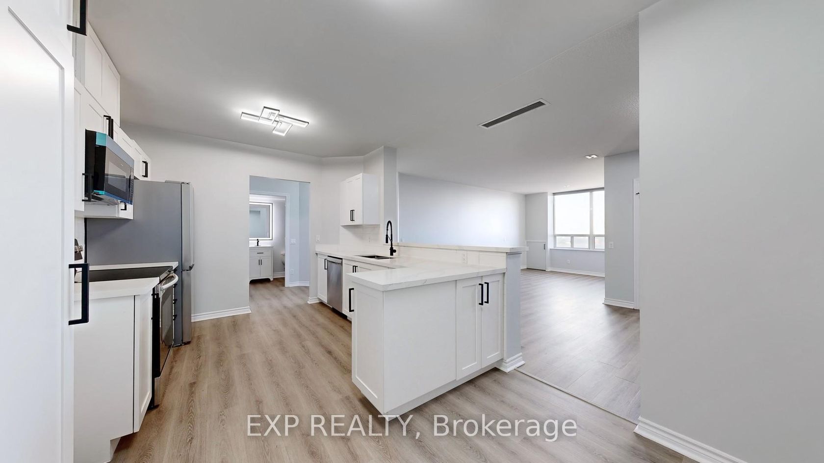PH09: THE ULTIMATE PENTHOUSE LUXURY - NEWLY RENOVATED CHEF'S KITCHEN & UNOBSTRUCTED VIEWS. Experience true "Sky-Home" living in this professionally renovated 2-Bedroom, 2-Bathroom Penthouse. PH09 provides a level of finish and prestige that is unmatched in this building. Enjoy the rare advantage of soaring 8'6" ceilings-higher than lower floors-and zero neighbours above you for increased privacy. UNMATCHED VALUE & MODERN UPGRADES PH09 offers a completely turnkey luxury experience, professionally renovated in 2025. Brand New Chef's Kitchen: Premium quartz countertops, custom soft-close cabinetry with sleek black hardware, designer tile backsplash, and never-used stainless steel appliances (33" fridge, dishwasher, and externally vented microwave). Spa-Inspired Bathrooms: Featuring quartz vanities, undermount sinks, anti-fog LED mirrors, and contemporary matte black fixtures. Designer Finishes: High-end luxury vinyl plank flooring, a custom accent feature wall, and a fresh modern palette. Storage & Comfort: New custom cellular blinds with bonus blackout blinds in both bedrooms for more restful sleeps! For those requiring additional space, lockers in the building may become available for monthly rent or for sale and notices can be posted on the bulletin board, (Form available from Property Management Company). BREATHLESS VIEWS & AMENITIES. Savour unobstructed city views that are far superior to lower-level units. Residents enjoy 24-hour gated security and Tridel-built amenities: indoor pool, hot tub, sauna, gym, and party room. LOCATION, just a 1-minute walk to Scarborough Centre Station and minutes to HWY 401. Steps to Scarborough Town Centre, dining, and parks. Priced fairly for immediate move-in. Why settle for "standard" when you can own this Amazing Penthouse?
