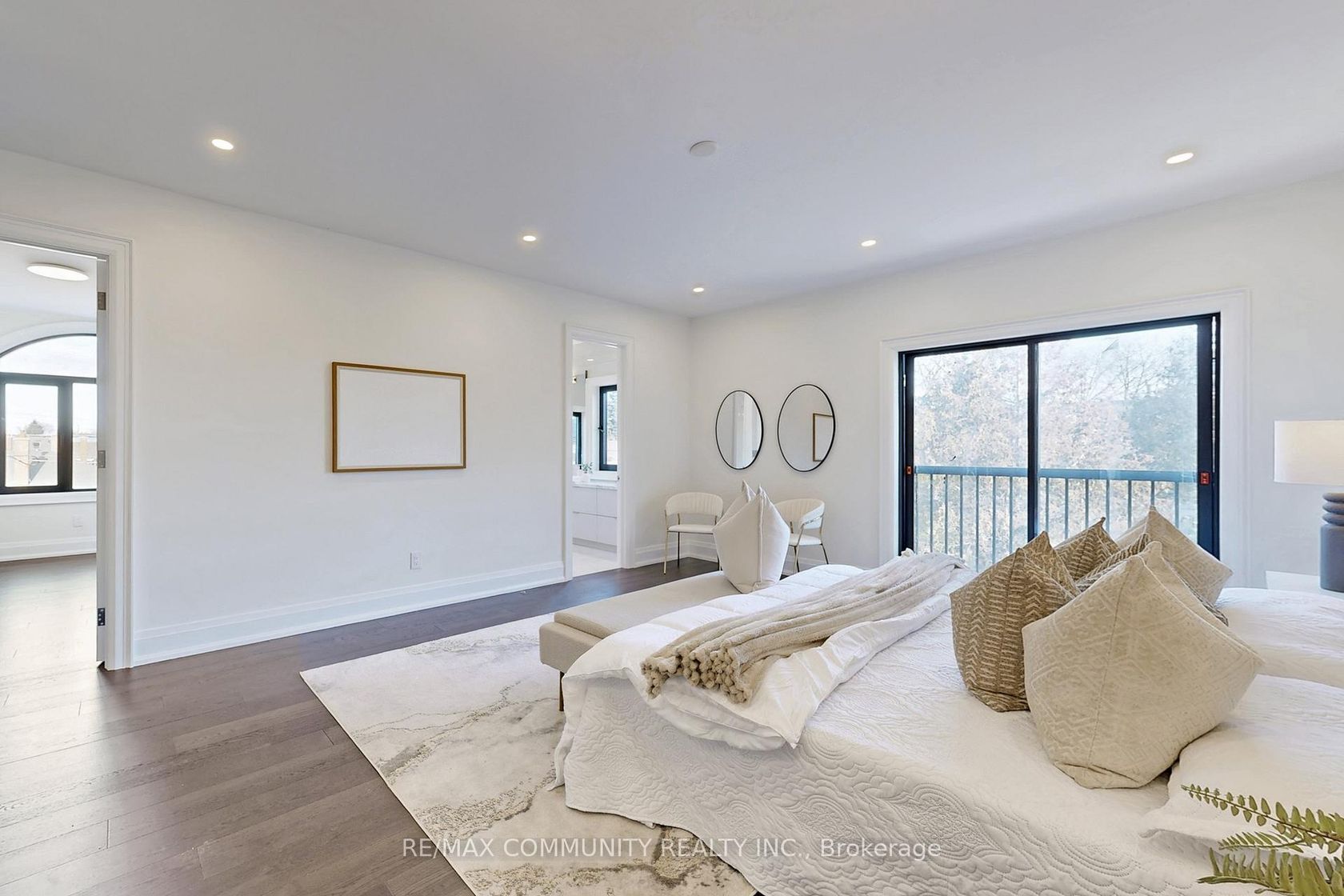 Welcome to this newly built luxury residence in Toronto's GTA, designed for discerning buyers seeking both elegance and practicality. Set on a generous lot, the stone and brick façade with gabled rooflines, covered porch and Juliette balcony set an impressive tone. Inside, wide-plank hardwood flooring, soaring ceilings and a striking floating staircase introduce the main level. A light-filled family/dining room with fireplace flows to the expansive chef's kitchen, which showcases custom flat-panel cabinetry, a waterfall-edge island with seating, professional 6-burner range, built-in refrigerator and a secondary dirty kitchen for prep. A formal living/dining area, full guest suite, powder room and mudroom with garage access complete this floor. Upstairs, the principal bedroom retreat boasts room for a sitting area, a massive walk-in closet and a spa-inspired 5-piece ensuite with freestanding tub, oversized glass shower and double vanity. Three additional bedrooms -- one with its own ensuite -- share a stylish 4-piecebath, while a central laundry room and a versatile den/office provide everyday convenience. The lower level is unique: one side contains a rec room, den, mechanical/storage and bath, perfect for a home theatre or gym, while the other side is a legally registered 2-bedroom suite featuring its own entrance, full kitchen, living/dining area, bath and laundry -- ideal for income, extended family or a nanny. High-efficiency HVAC, sump pump, abundant storage and thoughtful sound/fire separation deliver peace of mind. A single built-in garage plus paved driveway, rear deck and fenced yard complete the package.