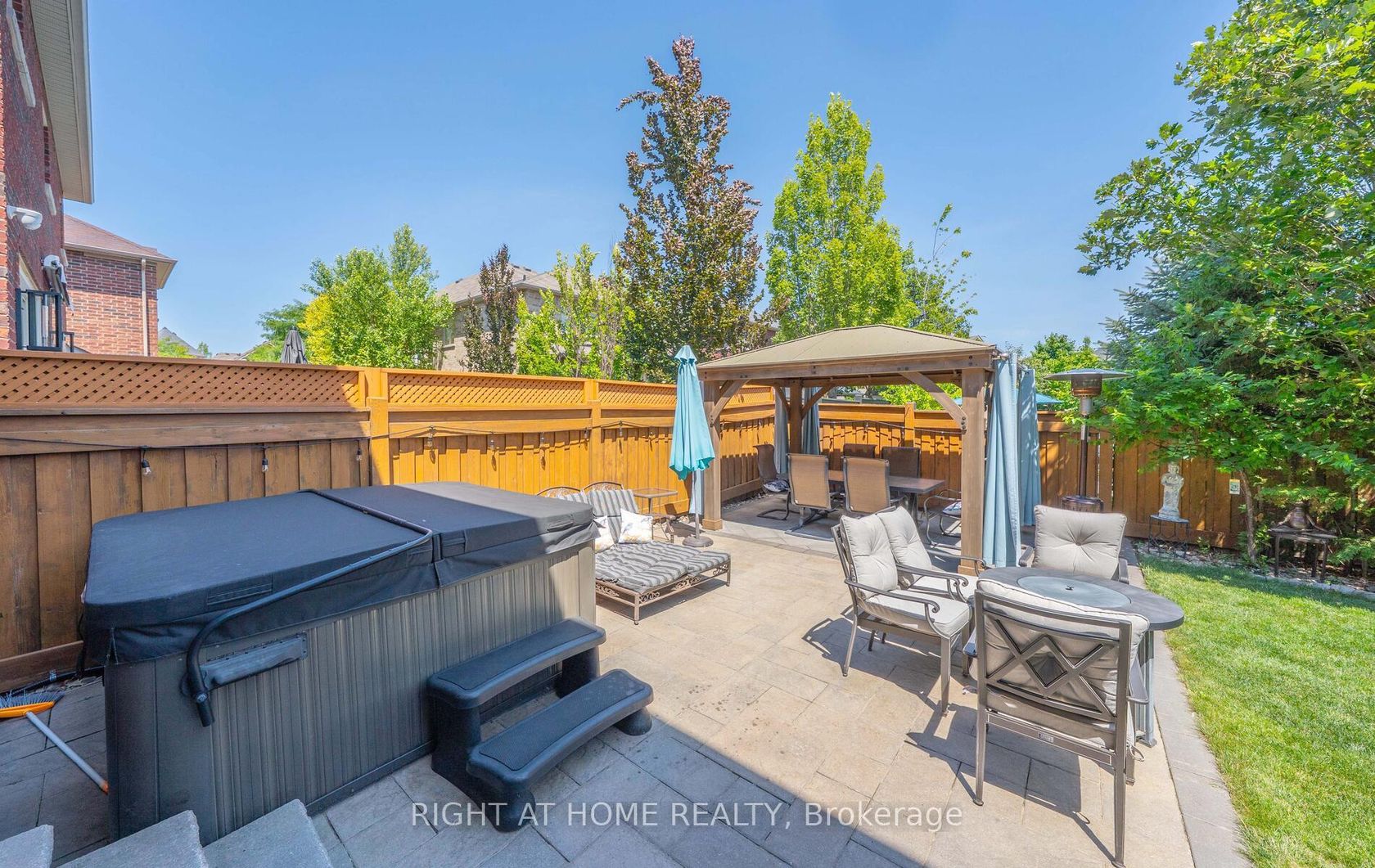 This prestigious 5 bedroom luxury home in a coveted crescent next to Village Green Park is perfect for your growing family. This immaculate home has high end upgrades including gourmet kitchen with extended upper maple cabinetry, quartz countertop, marble backsplash, copper exhaust fan, and walk-in pantry. Smooth ceilings and hardwood floors are complimented by upgraded custom moulding and coffered ceilings, upgraded lighting and pot lights throughout. Family room is equipped with 7.1 surround sound and upgraded fireplace mantle and custom transom window. Upgraded quartz countertops, wood cabinetry, and custom tiles in all washrooms, master ensuite with enlarged jacuzzi tub and glass shower. 9 ft ceilings in fully finished open concept basement with wet bar, surround sound built in speakers, and home theatre. Each room in this house is equipped with wired gigabit LAN, upgraded sound insulation, custom closet organizers, in addition to being Energy Star certified with a hot water recovery system. Feel protected with a wired home security system and even a back flush valve has been installed reducing your home insurance costs. HD and 4K antennas installed for uncompromised TV viewing.Patio stones in the front and backyard complement a cedar gazebo (2021) with electricity and J-Series Jacuzzi hot tub (2021) which is perfect for entertaining even through the winter. Zoned to one of the best elementary and secondary schools in Vaughan. Includes central vac, central air, kitchen appliances, light fixtures, washer and dryer, window coverings.