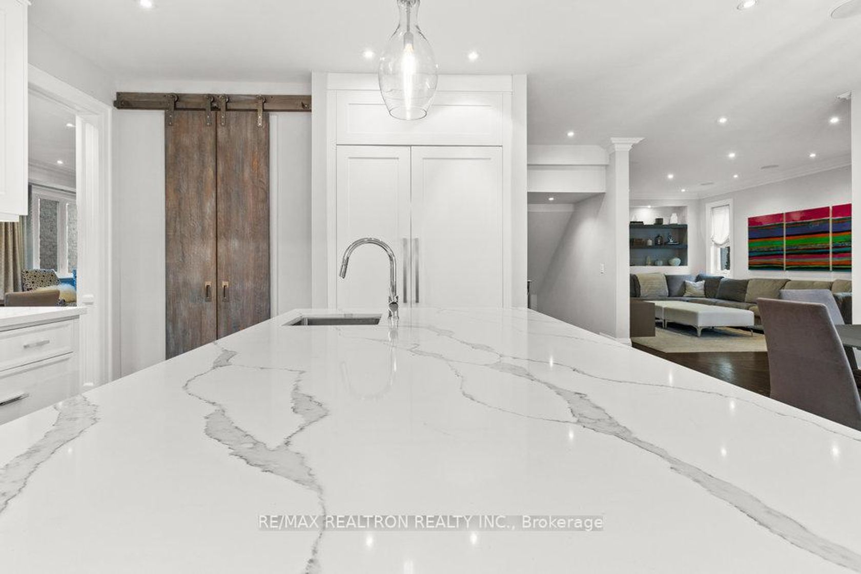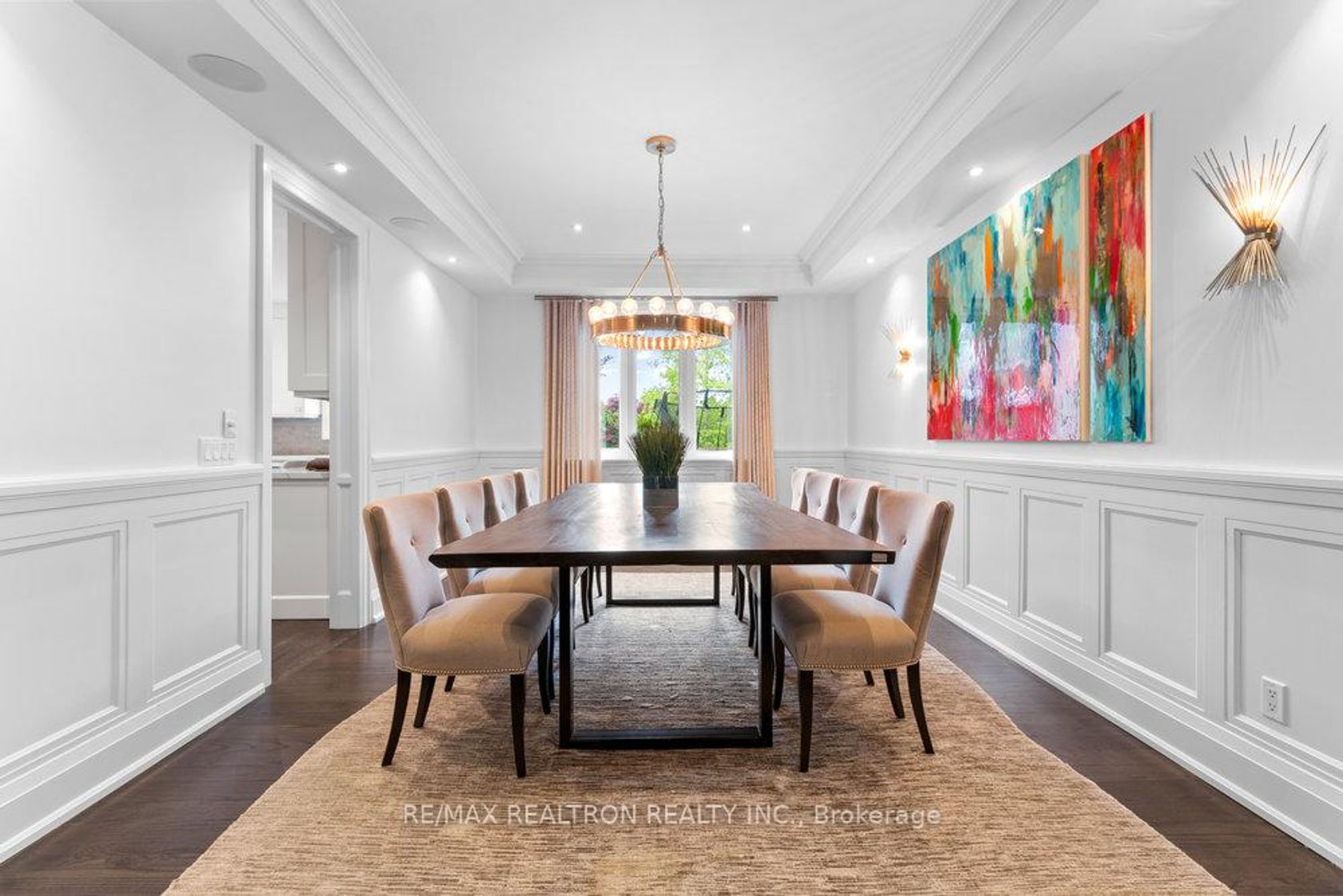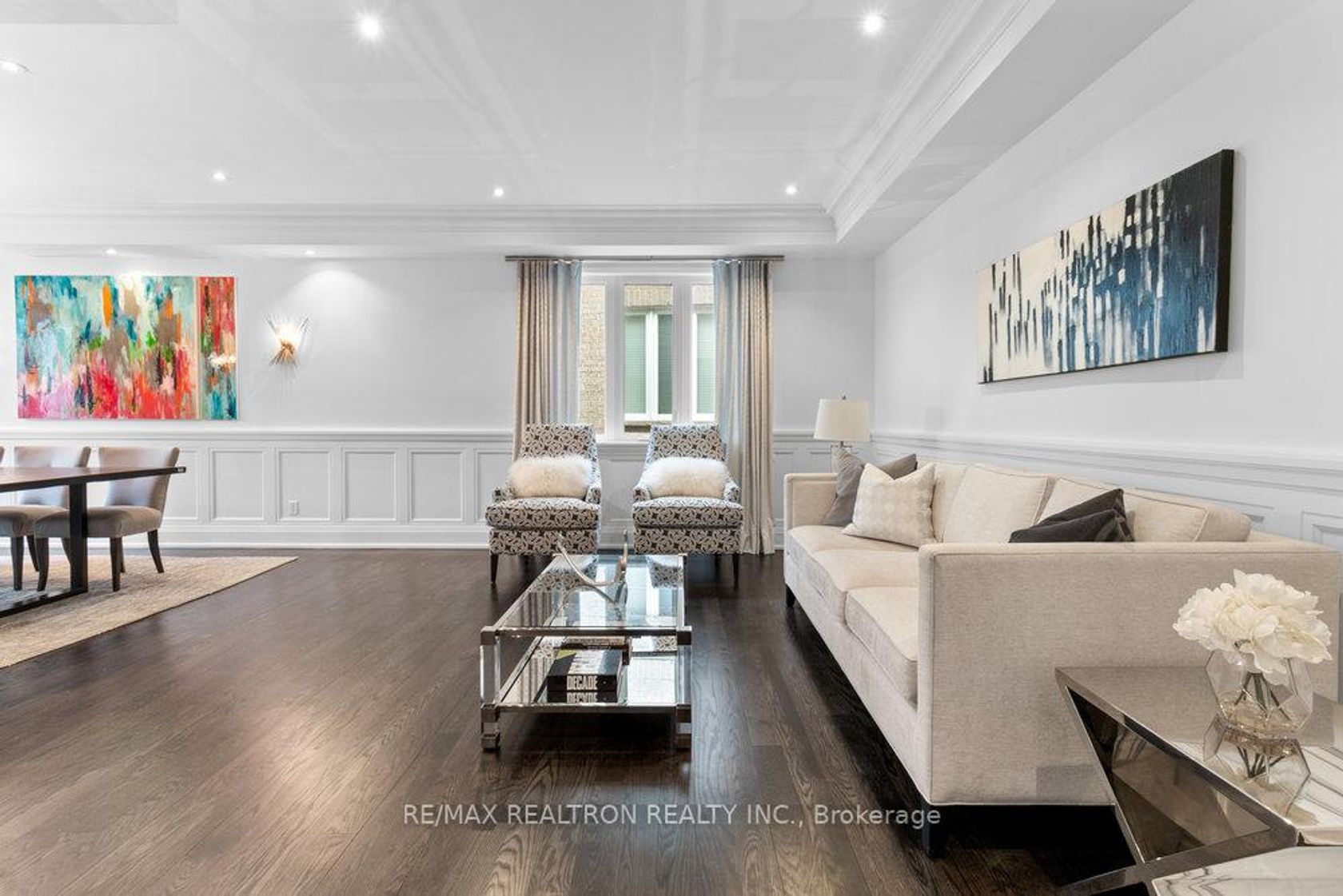 Welcome to your dream home in one of Thornhill's most desirable communities. This beautifully crafted residence offers soaring ceilings and abundant natural light, thanks to a central skylight and oversized windows that create an open, airy feel throughout. Elegant details include paneled walls, strip hardwood flooring, a striking cast iron staircase, and sleek quartz countertops. Each room has been professionally designed with its own character, combining modern comfort with timeless style. The main floor is thoughtfully designed for both everyday living and stylish entertaining. The chef's kitchen is a true centerpiece, featuring stainless steel appliances, a large center island, and a custom-designed pantry. Spacious living and dining areas set the perfect stage for gatherings, while a private office provides a quiet space for work or study. Downstairs, the fully finished basement offers a versatile retreat with a generous recreation room, a chic four-piece bathroom, and two additional bedrooms perfect for guests, extended family, or a home gym or studio. This exceptional home comes complete with custom window coverings, designer light fixtures, and top-quality appliances. A rare opportunity to enjoy luxury, comfort, and convenience in one of Thornhill's most sought-after neighborhoods.