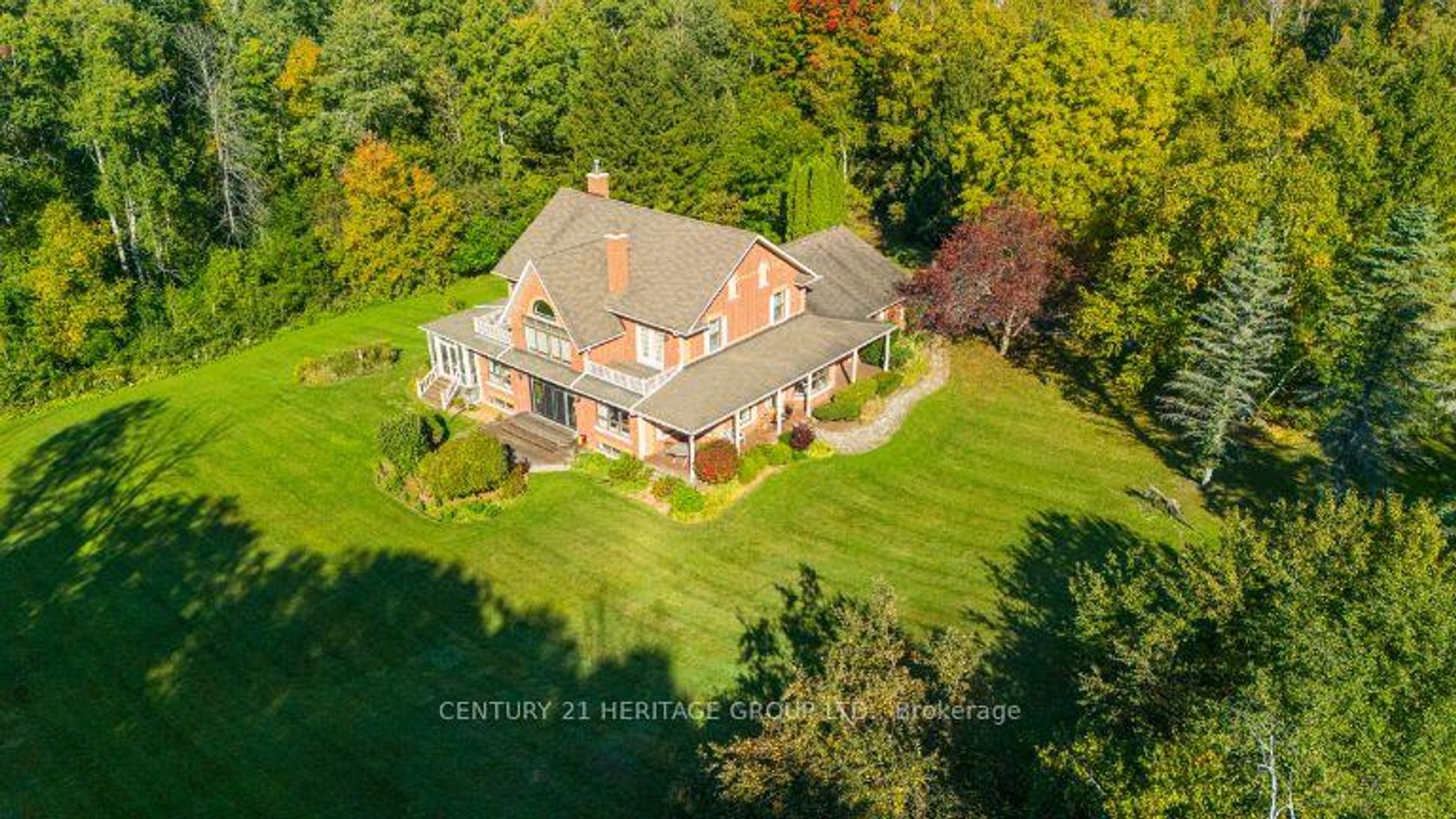 Exquisite 3.6-acre estate in prestigious Carrying Place Estates, privately tucked at the end of a quiet court. Surrounded by breathtaking four-season forest with a perfect blend of flat and rolling terrain. Showcasing French-inspired architecture, this residence offers multiple wraparound verandas and timeless elegance throughout. The modern designer kitchen features quartz countertops, a breakfast island, and refined finishes. A double-sided fireplace enhances both warmth and sophistication. Step onto the grand veranda spanning the back of the home perfect for morning coffee or evening entertaining. The primary suite is a private retreat with a walk-in closet, spa-inspired ensuite, and balcony with serene forest views. Two additional bedrooms provide comfort and style. The finished lower level boasts custom built-ins, a fireplace, sauna, and a sleek three-piece bath. A rare opportunity to own an exclusive residence offering unmatched privacy, elegance, and natural beauty in one of the areas most coveted communities. Mins to Highway 400, Hwy 9,Go Transit,Kings Finest Schools CDS, Villa Nova, Amenities Newmarket and Schomberg.