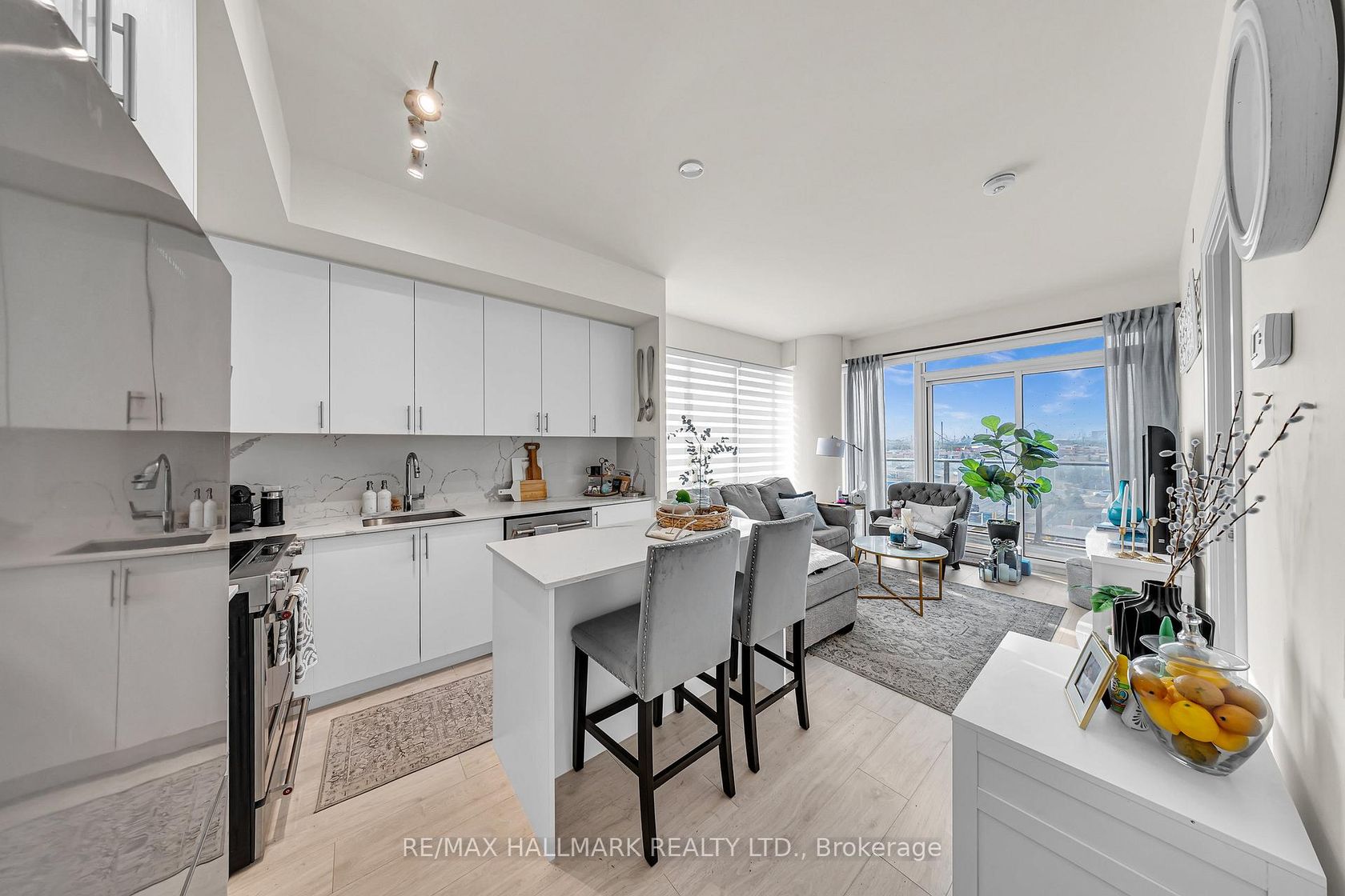 Welcome to this beautifully designed 817 sq ft unit, complete with a wraparounds balcony-perfect for relaxing or entertaining. Featuring 9-foot ceilings and stylish laminate flooring throughout, this bright and modern space is filled with natural light. Enjoy a sleek, contemporary kitchen ideal for cooking and gathering with friends. This unit also includes one parking spot, one locker, and a built-in central vacuum system for added convenience. Residents of Charisma Condo enjoy resort-style amenities, including a party room, games room, fitness centre, theatre, pet grooming station, and an outdoor pool. Unbeatable location-just steps to Vaughan Mills Shopping Centre, HWY 400 & 407, and the VIVA Transit Hub. Don't miss your chance to live in one of Vaughan's most sought-after communities !