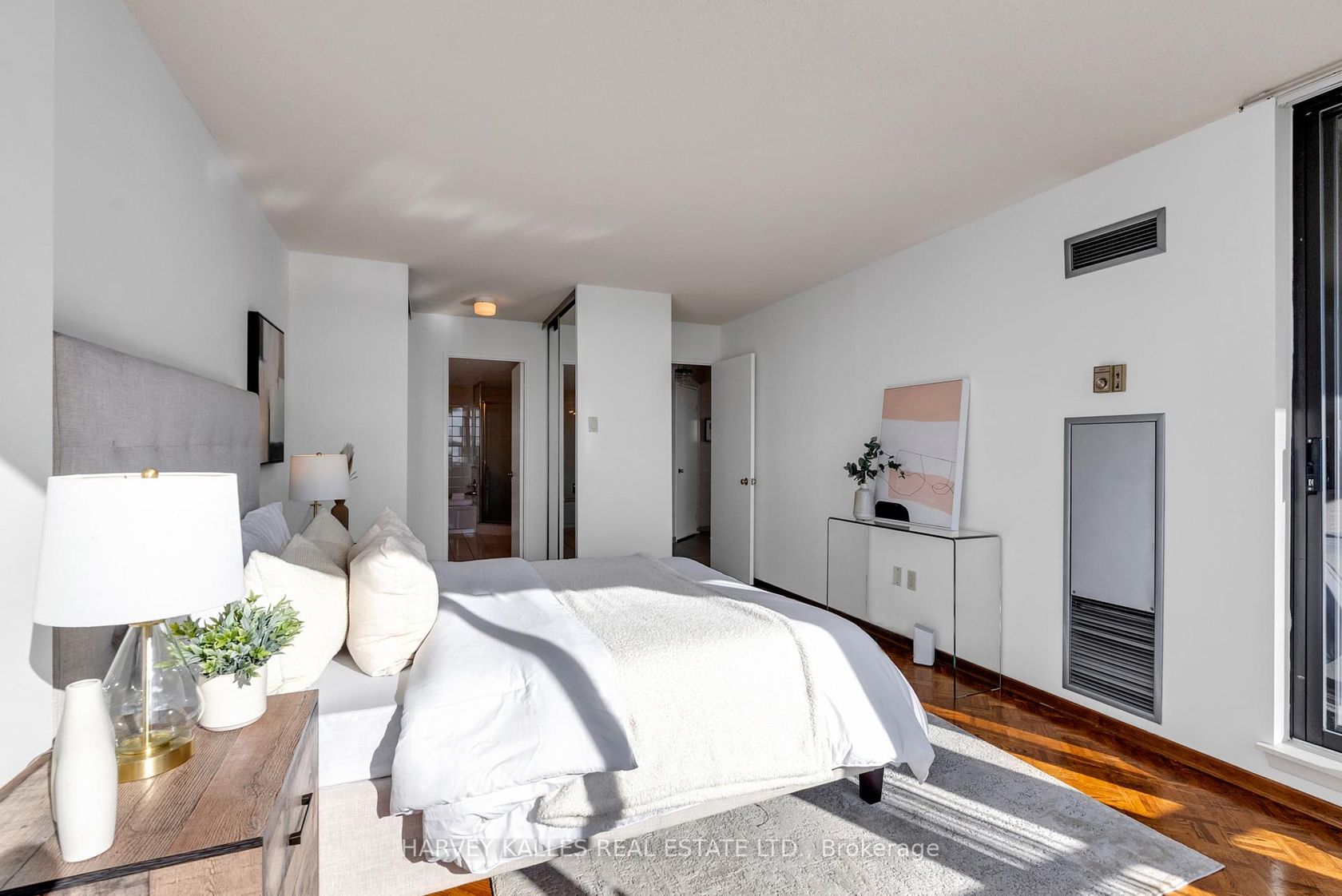 Incredible opportunity in one of the most sought-after buildings! This spacious 2 bedroom, 2 bathroom condo is literally perfect! Its large, bright and has absolutely everything you want and need. The southwest exposure offers TONS of natural light, incredible views of downtown Toronto and one of the most functional layouts you will find. With over 1360 sq ft, you have SPACE! Your primary bedroom has two large closets and a large spa-like en-suite bathroom. The second bedroom is oversized, and the solarium is drenched with natural light perfect for a home office or quiet reading nook, Love to cook? Enjoy the eat-in kitchen with full-sized appliances. The unit has beautiful hard wood floors throughout and you also get a balcony for some outdoor space, a walk-in ensuite laundry room with full-sized washer/dryer and 1 parking spot. Enjoy some of the best amenities like an outdoor pool, tennis courts, squash courts, workout room, sauna, a party room and so much more.