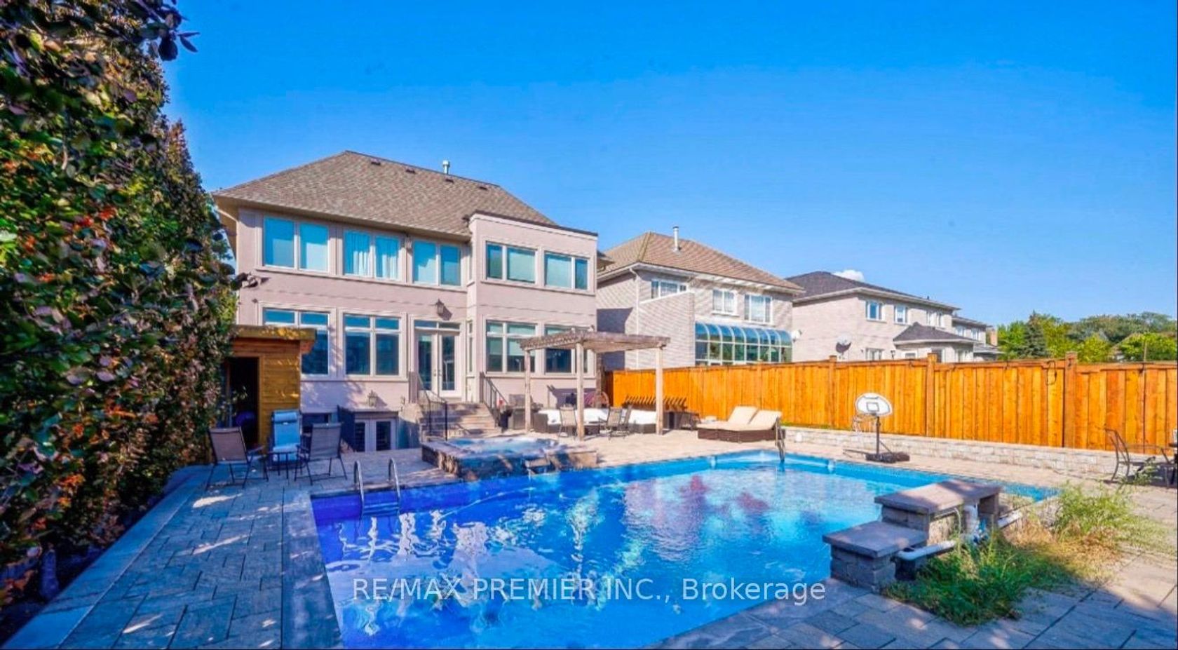 WELCOME to this Magnificent Executive Home!! This Stunning 4Bd 5Bath 3968 + 1773 Sqft Home with an Amazing Huge Backyard Resort, 300k on 32x18 Built-In pool, Pergola and Cabana Makes this home a Dream place to live and enjoy it. Home Feats 10 ft Ceilings, Beautiful custom Cabinetry Thru-out, Large Chef's Kitchen w/Centre Island, W/O TO Yard, Rich Harwood Floors, Pot Lights and Top Stainless Steel Appliances. This Amazing Property has A Huge Master Bedroom Ensuite and Walking Closet! Walk up Basement! and the Best Access to the 407, Big Stores, Restaurants and Shopping Malls. All this and So MUCH MORE In One Of The Thornhills Most Prestigious locations with Multimillion dollars Homes on same the street. Must be see it!