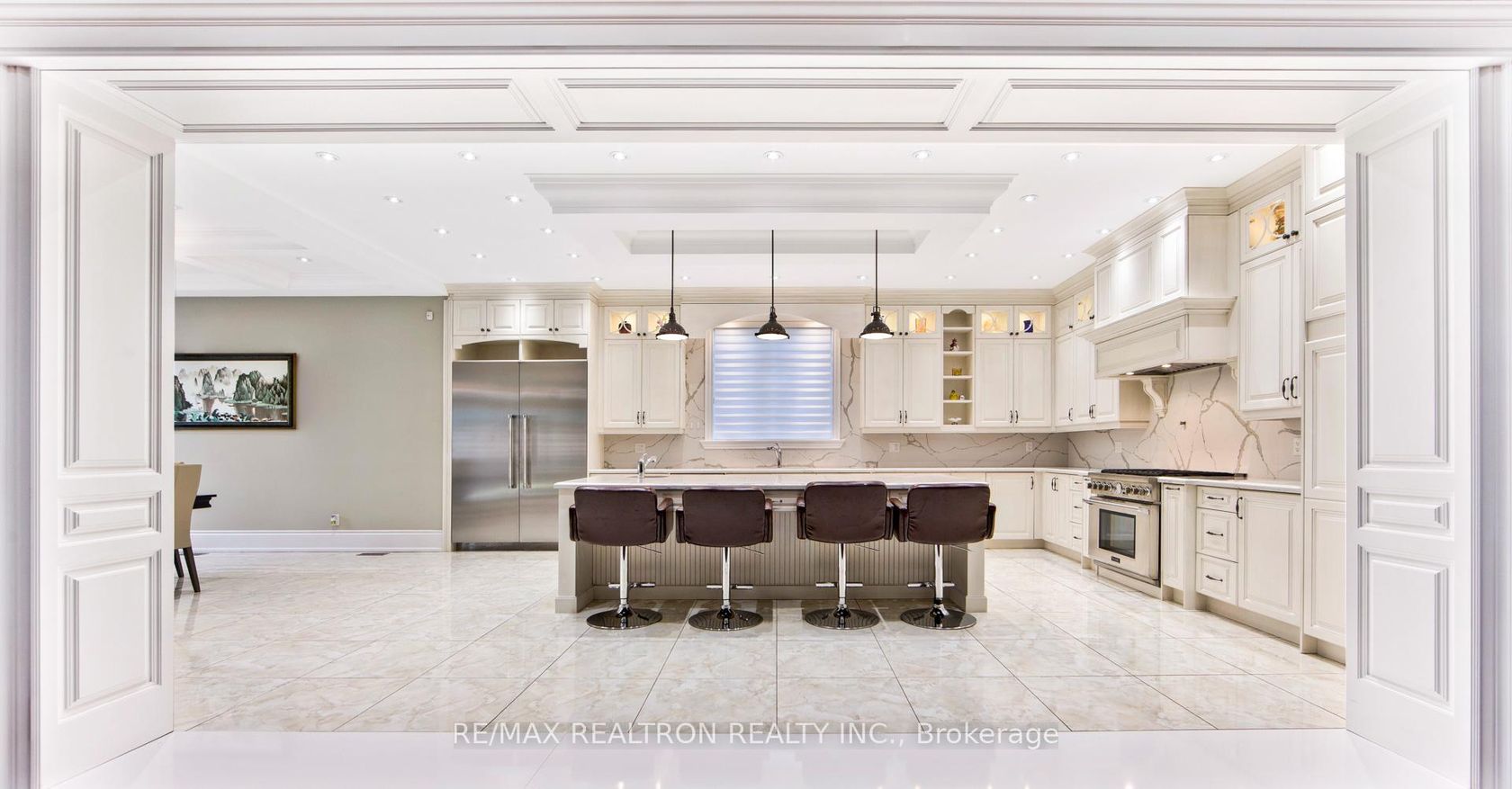 Architectural Splendour Beyond Compare! A rare opportunity to own this breathtaking modern estate, masterfully crafted with Indiana natural limestone and red brick, set behind iron gates on private manicured grounds. This magnificent residence exudes contemporary elegance and timeless luxury at every turn - an architectural triumph designed to impress the most discerning buyer.Boasting over 8,500 sq.ft. (per MPAC) plus a 4,000 sq.ft. finished lower level, this custom-built masterpiece offers soaring 10-ft ceilings on all 3 levels and a 30-ft cathedral central hall that makes an unforgettable statement of grandeur. With 6+3 bedrooms, 10 bathrooms, a main floor in-law suite, and a 5-car garage with circular drive, every inch has been crafted for comfort, sophistication, and functionality.Indulge in Heated floors throughout the kitchen + breakfast area, master ensuite, and entire lower level, LED designer lighting, and hickory hardwood floors accented with solid brass hardware. This residence blends architectural mastery with refined luxury - a truly one-of-a-kind offering that defines modern estate living at its absolute finest.