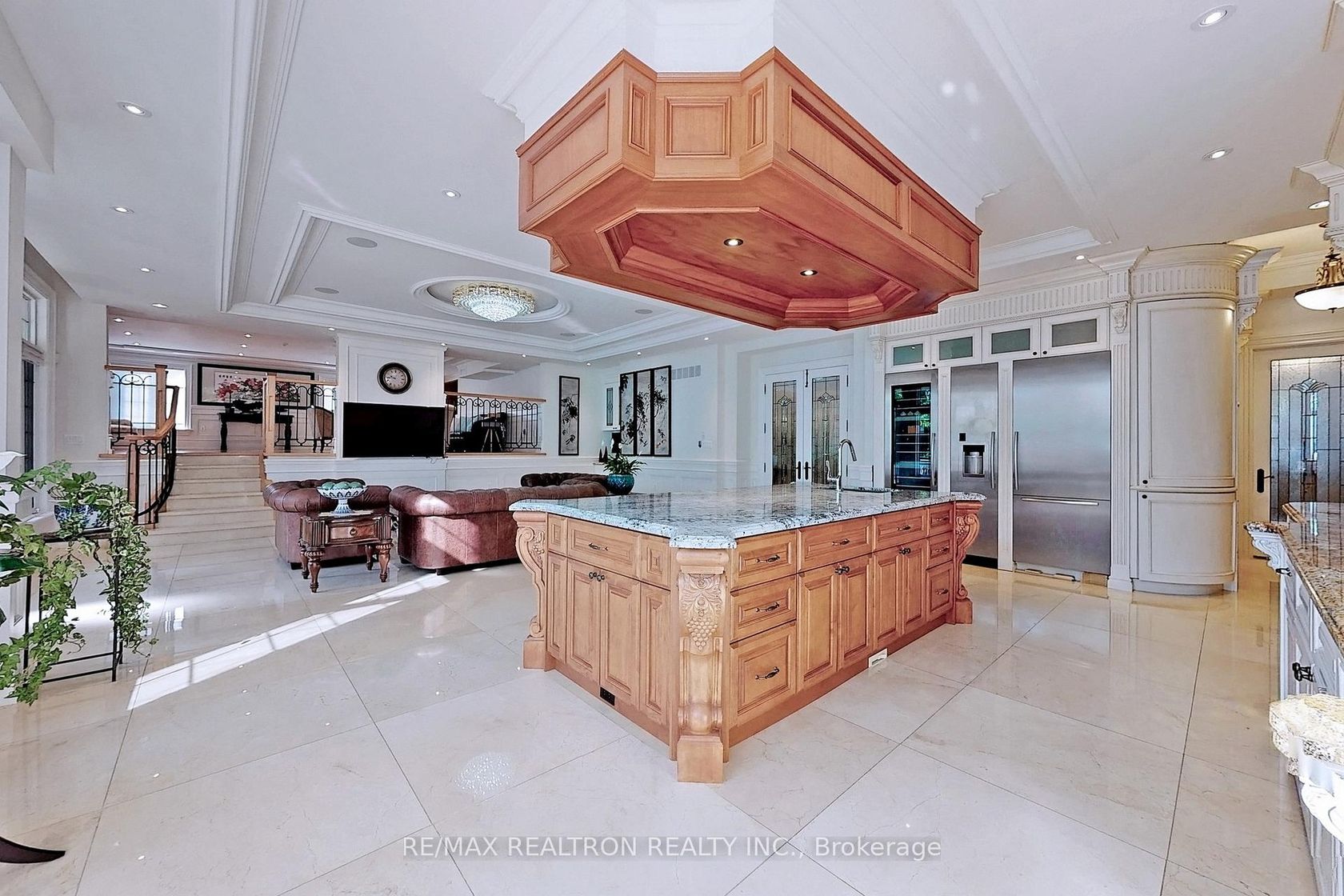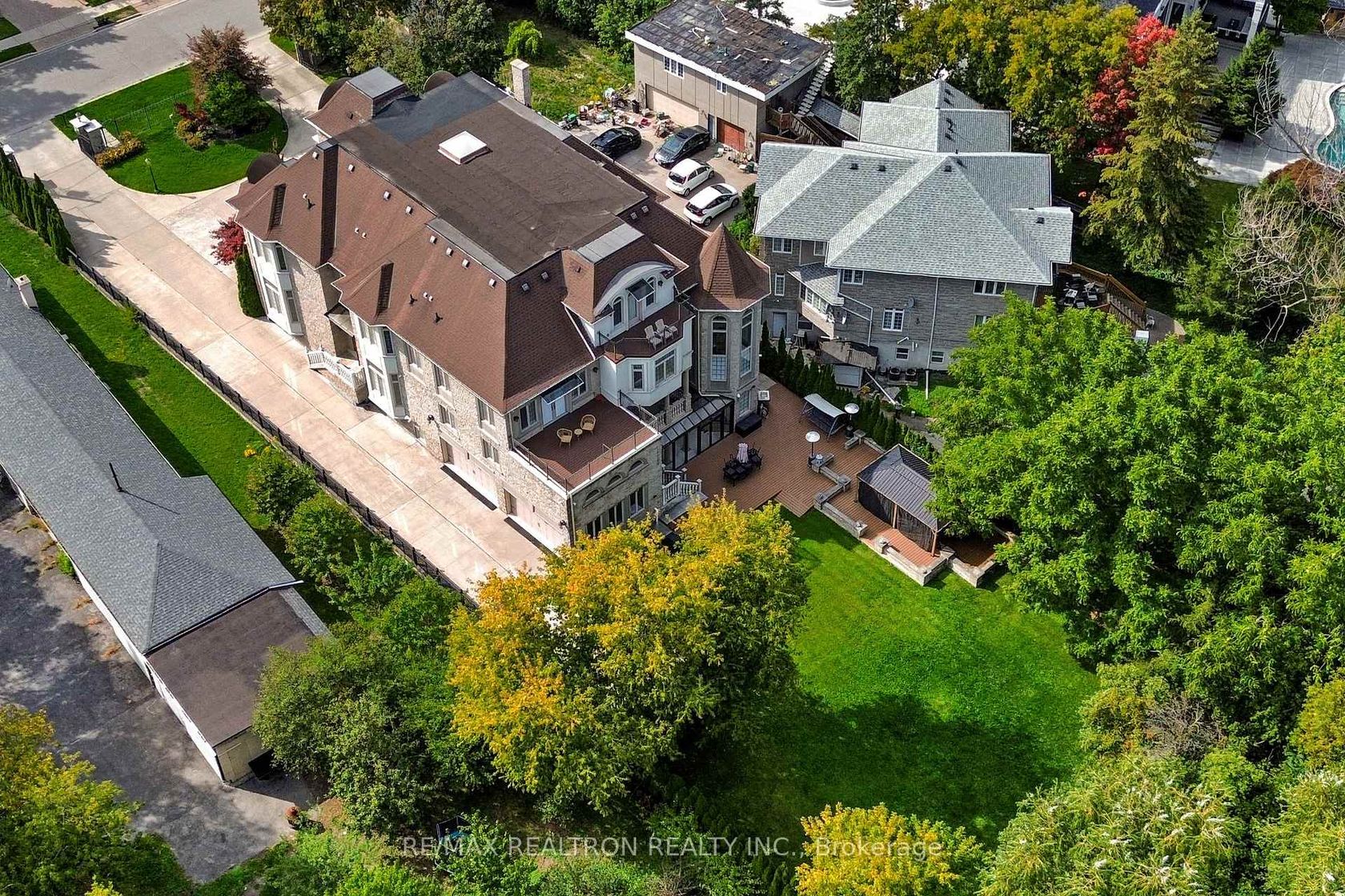 An architectural triumph in prestigious 'South Richvale', this estate commands attention from the moment you arrive. A gated circular drive with 4-car garage introduces the residence, while a stately stone portico entrance way with columns sets the tone for timeless refinement. A soaring 40-foot grand atrium foyer crowned by a cathedral skylight delivers an unforgettable first impression. Bathed in natural light, the space rises dramatically, framed by oak staircases w/ intricate iron spindles, wood paneling, wainscoting, crown molding, and polished marble and granite finishes every detail chosen to embody timeless elegance. The main level is both luxurious and functional. At its heart lies a gourmet chefs kitchen with cathedral breakfast area, oversized island, and top-tier stainless steel appliances, complemented by a full prep kitchen. Formal and casual living spaces flow seamlessly framed by 10 & 11 foot ceilings w/ built-in speakers, while a paneled natural wood office provides a refined workspace. Dual powder rooms enhance convenience and entertaining. The second and third levels host seven expansive bedrooms, each w/ ensuite, marble finishes, and walk-in closets, many opening onto private balconies. The master retreat indulgences with two heated en-suites, two custom walk-in closets including a marble dressing room, sitting area, and fireplace. The upper level also includes an apartment-style suite and a dedicated prayer room with private washroom. The lower level is designed for leisure and wellness. A home theatre and karaoke lounge with projector screens invite entertainment, while a wine cellar with heated floors and full kitchen enhance gatherings. A spa sanctuary features sauna, jacuzzi, heated floors, and multiple washrooms, complemented by a nanny suite and second laundry for multi-generational living. Steps from Yonge Street and minutes to Hwy 407, this estate unites architectural brilliance, modern comfort, and an unmatched sense of grandeur.