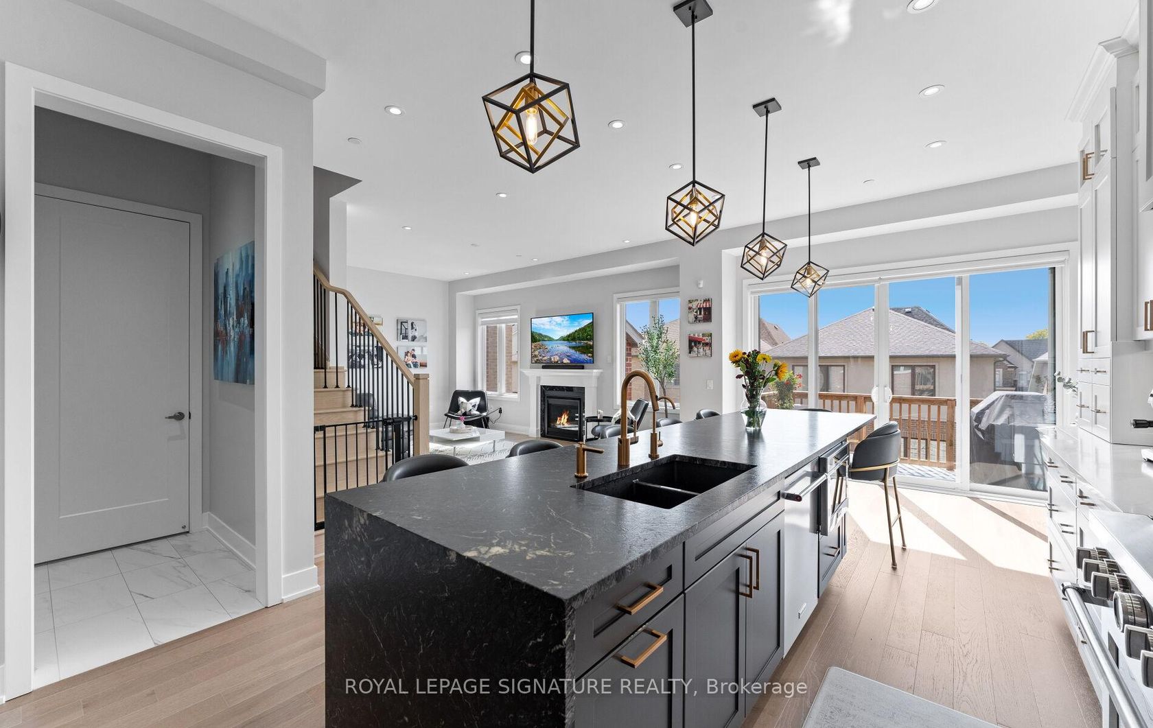 Welcome to 29 Sikura Circle! This 4-bedroom, 5-bathroom home boasts over 3,000 square feet of beautifully finished living space, offering the perfect blend of luxury, functionality, and contemporary design. As you step inside, you're greeted by 10-foot smooth ceilings on the main level, creating an expansive and open atmosphere throughout the home. The custom modern kitchen is a chef's dream, featuring high-end appliances, oversized 16' island with waterfall upgrade, finished with textured leathered granite, full wet bar in the dining room, and ample storage space, perfect for both everyday meals and entertaining. Top of the line pot lights are seamlessly integrated throughout the home, adding a touch of elegance and illumination to every room. The spacious living and dining areas are bathed in natural light, with the south-facing backyard providing the perfect setting for outdoor relaxation and entertaining. The main level and basement also feature upgraded stair lights for added luxury and visual appeal. Upstairs, you'll find 9-foot smooth ceilings and generously sized bedrooms, including a luxurious primary suite with an ensuite bath designed for ultimate relaxation. The bright finished walk-out basement features smooth ceilings, a full kitchen, additional bedroom, and full bathroom. It provides additional living space, with a separate side door entrance. This home has been freshly painted and is move-in ready, offering everything you need for modern living. Located in a highly sought-after neighborhood, 29 Sikura Circle is within walking distance to parks, schools, and shops, and offers quick access to major highways for an easy commute to Toronto and beyond. Don't miss the opportunity to make this exquisite property your own!