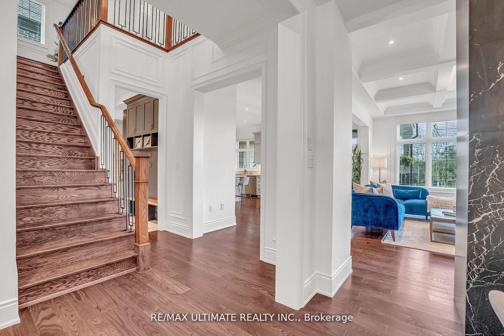 Executive sun filled luxury meets nature on a ravine lot tucked on a quiet cul de sac. Stunning just under 4000 ft2 executive home on a south-facing ravine lot with walkout lower level. Featuring 10 ft ceilings on main, 9 ft upstairs, 9ft underpinned lower, hardwood floors, and designer finishes throughout. The dream kitchen boasts quartz countertop, custom cabinetry, hidden pantry wall, servery and ample storage. Over 300k in improvements of custom upgrades and designer finishes. Open concept living room with dual-sided fireplace flows into the formal dining, perfect for entertaining. Upstairs offers a flexible family room (easily a 5th bedroom), laundry, and 4 generous bedrooms, each with its own ensuite or semi-ensuite. The primary retreat includes a spa-like ensuite, his & hers vanities with free standing tub and oversized shower. Elevator space designed in. Enjoy outdoor living on the new oversized covered Loggia overlooking the ravine w/ gas fireplace and BBQ gas line. Add a pool or fire pit to the backyard. See feature sheet for details. Minutes to Hwy 400, GO Transit, Country Day School, Villanova and Zancor Recreation details. Don't miss this must see multi-generational home.