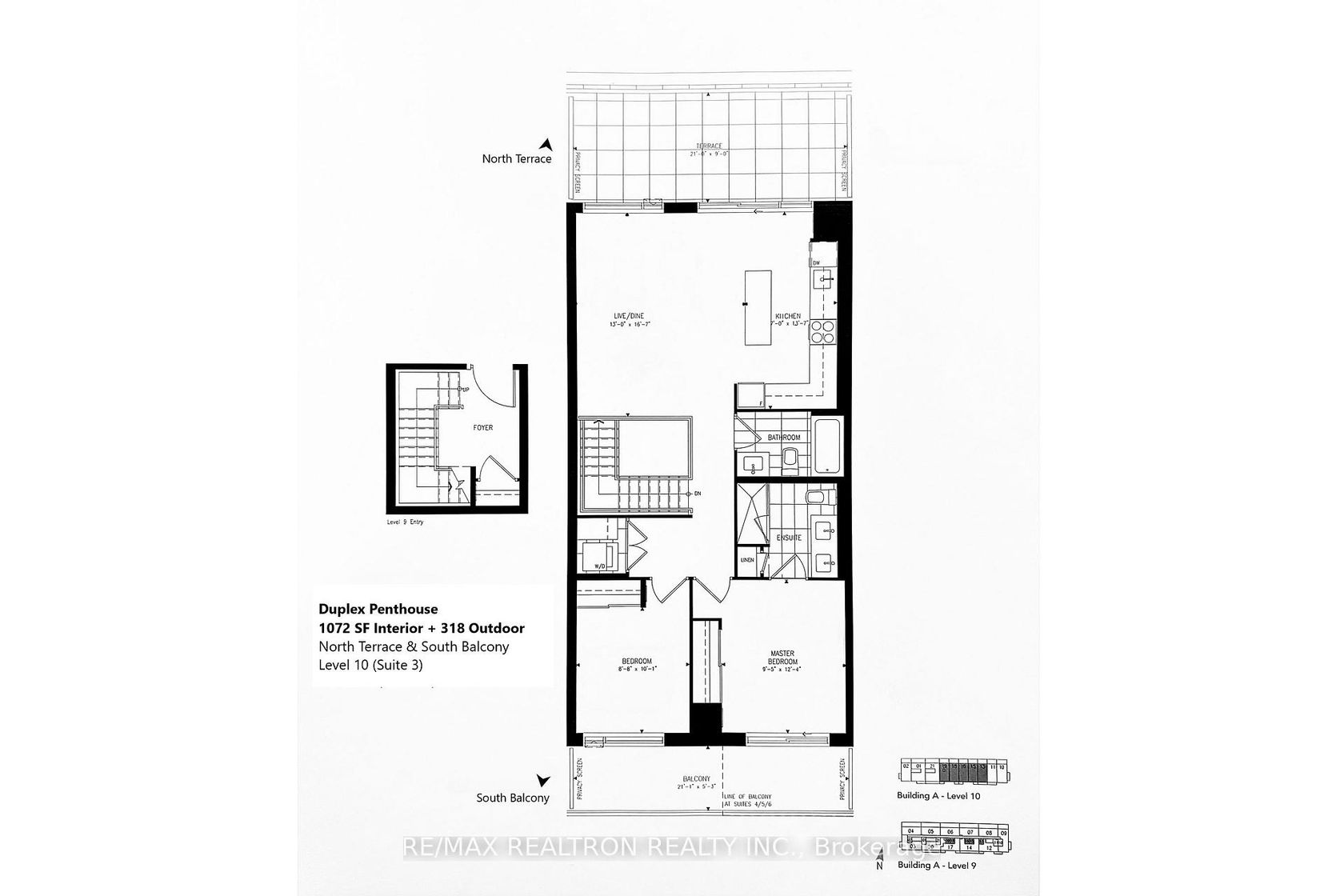 Rare Duplex Penthouse with North/South Views This elegant two-level penthouse offers a house-like layout in the sky, designed for buyers who value privacy, separation of space, and natural light. The first level features a spacious foyer, ideal for welcoming guests while keeping private living areas separate. Interior stairs lead upstairs to bright living and dining spaces with dual exposure, unobstructed views, and seamless access to two outdoor areas. Enjoy 378 sqft north-facing terrace ideal for entertaining, complete with a gas BBQ line, as well as a south-facing balcony offering breathtaking sunrise and sunset views of the Toronto skyline and Richmond Green Park. With no front-facing neighbours, this penthouse delivers exceptional privacy and quiet. The two-level layout creates a rare sense of flow and separation seldom found in standard condominium living. Includes one conveniently located parking space, dedicated locker, and access to full building amenities, including a gym, yoga studio, business lounge, theatre room, party room, music room, children's playroom, pet wash, outdoor lounge, and visitor parking. A unique opportunity for the right buyer
