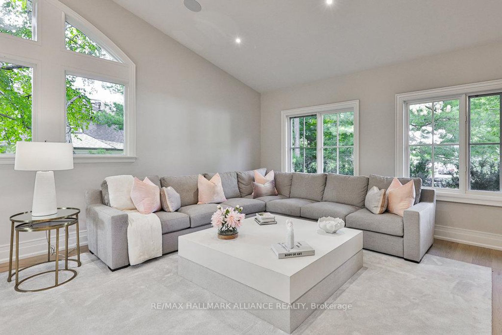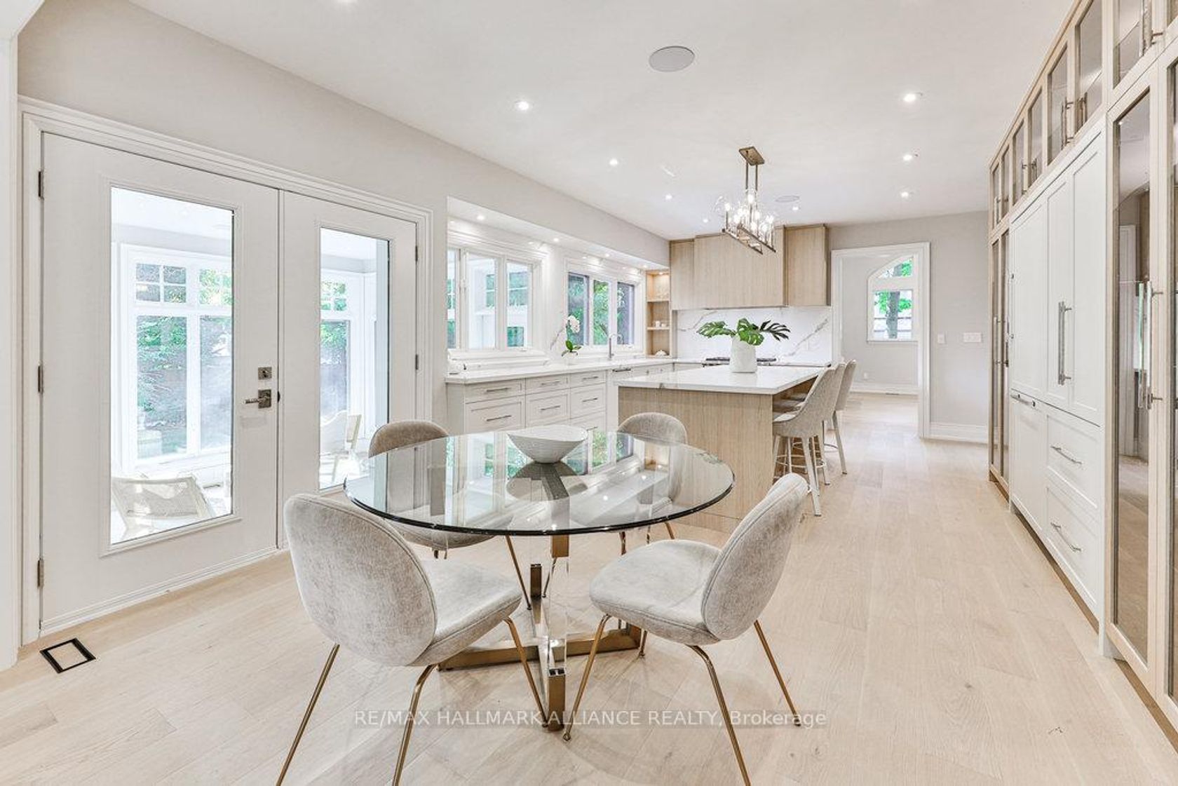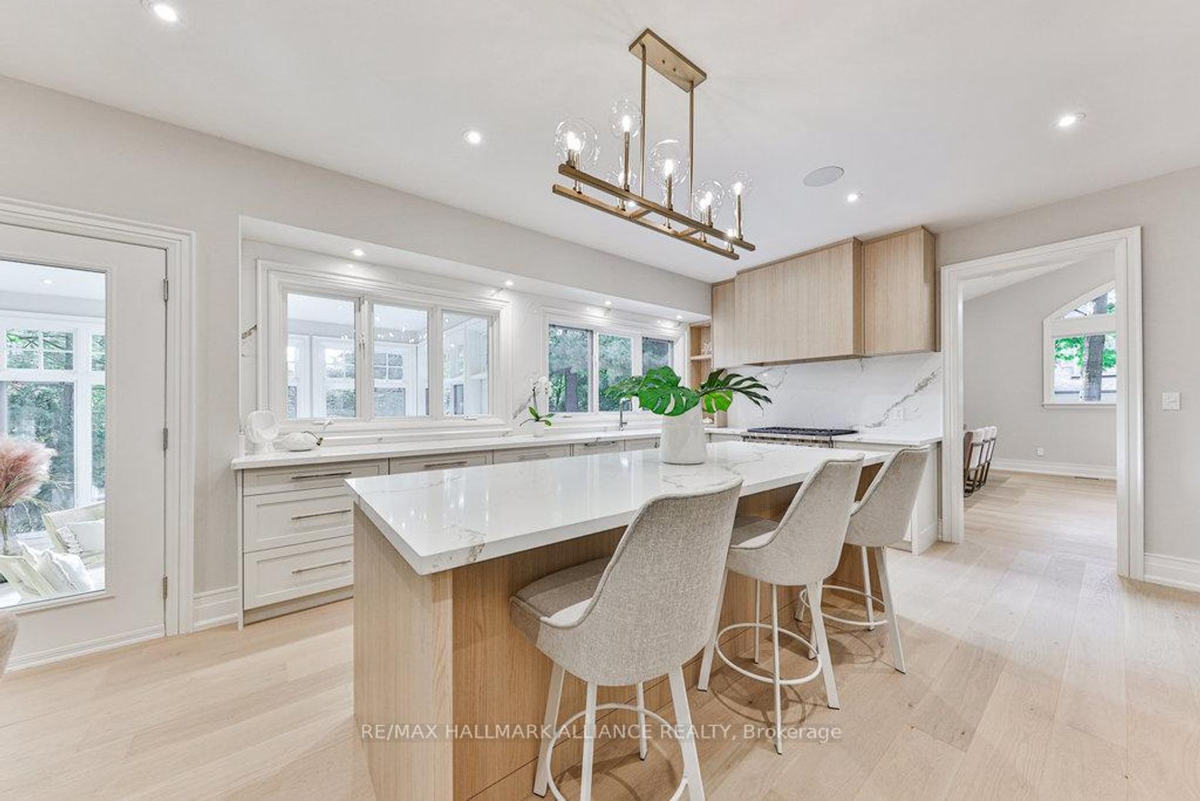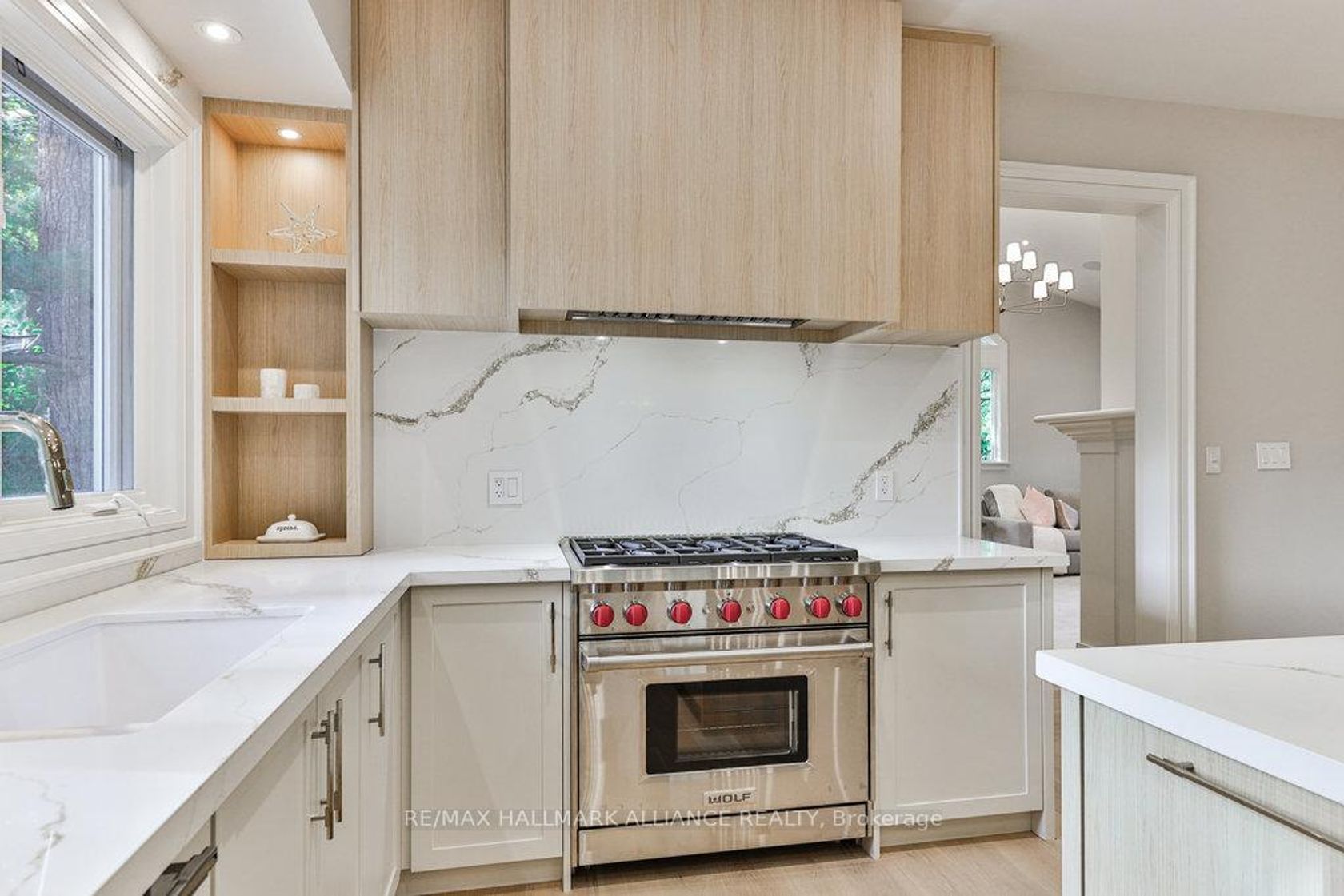 This spectacular residence has been completely renovated to the studs with high-end finishes and a thoughtfully reimagined floor plan, blending timeless elegance with modern functionality. Situated on a premium 75x150 south-facing rectangular premium lot, this home is just a short walk to Oakville's top-rated schools.The exterior showcases new stucco with natural stone accents, oversized windows, and stunning curb appeal. Inside, the open-concept design features a grand living/dining room with soaring 13-ft ceilings and wood-burning fireplace, seamlessly flowing into a brand-new custom kitchen and family room. The chefs kitchen offers a massive center island, custom hardwood cabinetry, top-of-the-line appliances including a Wolf stove and Fisher & Paykel fridge, and walkout to a sun-filled cedar deck. A beautiful sunroom with full HVAC brings the outdoors in, overlooking landscaped gardens, mature trees, ponds, and stone pathways. The upper level features double primary suites with spa-inspired ensuites, heated floors, and walk-in closets, providing exceptional comfort and flexibility for families. Designer details throughout include custom millwork, accent lighting, hardware, California shutters, and premium hardwood flooring. The fully finished lower level offers a nanny/in-law suite with in-floor heating, recreation space, and plenty of storage. Recent upgrades include new spray foam insulation, new electrical panel, sump pump, tankless hot water system, pot lights, built-in speakers, and luxury designer tiles in all bathrooms. This one-of-a-kind home is the perfect blend of modern luxury, refined craftsmanship, and family-friendly living, a rare offering in one of Oakville's most prestigious neighbourhoods.